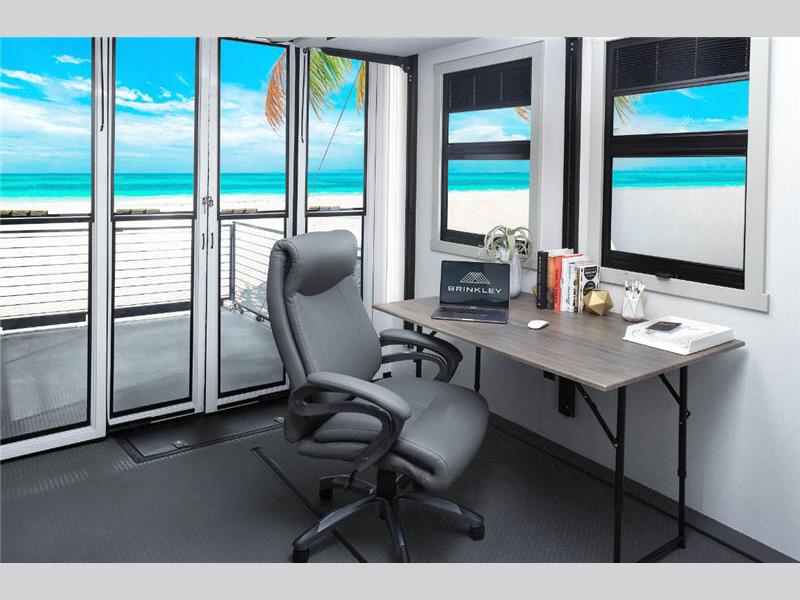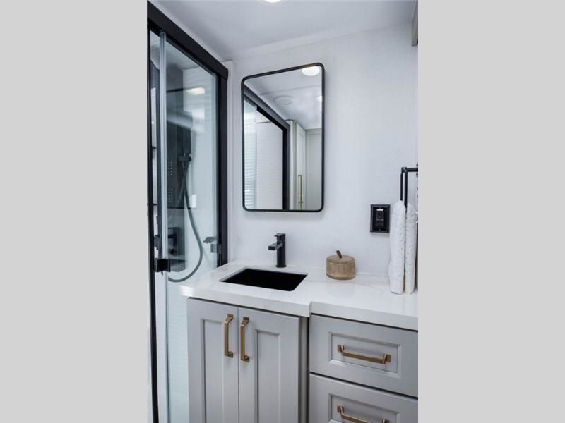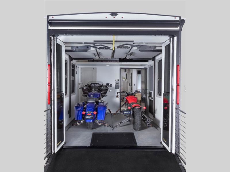 With any Model G toy hauler fifth wheel by Brinkley you will enjoy luxurious amenities, tons of storage space, and innovative features that have been developed and tested in the real world. Durable construction includes an industry leading PDI process, an industry best insulation package, and reinforced and walkable slide roofs. Some of the exterior features you'll find are a 3-way pass-through with a multi-functional flip-up bulkhead wall, under I-beam storage, a MAX-Vision reverse lighting system, and a low-maintenance roof to name a few. A Rockford Fosgate audio system comes standard, along with a OneControl app system that lets you control your fifth wheel's functions right from your mobile device. You will find the solar system with a designated storage area to be ultra convenient, plus there is a FlexPower 5500 with a dual fuel inverter generator for all your power needs. Head inside to find a residential interior with Brinkley's CraftSense wood trim construction, floating entrance steps, integrated window screens and insulated blackout blinds, and residential solid surface countertops plus backsplash. You will also enjoy the neon shower lighting and recessed medicine cabinets in the bath, plus motion activated LED bed lights and dual bedside outlets in the bedroom. Choose a Model G toy hauler fifth wheel to experience all the luxury it has to offer!