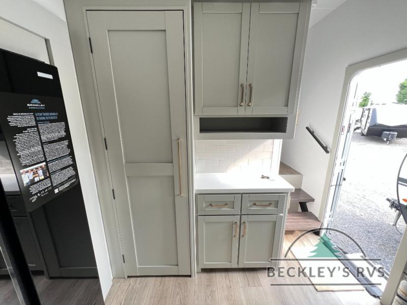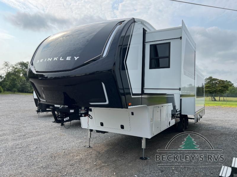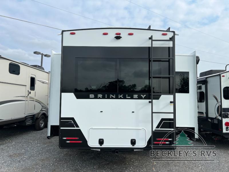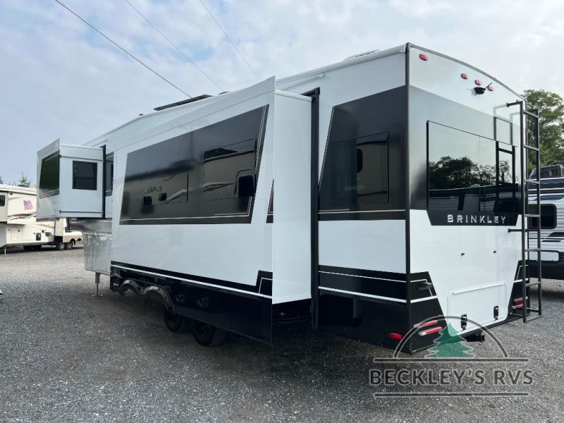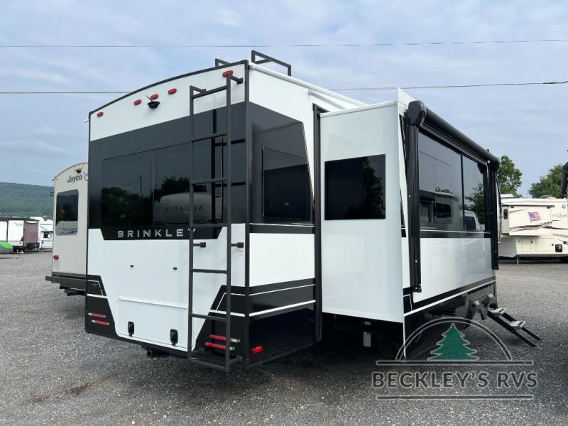 The Brinkley mid-profile Model Z fifth wheels bring you clean lines and an upscale look with plenty of style and exciting new features like the industry first brass plumbing connections. These units also feature an automotive grade front cap, plenty of exterior storage, dual exterior hot and cold showers, and wide stance leveling jacks for easy set up. Residential frameless windows provide a clean look and beautiful views, and ample electrical outlets and 6 USB/USB-C outlets allow all of your electronics and appliances to easily be used and charged.