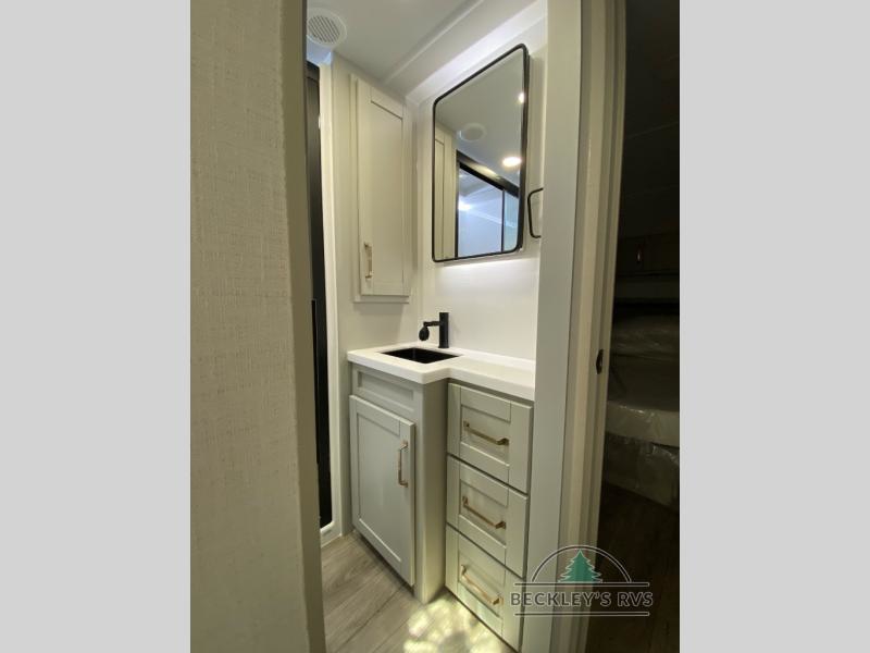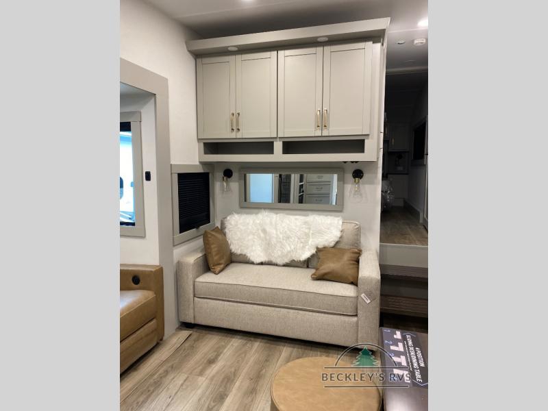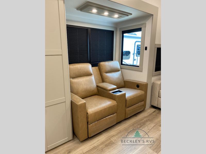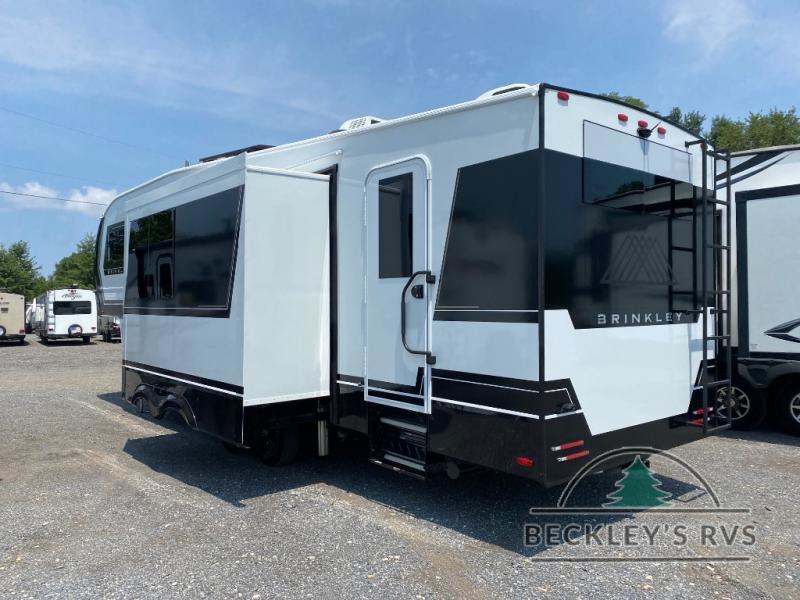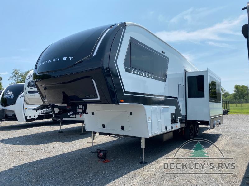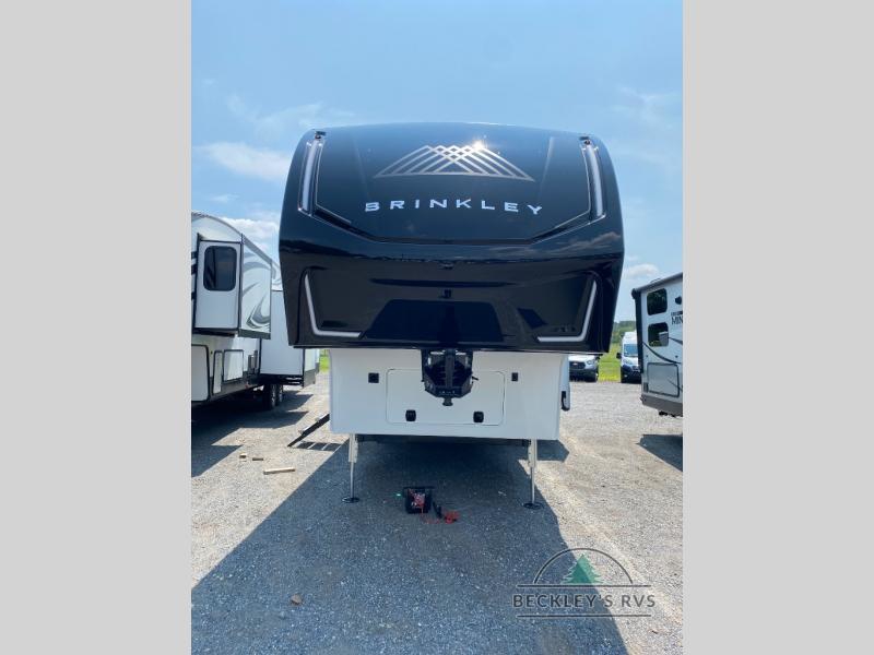The Brinkley mid-profile Model Z fifth wheels bring you clean lines and an upscale look with plenty of style and exciting new features like the industry first brass plumbing connections. These units also feature an automotive grade front cap, plenty of exterior storage, exterior hot and cold showers, and wide stance leveling jacks for easy set up. Residential frameless windows provide a clean look and beautiful views, and ample electrical outlets and 6 USB/USB-C outlets allow all of your electronics and appliances to easily be used and charged.
