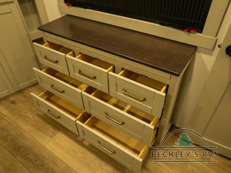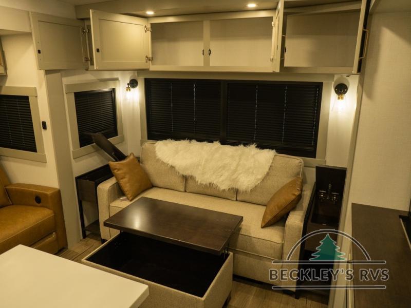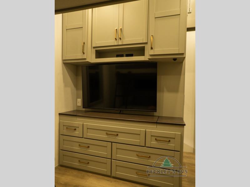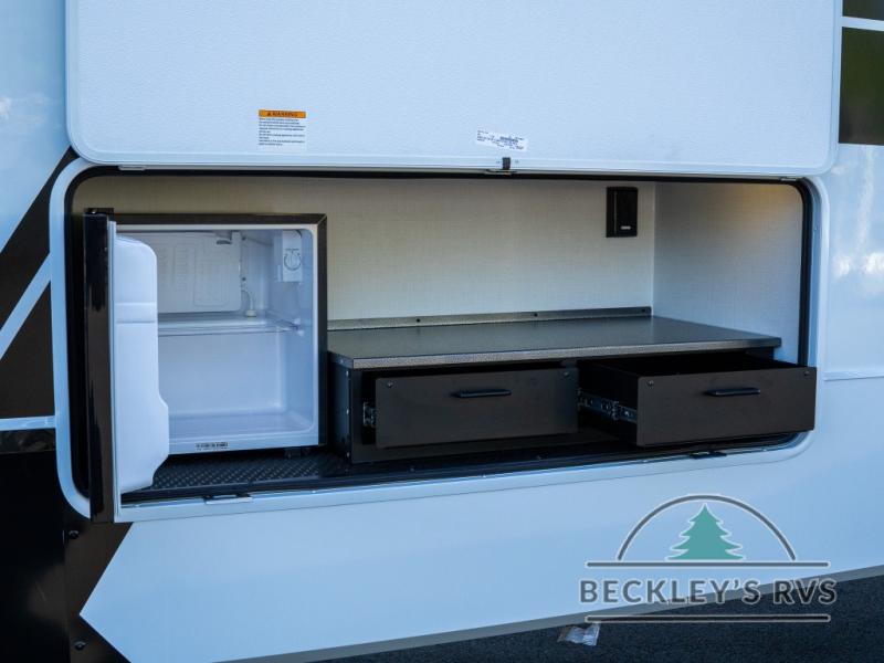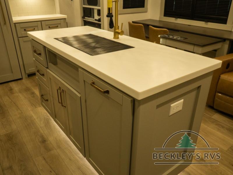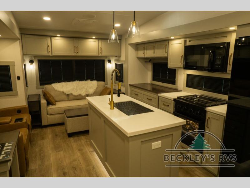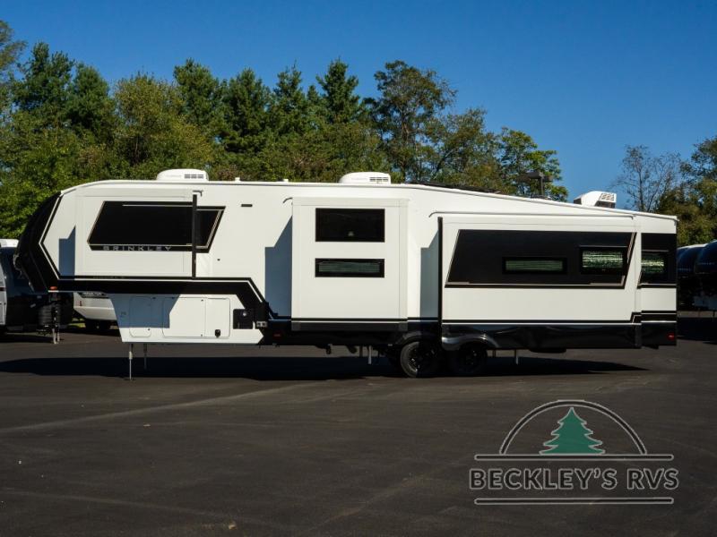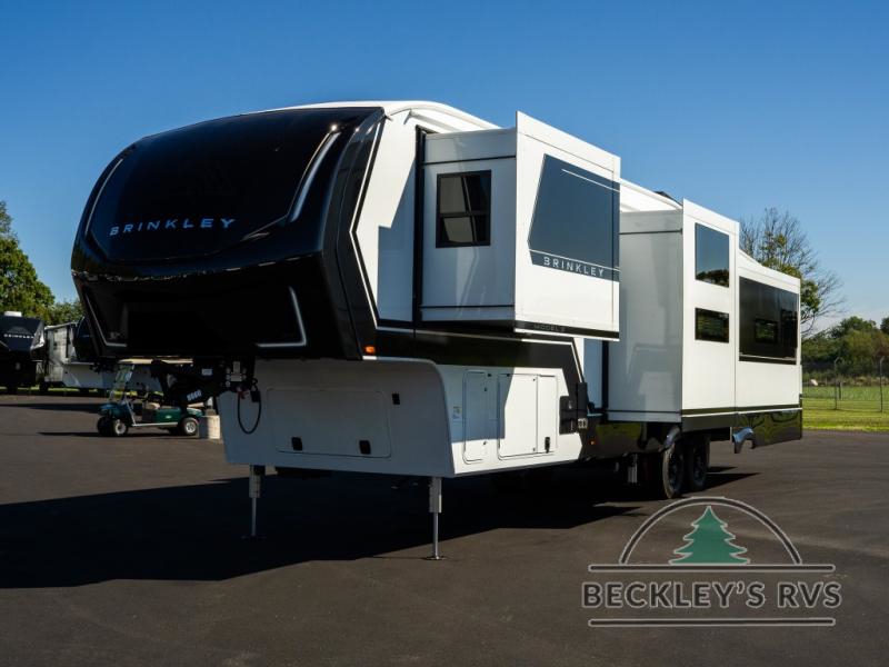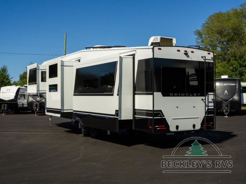 The Brinkley mid-profile Model Z fifth wheels bring you clean lines and an upscale look with plenty of style and exciting new features like the industry first brass plumbing connections. These units also feature an automotive grade front cap, plenty of exterior storage, dual exterior hot and cold showers, and wide stance leveling jacks for easy set up. Residential frameless windows provide a clean look and beautiful views, and ample electrical outlets and 6 USB/USB-C outlets allow all of your electronics and appliances to easily be used and charged.