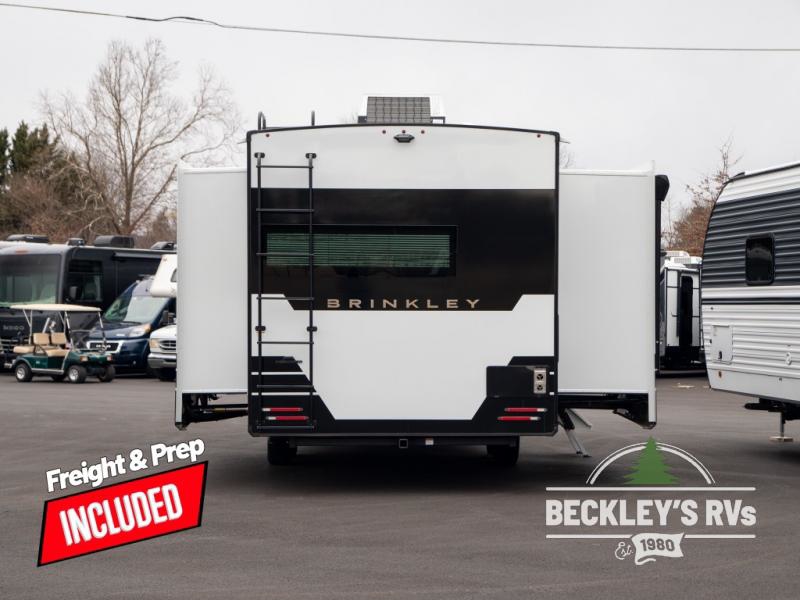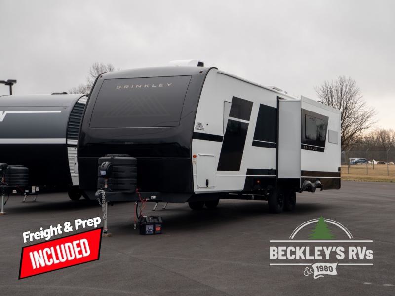 The lightweight Model I travel trailer by Brinkley is the perfect choice for those looking for an easy tow and at-home comforts! There is a drop-frame chassis, high-performance Road Armor suspension equalizer system, and Demco EZ Latch trailer coupler that automatically latches when dropped onto a hitch ball without the need of a safety pin. Additional exterior features include square Euro frameless windows, automotive-grade paint, full-width LED strip lighting in the pass-thru, and a pet & property security campside tie-down to keep your gear and furry friends safe. Inside, you'll be wowed by Brinkley's CraftSense wood trim construction, residential solid surface kitchen countertops, dimmable bedroom lights, and marine-grade neon LED shower lighting to name a few stand-out features!