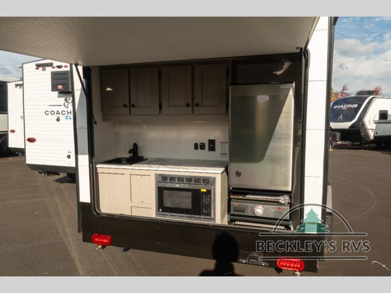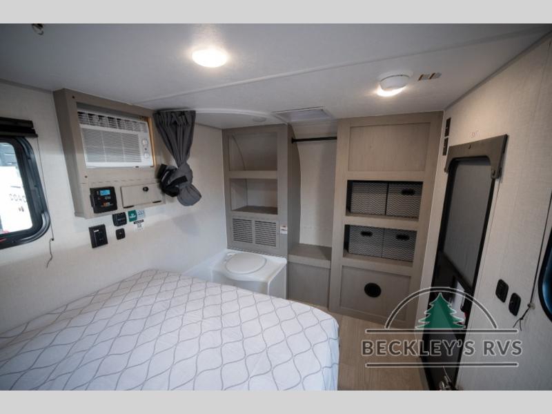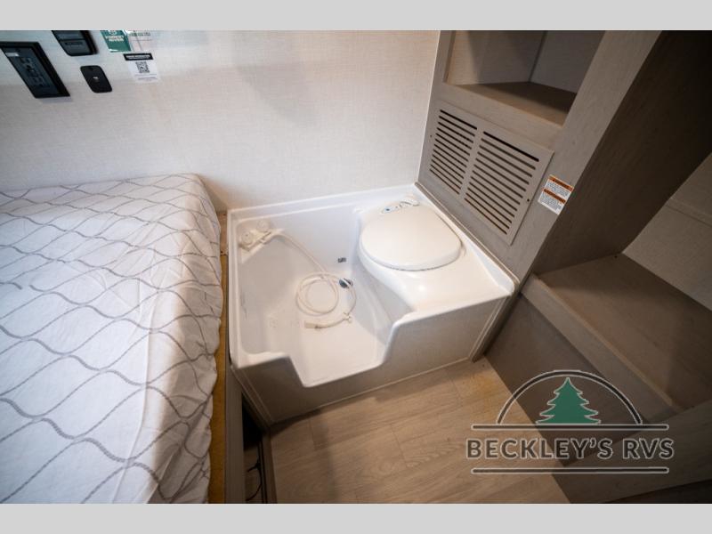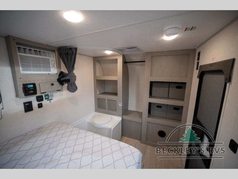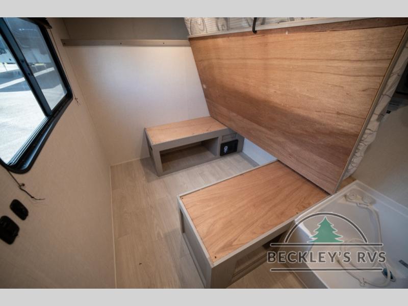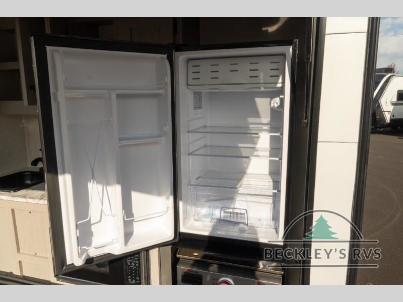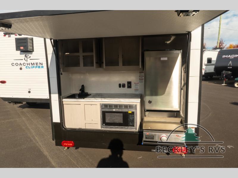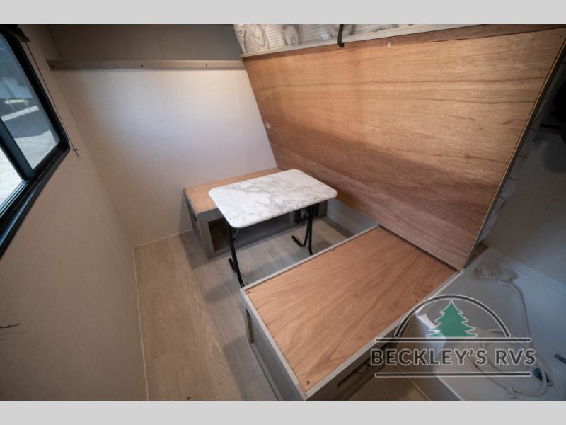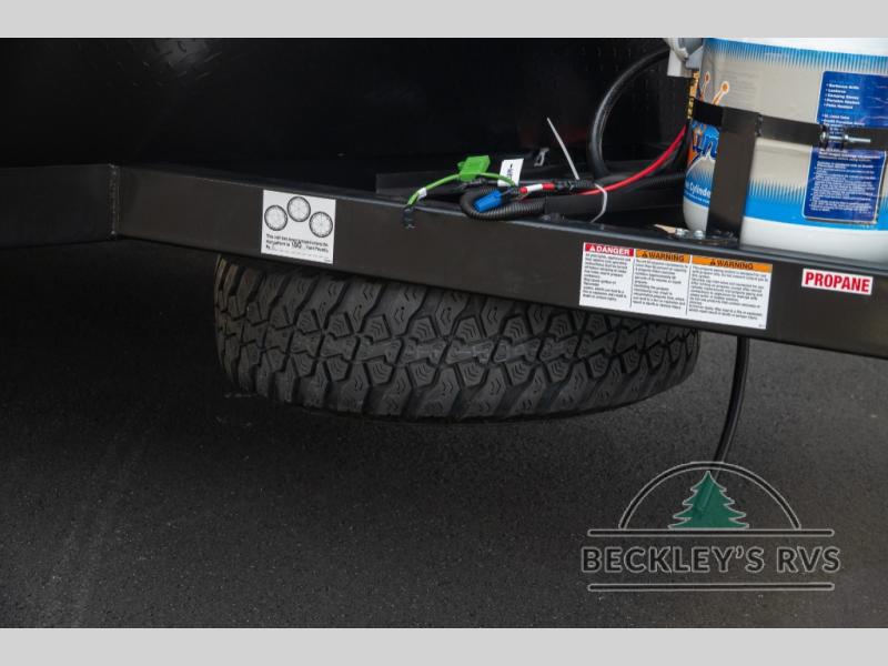 When you want to explore choose this travel trailer for your basic off-road adventure needs and a bit more by offering you a 54" X 74" flip-up bed with storage beneath, and gaucho seating that pulls out into a bed for an additional camper at night. There is front and rear overhead cabinetry for storage, and a cassette toilet for added convenience especially at night. A rear hatch camp kitchen provides a place for you to create meals and snacks while you explore. There is a slide-out griddle and grill combo cooktop, a 3.3 cu. ft. 12-volt refrigerator for your cold items, a single sink, and two burner cooktop, plus a microwave oven. A 9' power awning creates a bit of added outdoor living space where you can set up your camp chairs. You can also add an optional roof-top tent for additional sleeping.