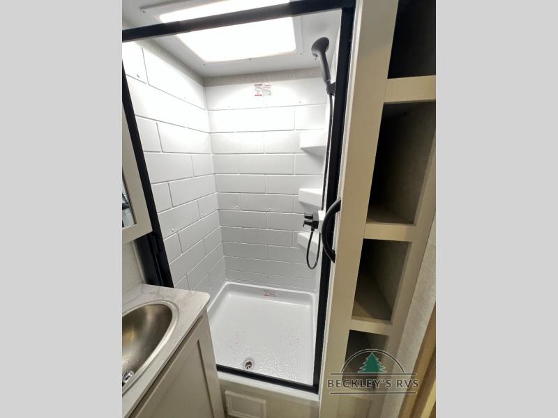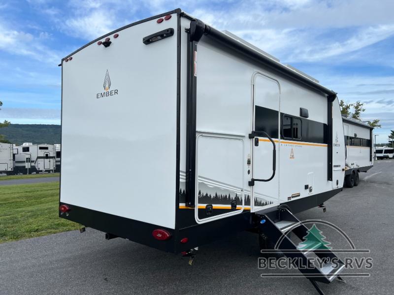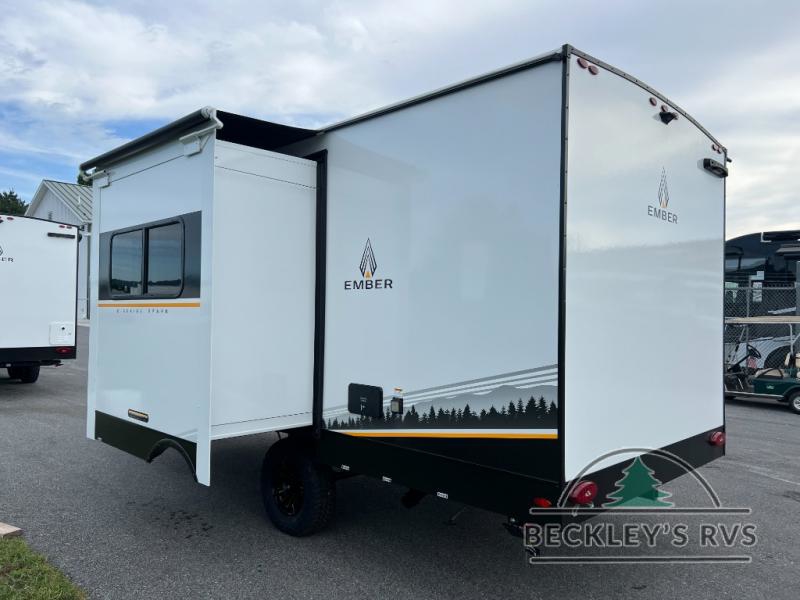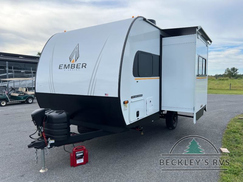 With any E-Series travel trailer by Ember RV you will enjoy a lightweight RV with all the "Essentials" needed for memorable trips in the great outdoors! Each model is constructed with durable laminated Azdel Onboard composite walls, a full walkable roof with a one-piece Tufflex PVC roofing material, and a gel-coated fiberglass exterior. The Dexter axles with E-Z lube hubs and forward self-adjusting electric brakes plus Goodyear Endurance tires will provide a smooth tow from home to campground. You will appreciate the Congoleum DiamondFlor "carpetless" interior that is easy to clean, and the hardwood framed cabinet doors will create a more residential feel. Each model includes a tankless on-demand water heater for endless hot showers and an 18,000 BTU Max Cool "Whisper Quiet" A/C, which is the largest single A/C in its class! If you're looking for off-grid capabilities, you might want to choose the optional Off-Grid Solar Package with 400 total watts of solar panels, a 2,000W Pure Sine wave inverter, and a Victron MPPT solar controller!