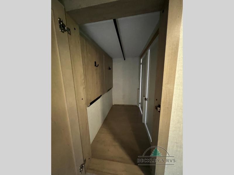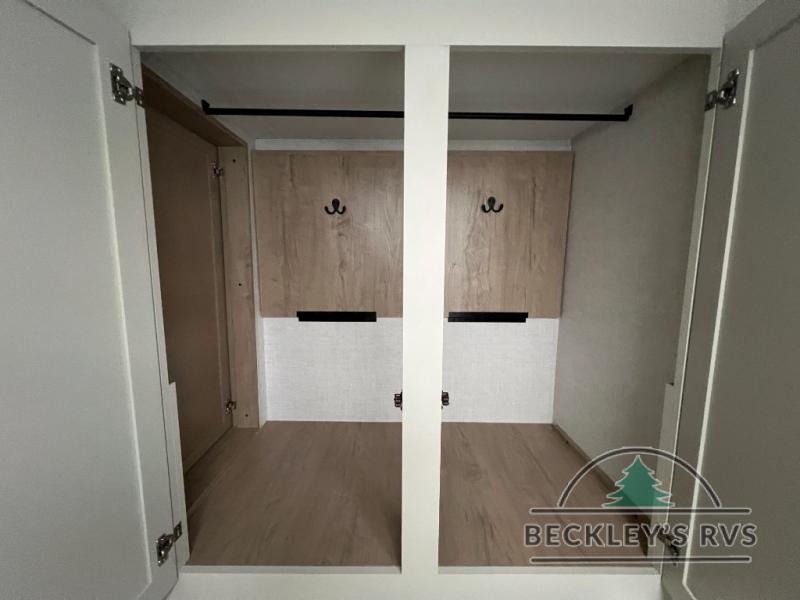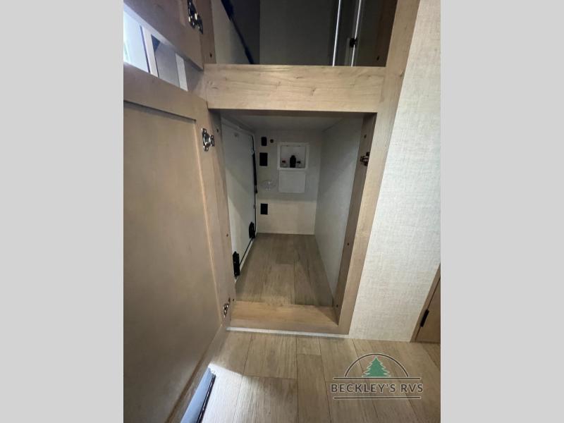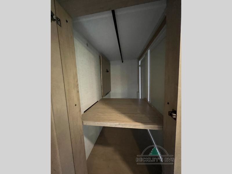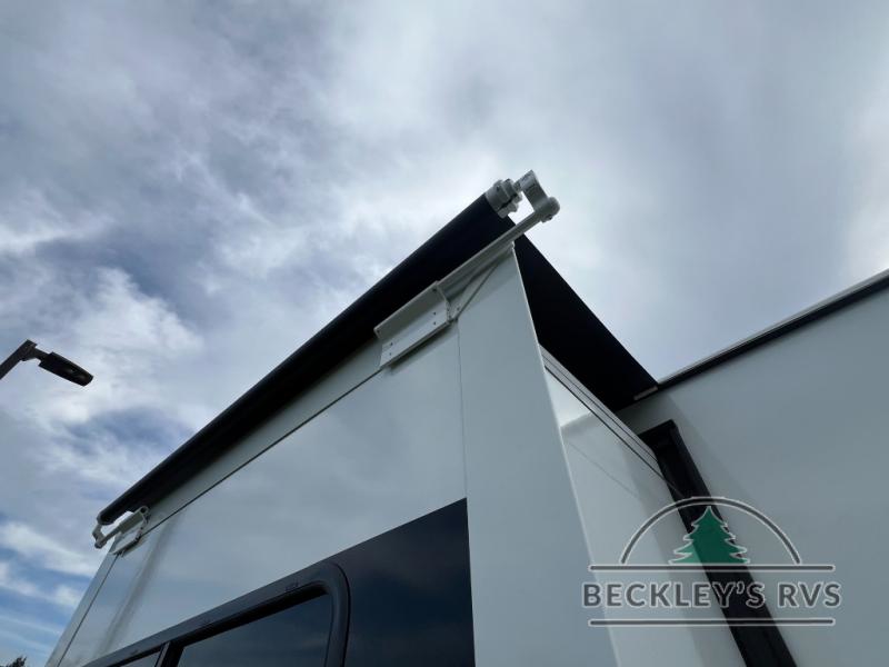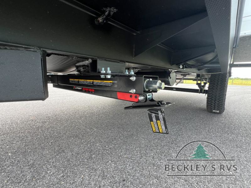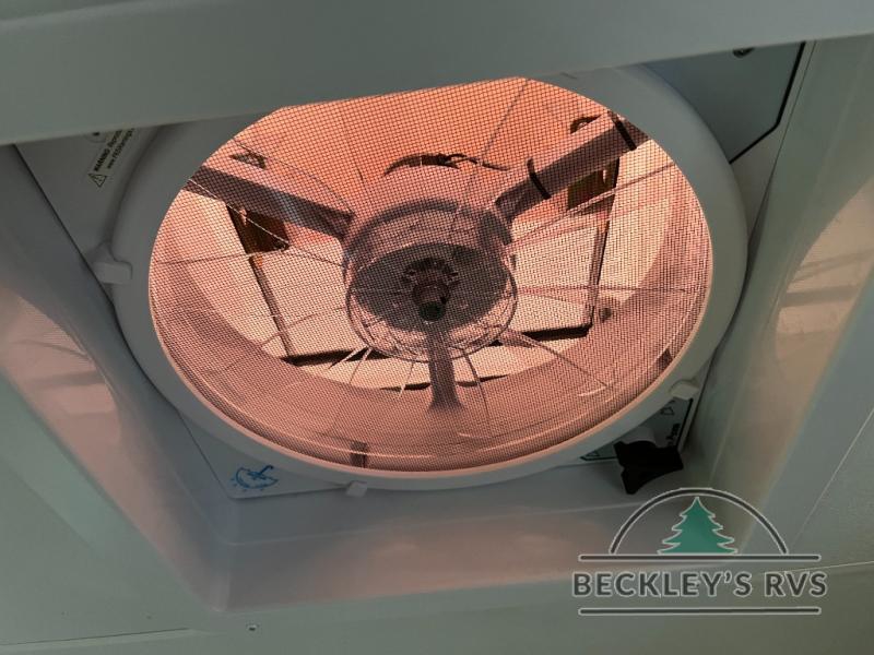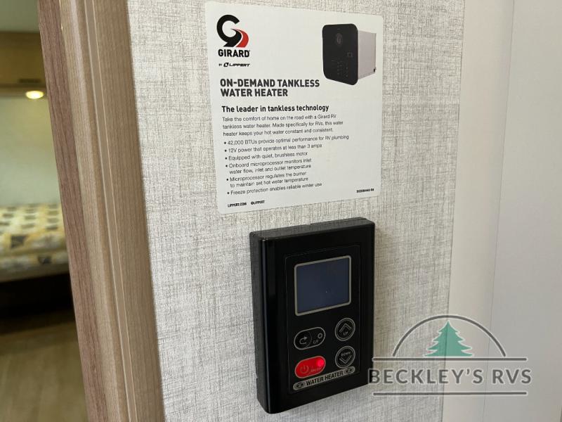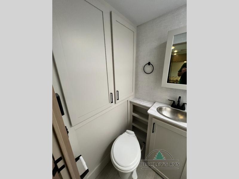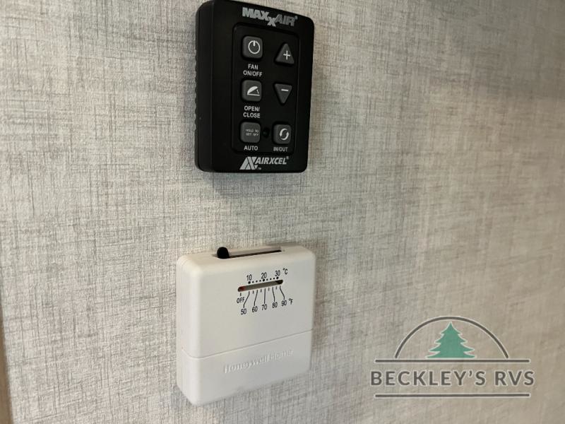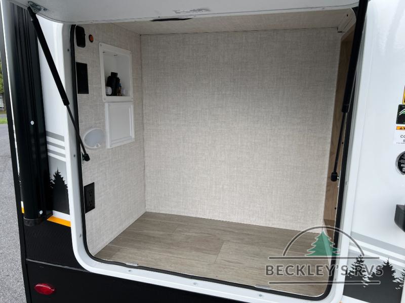Time at the campground in this travel trailer will be time well spent. Once you arrive at your destination, you can put out the 14' electric awning, unpack the pass-through storage, then head inside for lunch. There is an air fryer convection microwave plus a dual burner cooktop to make meals each day, and the 10 cu. ft. 12V refrigerator will keep your food fresh. A legless dinette slide provides a place to dine together and even let a guest sleep over. If you're not needing the extra sleeping space, just choose the optional theater seating! You'll find the front queen bed will give you a great night's rest, and there is a full rear bath on board that will allow you to freshen up each morning.