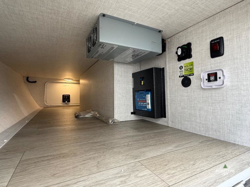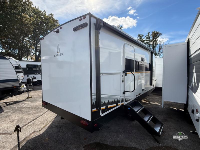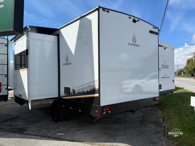 With any E-Series travel trailer by Ember RV you will enjoy a lightweight RV with all the "Essentials" needed for memorable trips in the great outdoors! Each model is constructed with durable laminated Azdel Onboard composite walls, a full walkable roof with a one-piece Tufflex PVC roofing material, and a gel-coated fiberglass exterior. The Dexter axles with E-Z lube hubs and forward self-adjusting electric brakes plus Goodyear Endurance tires will provide a smooth tow from home to campground. You will appreciate the Congoleum DiamondFlor "carpetless" interior that is easy to clean, and the hardwood framed cabinet doors will create a more residential feel. Each model includes a tankless on-demand water heater for endless hot showers and an 18,000 BTU Max Cool "Whisper Quiet" A/C, which is the largest single A/C in its class! If you're looking for off-grid capabilities, you might want to choose the optional Off-Grid Solar Package with 400 total watts of solar panels, a 2,000W Pure Sine wave inverter, and a Victron MPPT solar controller!