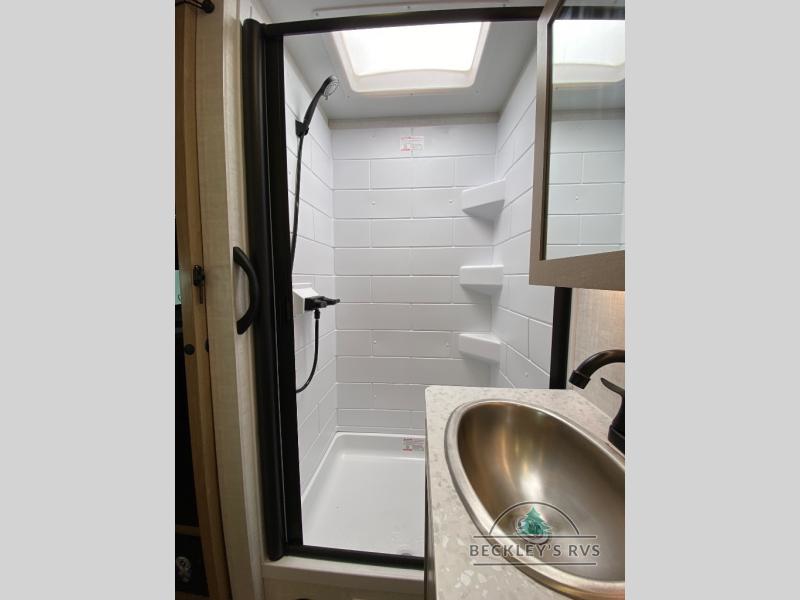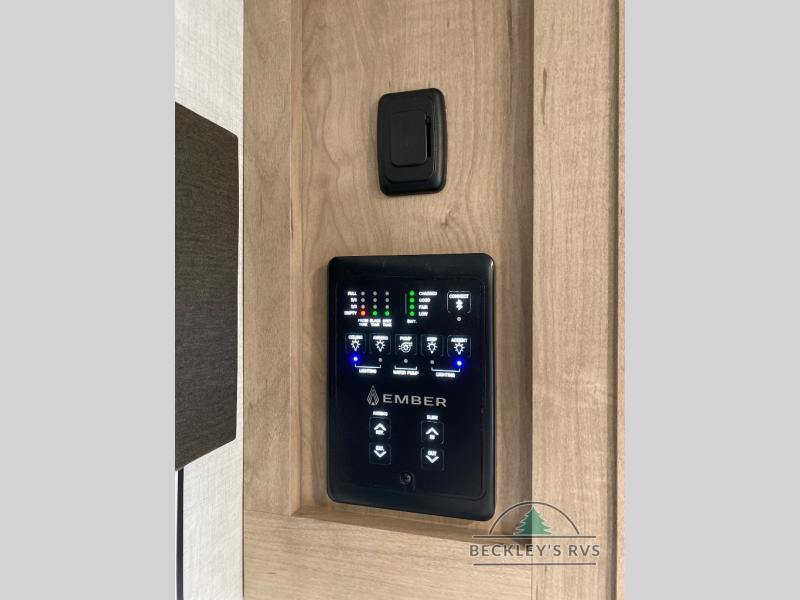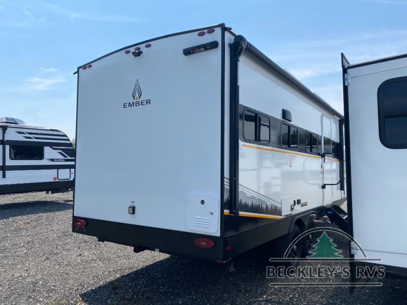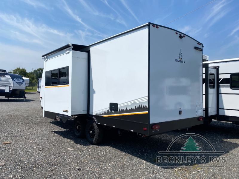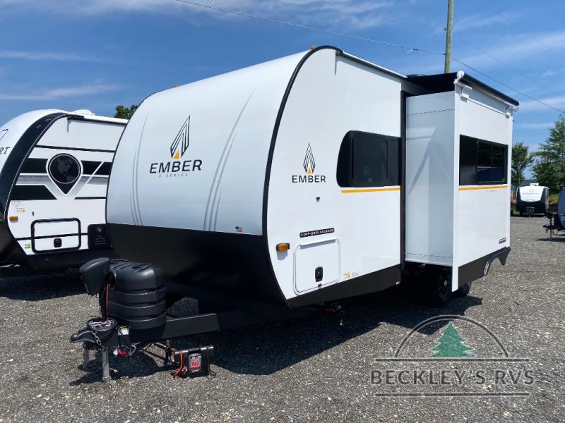 With any E-Series travel trailer by Ember RV you will enjoy a lightweight RV with all the "Essentials" needed for memorable trips in the great outdoors! Each model is constructed with durable laminated Azdel Onboard composite walls, a full walkable roof with a one-piece Tufflex PVC roofing material, and a gel-coated fiberglass exterior. The Dexter axles with E-Z lube hubs and forward self-adjusting electric brakes plus Goodyear Endurance tires will provide a smooth tow from home to campground. You will appreciate the Congoleum DiamondFlor "carpetless" interior that is easy to clean, and the hardwood framed cabinet doors will create a more residential feel. Each model includes a tankless on-demand water heater for endless hot showers and an 18,000 BTU Max Cool "Whisper Quiet" A/C, which is the largest single A/C in its class! If you're looking for off-grid capabilities, you might want to choose the optional Off-Grid Solar Package with 400 total watts of solar panels, a 2,000W Pure Sine wave inverter, and a Victron MPPT solar controller!