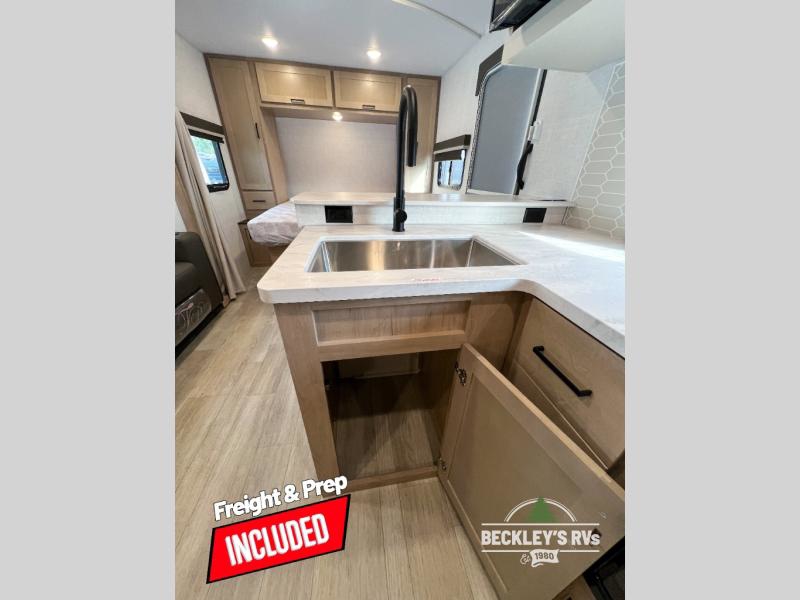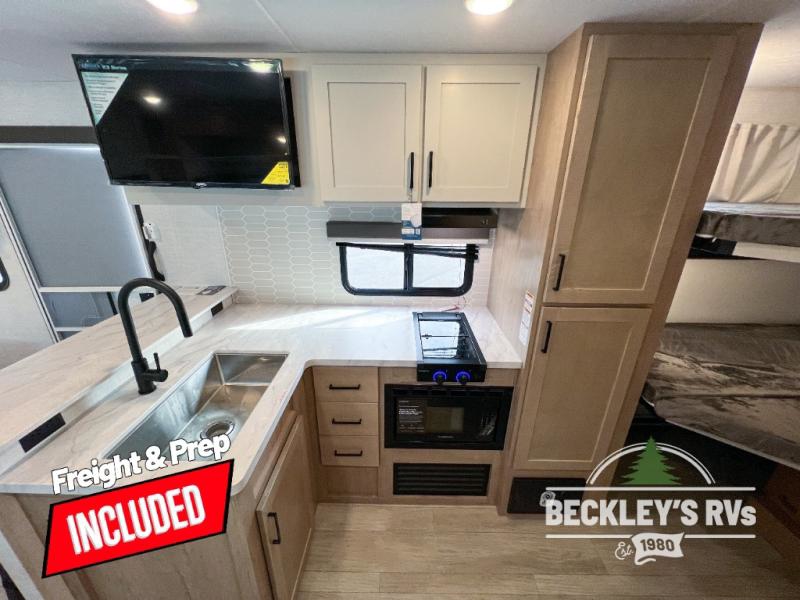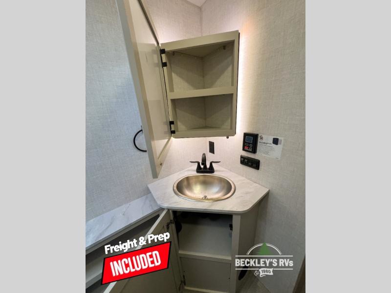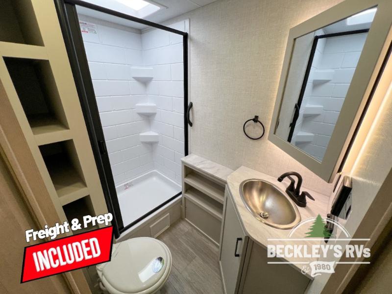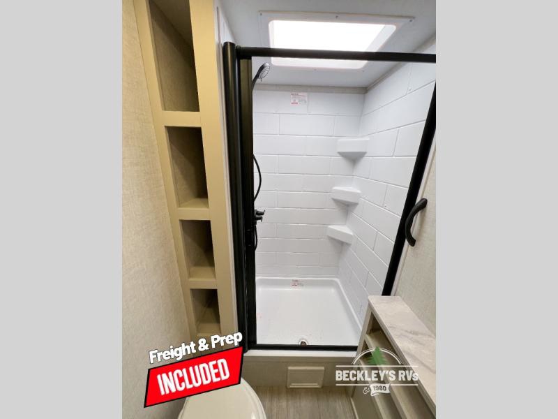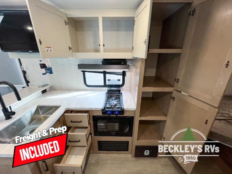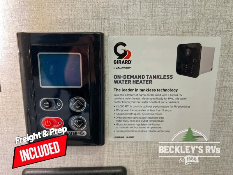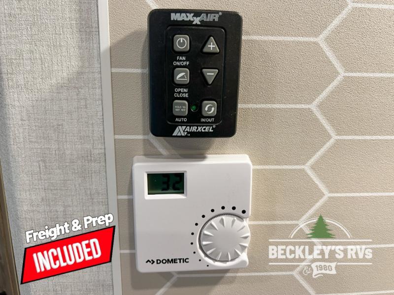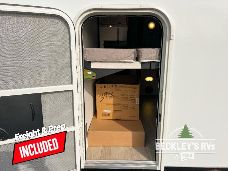 With any E-Series travel trailer by Ember RV you will enjoy a lightweight RV with all the "Essentials" needed for memorable trips in the great outdoors! Each model is constructed with durable laminated Azdel Onboard composite walls, a full walkable roof with a one-piece Tufflex PVC roofing material, and a gel-coated fiberglass exterior. The Dexter axles with E-Z lube hubs and forward self-adjusting electric brakes plus Goodyear Endurance tires will provide a smooth tow from home to campground. You will appreciate the Congoleum DiamondFlor "carpetless" interior that is easy to clean, and the hardwood framed cabinet doors will create a more residential feel. Each model includes a tankless on-demand water heater for endless hot showers and an 18,000 BTU Max Cool "Whisper Quiet" A/C, which is the largest single A/C in its class! If you're looking for off-grid capabilities, you might want to choose the optional Off-Grid Solar Package with 400 total watts of solar panels, a 2,000W Pure Sine wave inverter, and a Victron MPPT solar controller!