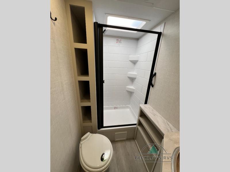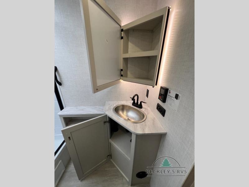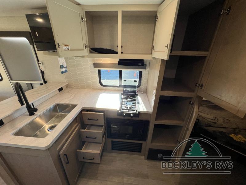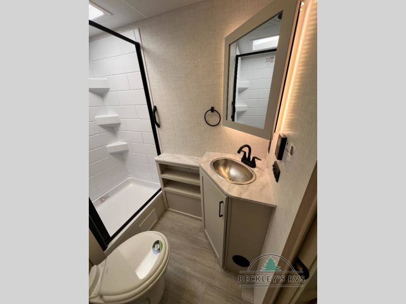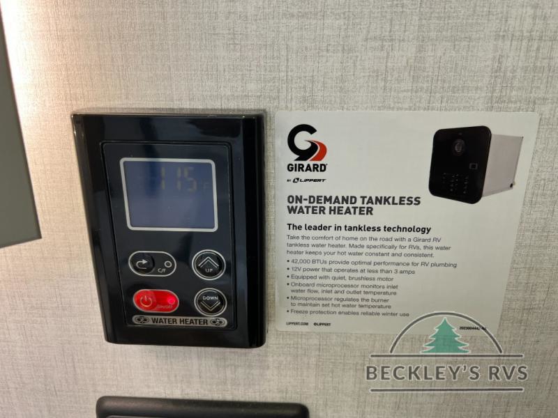 With any E-Series travel trailer by Ember RV you will enjoy a lightweight RV with all the "Essentials" needed for memorable trips in the great outdoors! Each model is constructed with durable laminated Azdel Onboard composite walls, a full walkable roof with a one-piece Tufflex PVC roofing material, and a gel-coated fiberglass exterior. The Dexter axles with E-Z lube hubs and forward self-adjusting electric brakes plus Goodyear Endurance tires will provide a smooth tow from home to campground. You will appreciate the Congoleum DiamondFlor "carpetless" interior that is easy to clean, and the hardwood framed cabinet doors will create a more residential feel. Each model includes a tankless on-demand water heater for endless hot showers and an 18,000 BTU Max Cool "Whisper Quiet" A/C, which is the largest single A/C in its class! If you're looking for off-grid capabilities, you might want to choose the optional Off-Grid Solar Package with 400 total watts of solar panels, a 2,000W Pure Sine wave inverter, and a Victron MPPT solar controller!