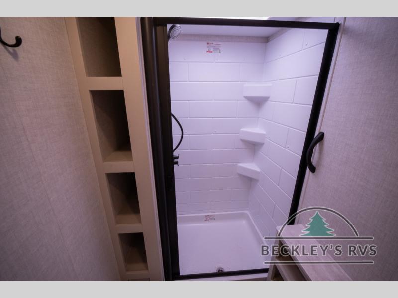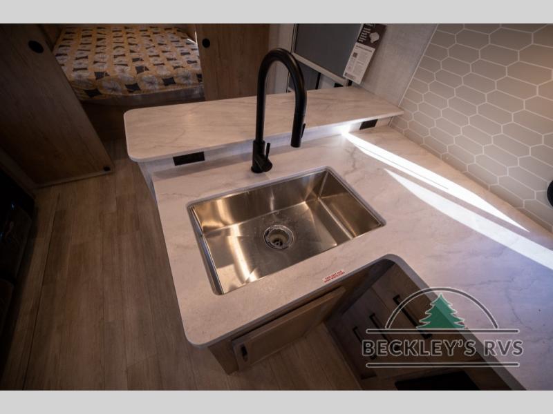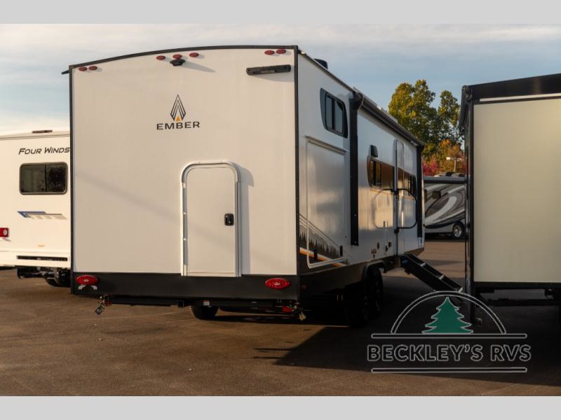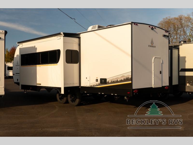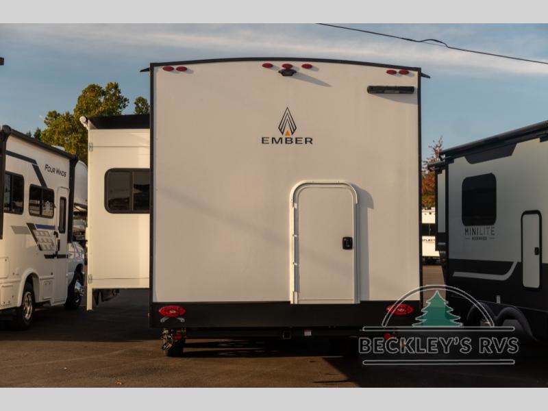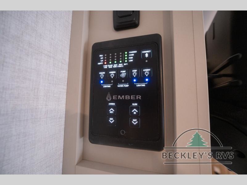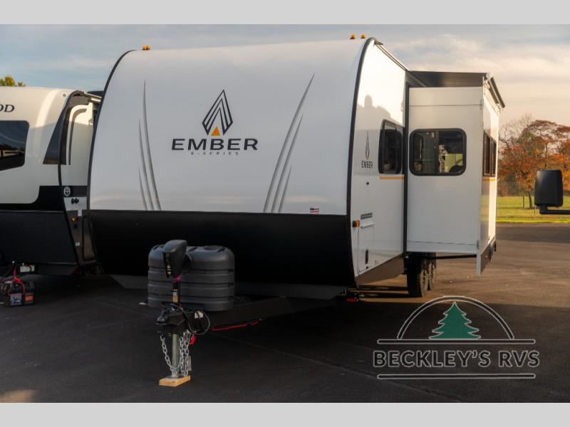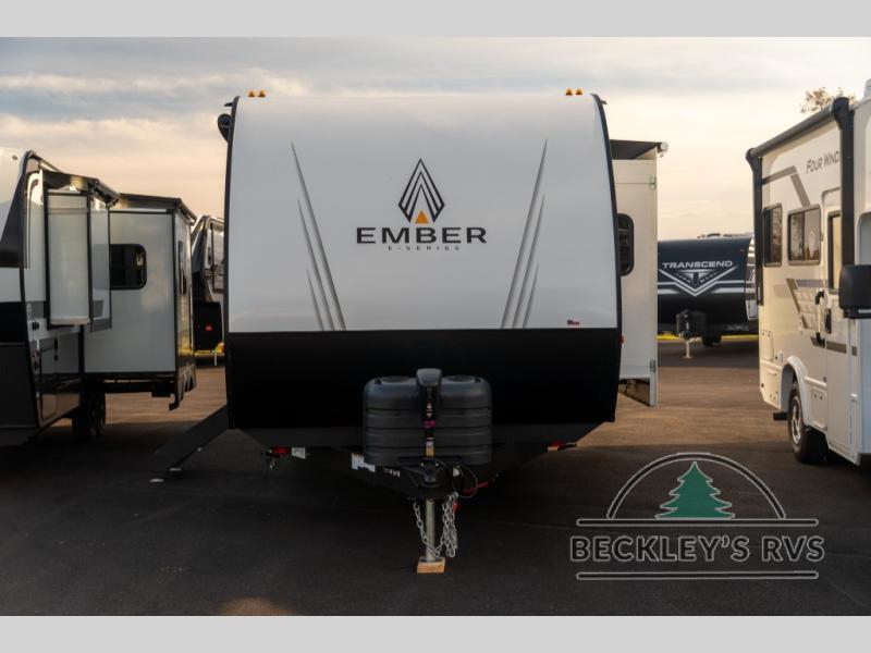 With any E-Series travel trailer by Ember RV you will enjoy a lightweight RV with all the "Essentials" needed for memorable trips in the great outdoors! Each model is constructed with durable laminated Azdel Onboard composite walls, a full walkable roof with a one-piece Tufflex PVC roofing material, and a gel-coated fiberglass exterior. The Dexter axles with E-Z lube hubs and forward self-adjusting electric brakes plus Goodyear Endurance tires will provide a smooth tow from home to campground. You will appreciate the Congoleum DiamondFlor "carpetless" interior that is easy to clean, and the hardwood framed cabinet doors will create a more residential feel. Each model includes a tankless on-demand water heater for endless hot showers and an 18,000 BTU Max Cool "Whisper Quiet" A/C, which is the largest single A/C in its class! An EmberLink Smart RV system will let you easily control features such as lights and slides and you can wash away those rainy day blues by watching the HDTV with a built-in Bluetooth AV system. If you're looking for off-grid capabilities, you might want to choose the optional Off-Grid Solar Package with 400 total watts of solar panels, a 2,000W Pure Sine wave inverter, and a Victron MPPT solar controller!