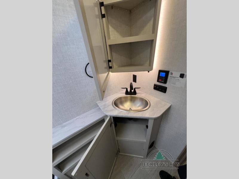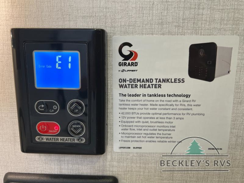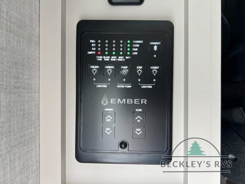 With any E-Series travel trailer by Ember RV you will enjoy a lightweight RV with all the "Essentials" needed for memorable trips in the great outdoors! Each model is constructed with durable laminated Azdel Onboard composite walls, a full walkable roof with a one-piece Tufflex PVC roofing material, and a gel-coated fiberglass exterior. The Dexter axles with E-Z lube hubs and forward self-adjusting electric brakes plus Goodyear Endurance tires will provide a smooth tow from home to campground. You will appreciate the Congoleum DiamondFlor "carpetless" interior that is easy to clean, and the hardwood framed cabinet doors will create a more residential feel. Each model includes a tankless on-demand water heater for endless hot showers and an 18,000 BTU Max Cool "Whisper Quiet" A/C, which is the largest single A/C in its class! An EmberLink Smart RV system will let you easily control features such as lights and slides and you can wash away those rainy day blues by watching the HDTV with a built-in Bluetooth AV system. If you're looking for off-grid capabilities, you might want to choose the optional Off-Grid Solar Package with 400 total watts of solar panels, a 2,000W Pure Sine wave inverter, and a Victron MPPT solar controller!