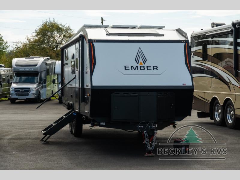 Each one of these Ember RV Overland Series travel trailers and toy hauler were built to meet the needs of today's most discerning RVers with layouts to fit couples and families! The CURT independent suspension comes with heavy-duty coil springs with dual shock absorbers on each wheel, and the 5-sided aluminum frame construction is sure to hold up through whatever adventure you throw its way. Laminated Azdel Onboard composite walls and rooftop prevent rotting or molding of the unit. Their chic interior design comes with structural composite flooring that is durable and easy to clean, dual pane caravan windows with integrated thermal shades/screens for added privacy, and an EmberLink smart RV control system to use at the touch of a finger. The Off-Grid Solar package lets you go further into the woods and the Safety First package helps you arrive safely to each destination.
