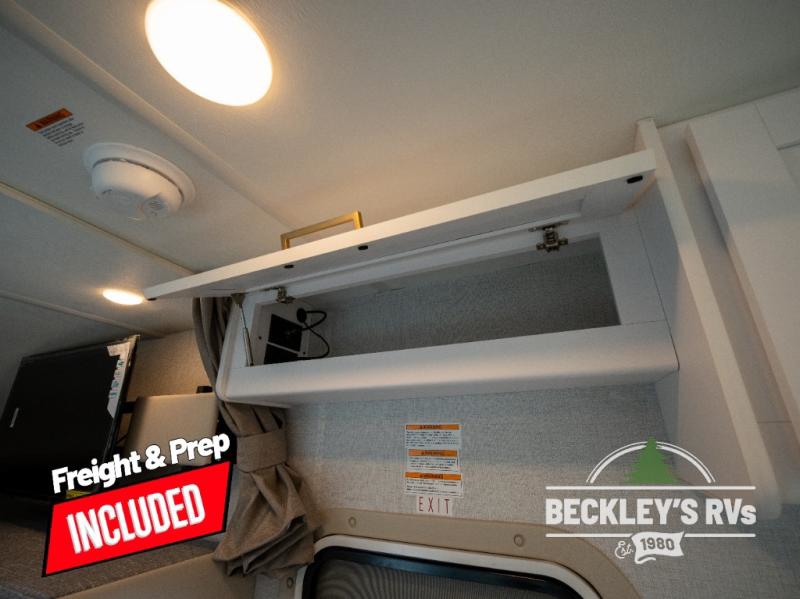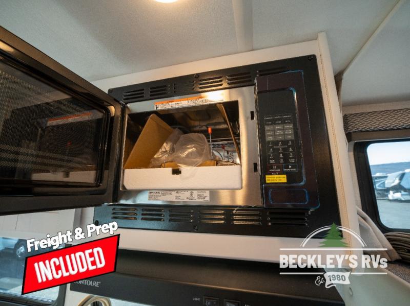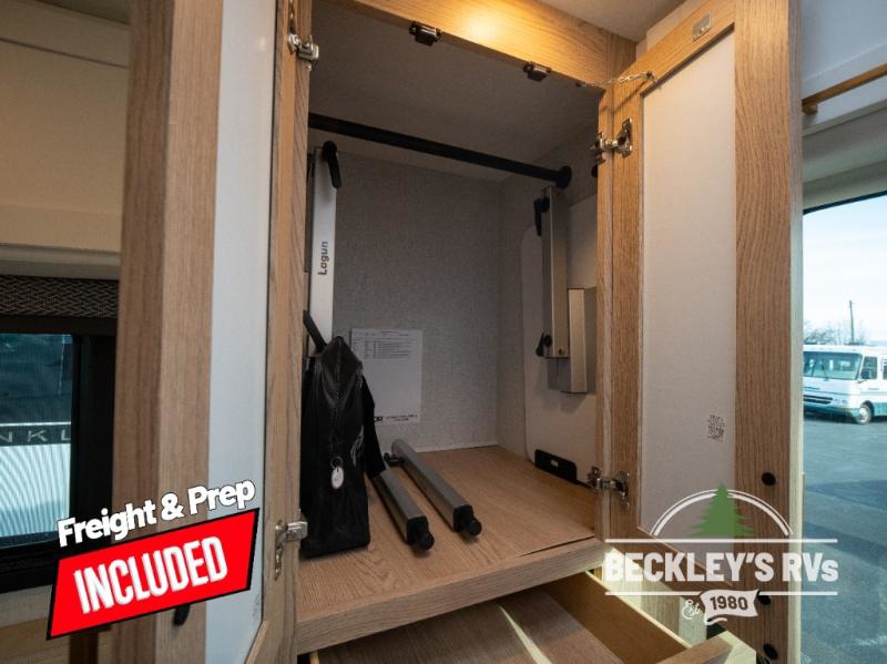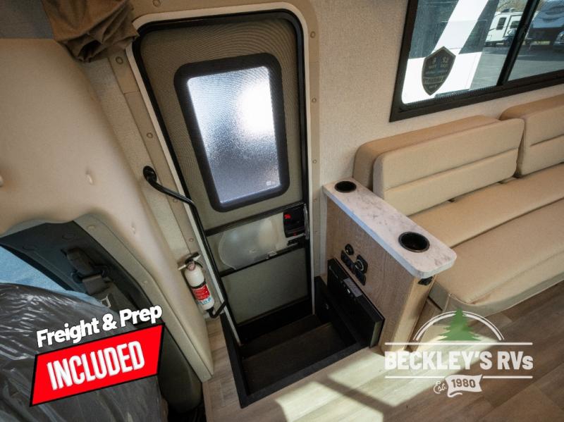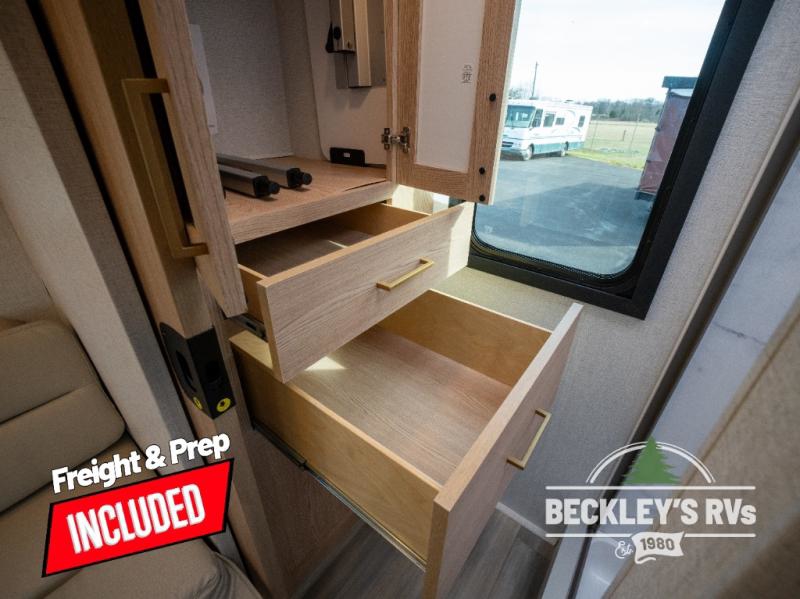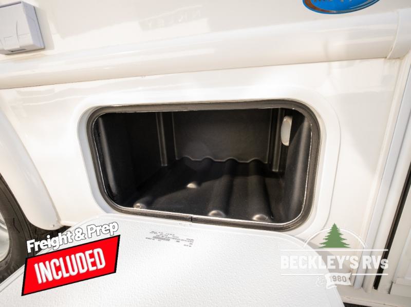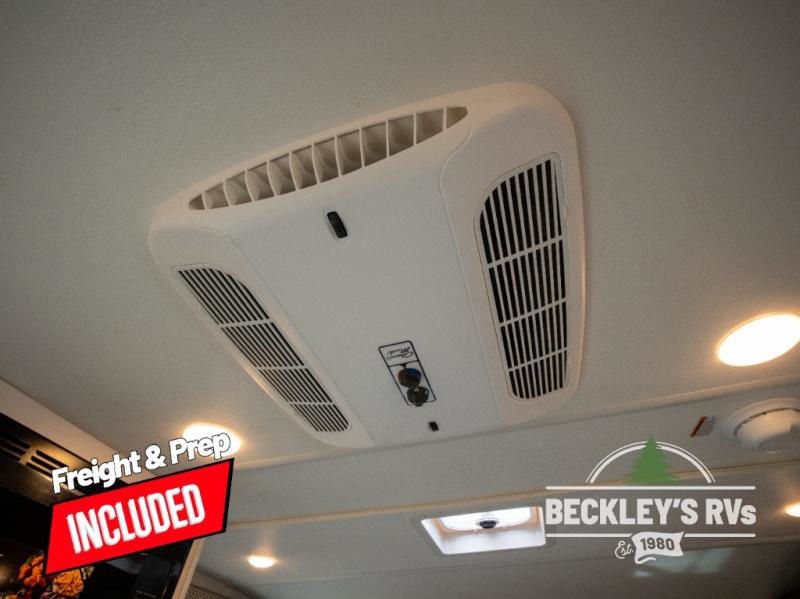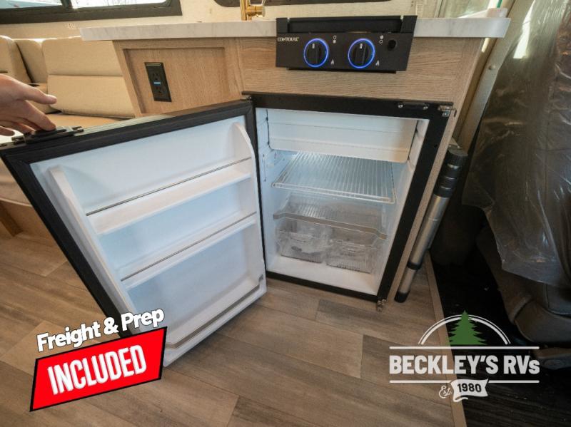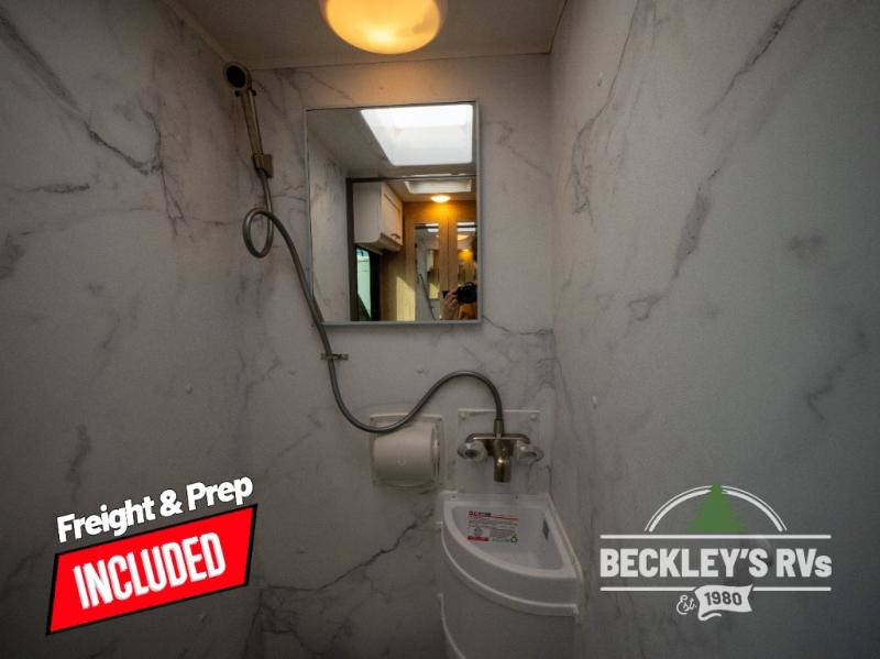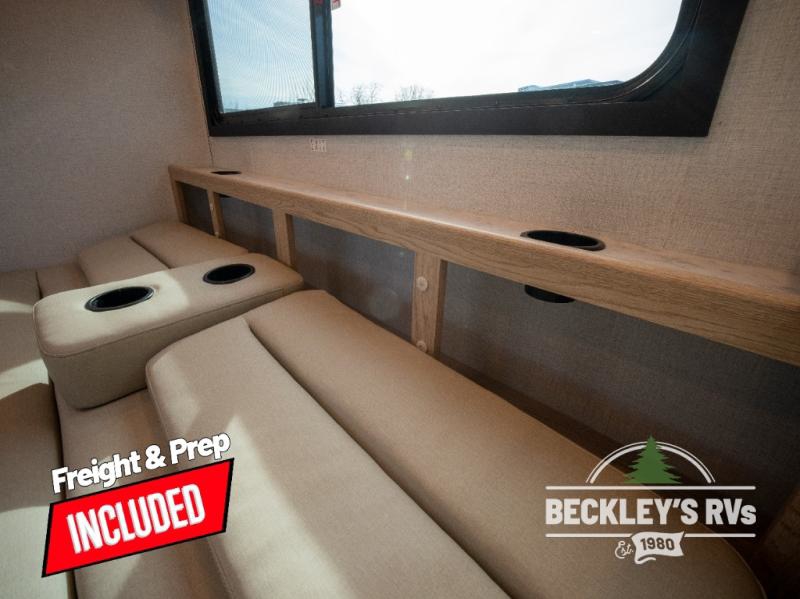 This compact coach will be perfect for your trips across the state or country! Once you park for the day, you can make dinner on the two-burner gas cooktop or in the convection microwave. There is a 12V refrigerator plus an additional quick access pull-out refrigerator to keep drinks stocked! The two twin-size benches/beds can convert to a king-size bed, and there are removable tables here where you can easily dine and play card games at. The rear wet bath includes a power bath vent, a foot flush toilet, and a skylight, plus there is a closet nearby for easy access to clean clothes!
