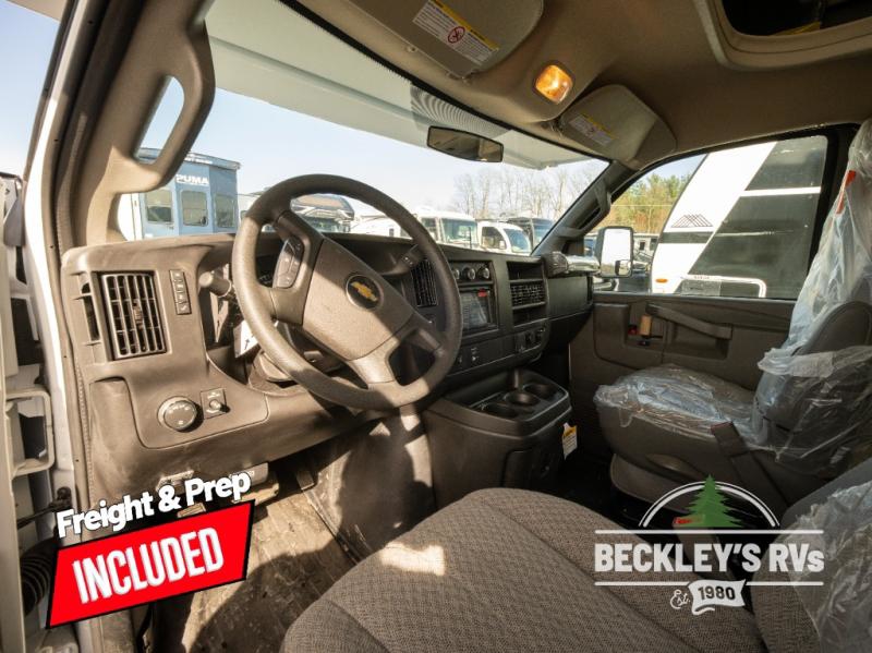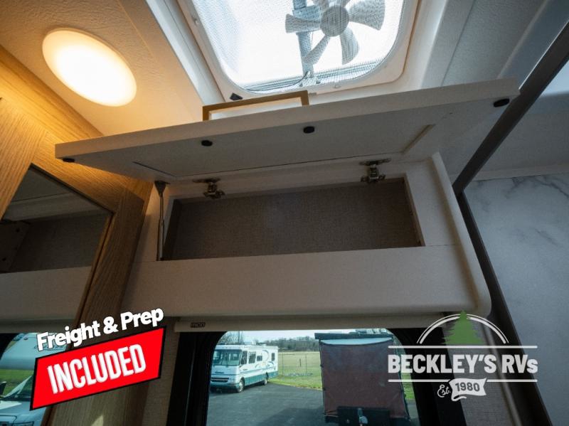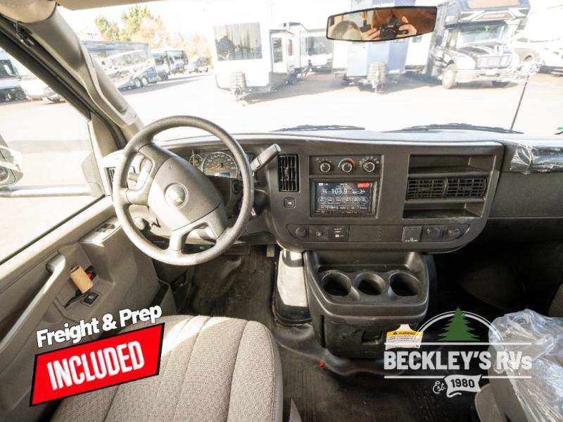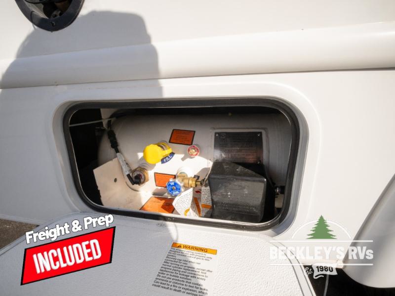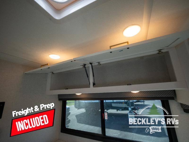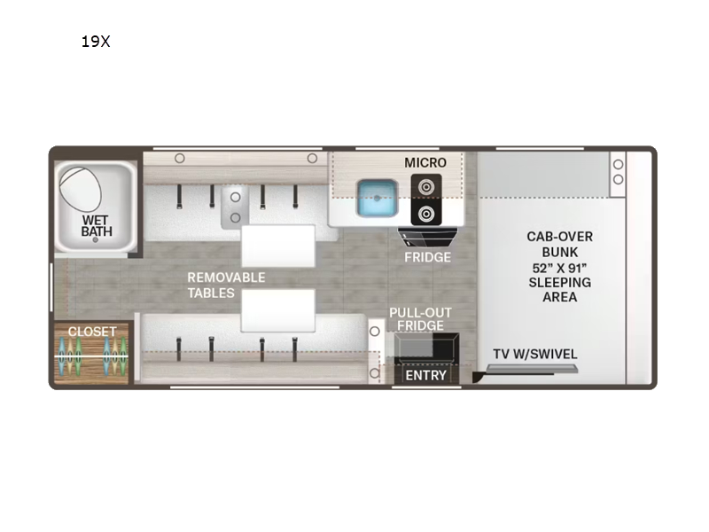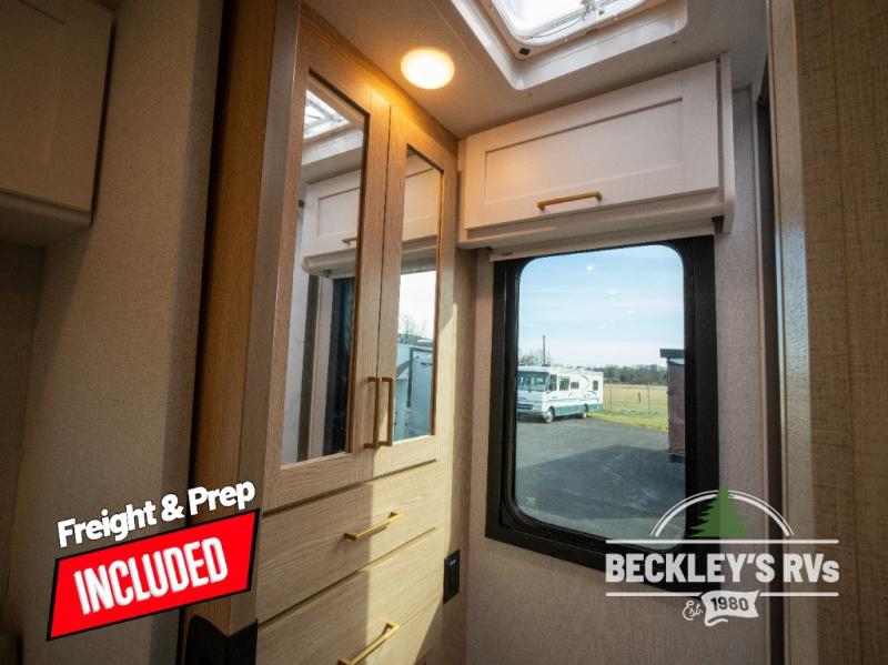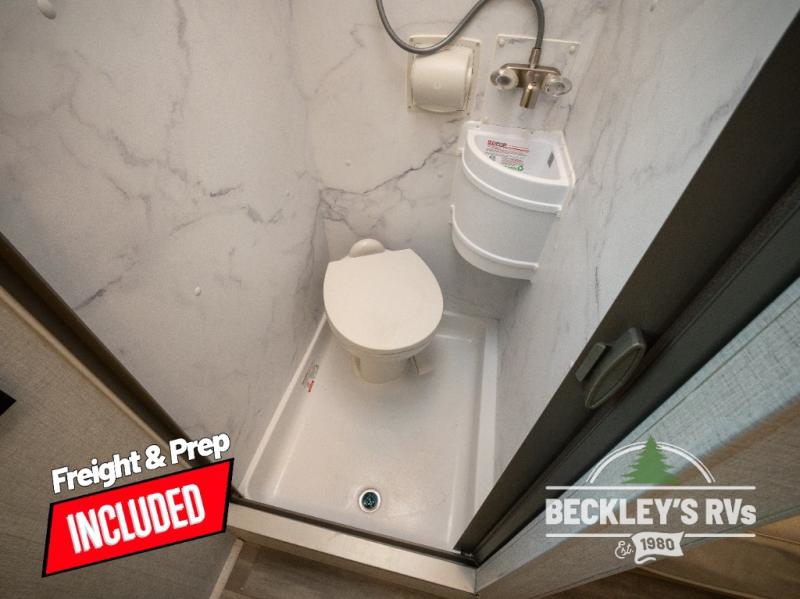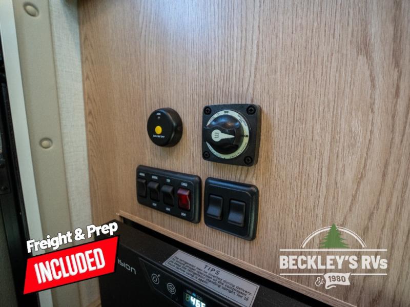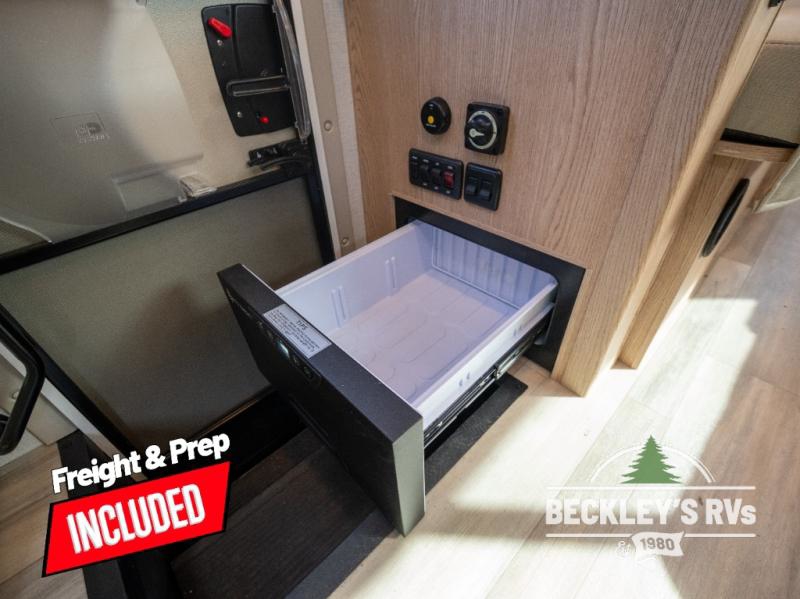 This compact coach will be perfect for your trips across the state or country! Once you park for the day, you can make dinner on the two-burner gas cooktop or in the convection microwave. There is a 12V refrigerator plus an additional quick access pull-out refrigerator to keep drinks stocked! The two twin-size benches/beds can convert to a king-size bed, and there are removable tables here where you can easily dine and play card games at. The rear wet bath includes a power bath vent, a foot flush toilet, and a skylight, plus there is a closet nearby for easy access to clean clothes!