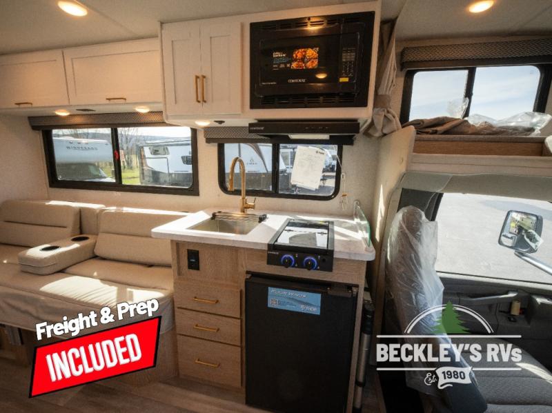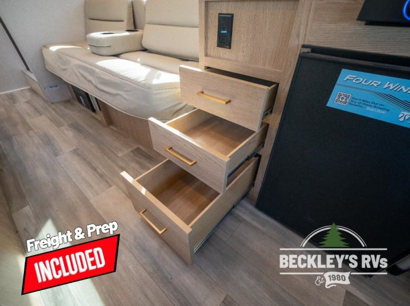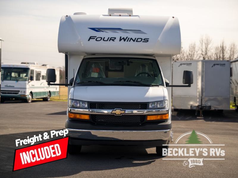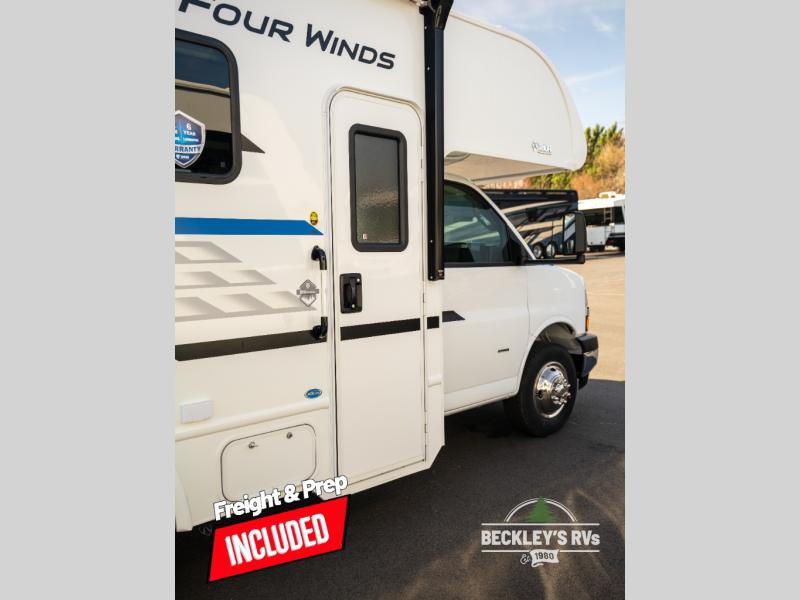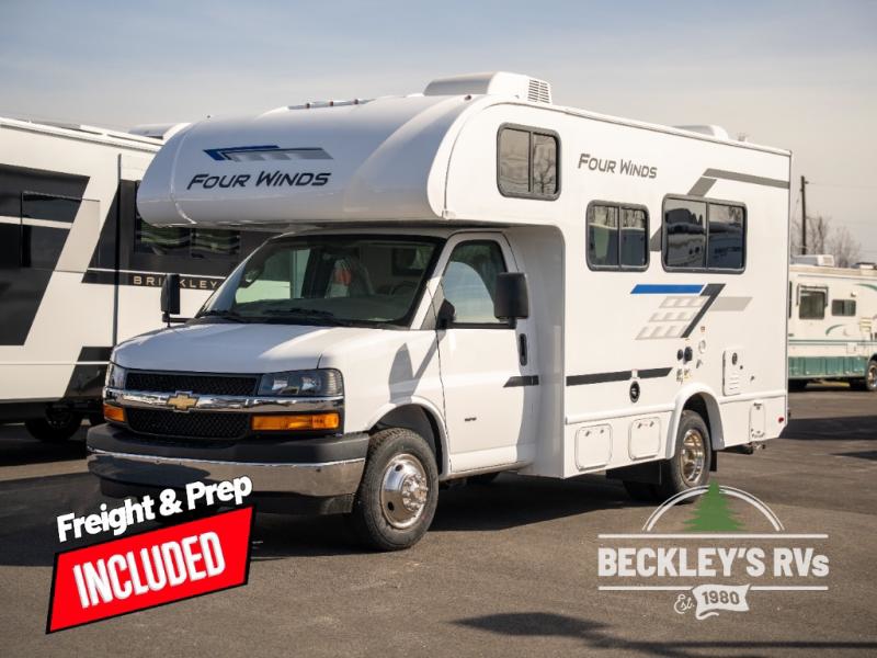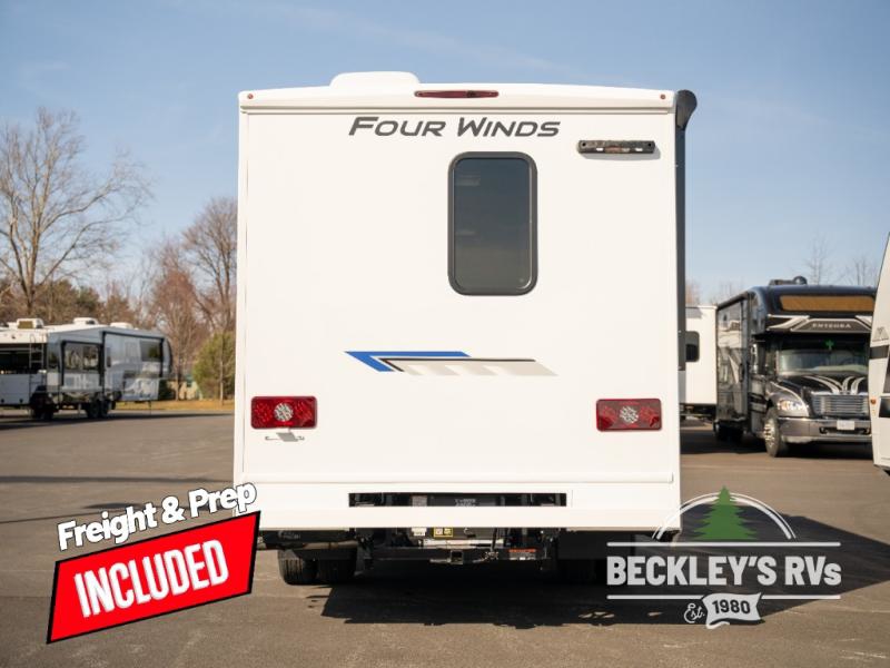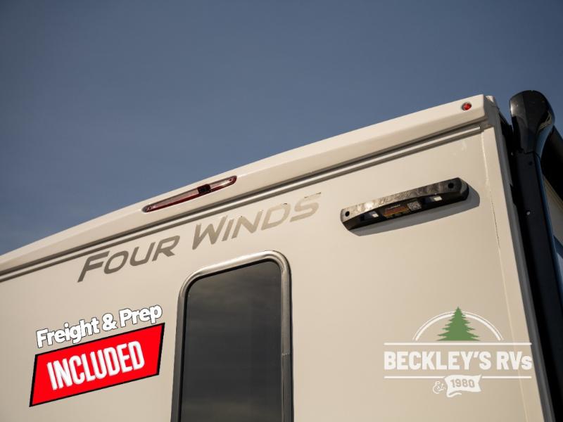 With any Four Winds ESpec Class C gas motorhome by Thor Motor Coach, you will find convenient amenities, a modern interior, and a reliable chassis. There is welded tubular aluminum roof and sidewall cage construction, a one-piece fiberglass front cap, and a one-piece domed roof membrane for added strength. Residential vinyl flooring will be easy to keep clean, and you'll love the sleek look of the Hampton Collection, two-toned cabinets. These motorhomes also include a 50 state 4.0 kW dual gas/LP generator and a 30-amp shoreline power cord to keep you going, along with a tankless water heater and 13,500 roof front A/C to ensure your comfort!