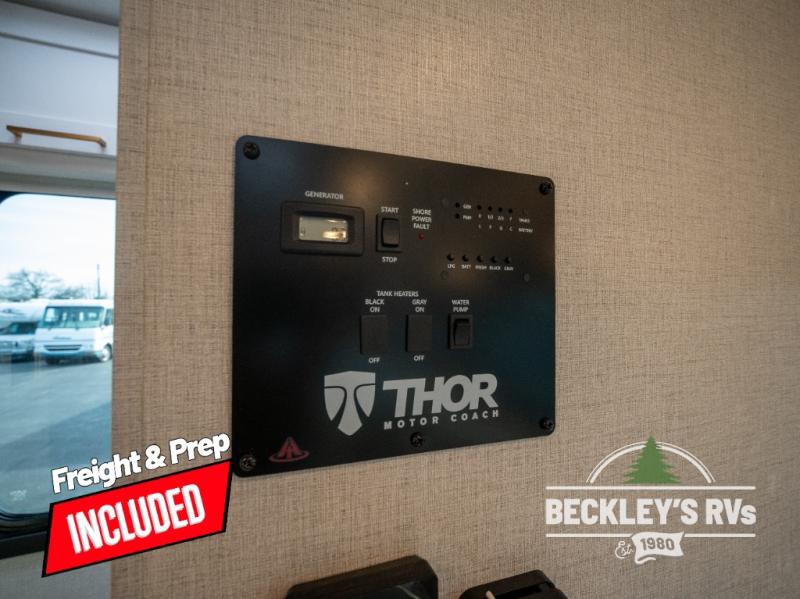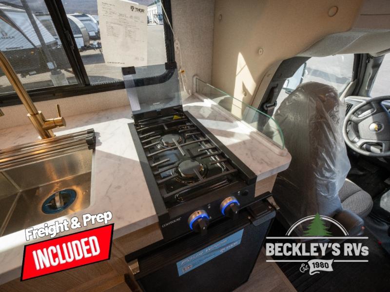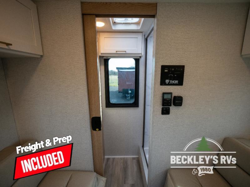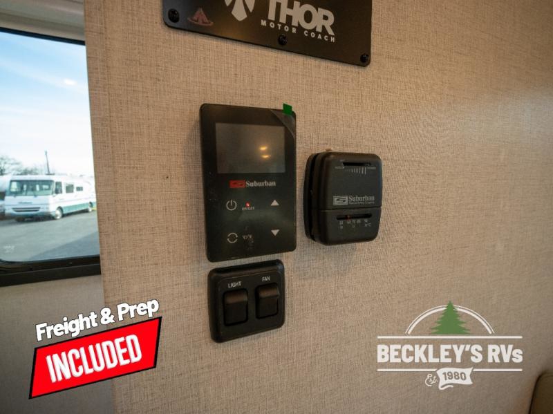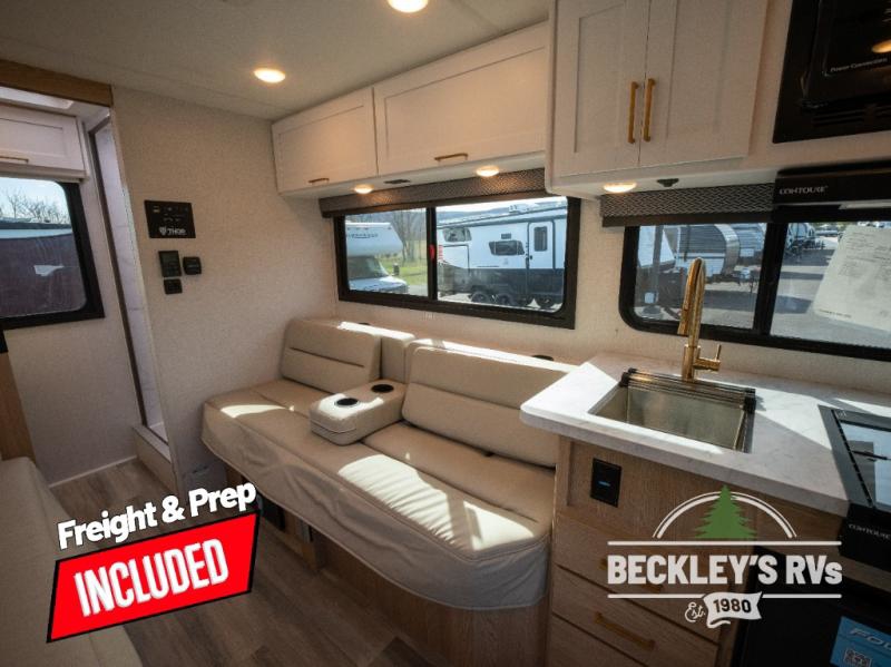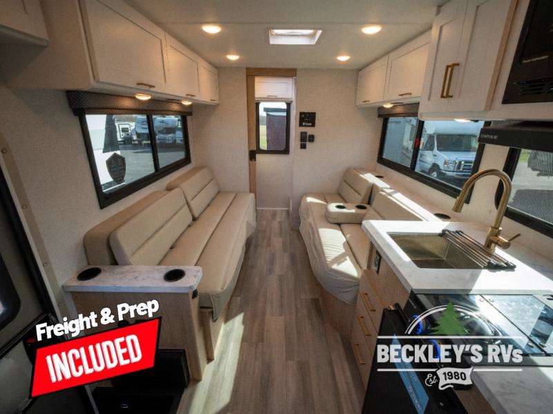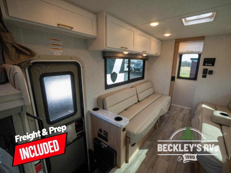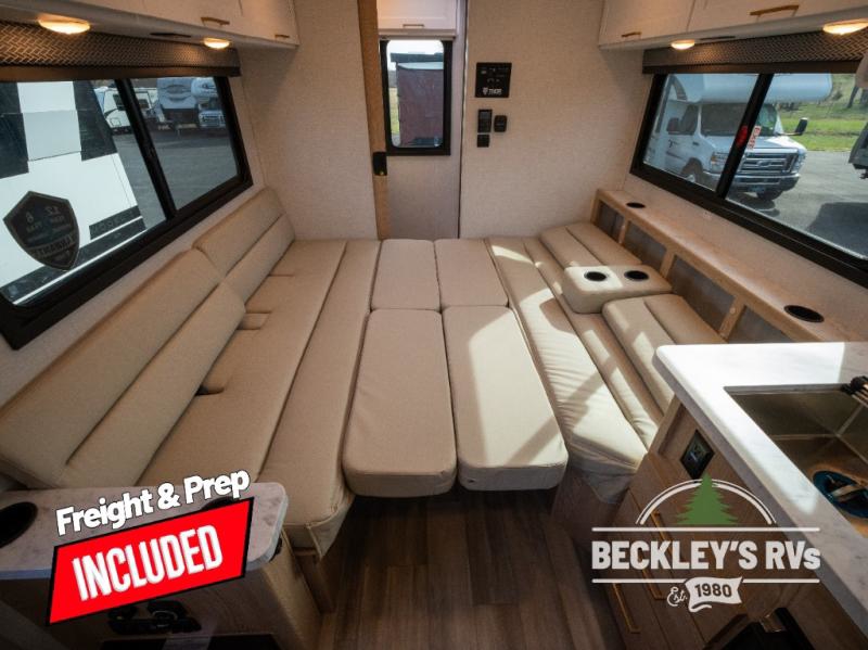 With any Four Winds ESpec Class C gas motorhome by Thor Motor Coach, you will find convenient amenities, a modern interior, and a reliable chassis. There is welded tubular aluminum roof and sidewall cage construction, a one-piece fiberglass front cap, and a one-piece domed roof membrane for added strength. Residential vinyl flooring will be easy to keep clean, and you'll love the sleek look of the Hampton Collection, two-toned cabinets. These motorhomes also include a 50 state 4.0 kW dual gas/LP generator and a 30-amp shoreline power cord to keep you going, along with a tankless water heater and 13,500 roof front A/C to ensure your comfort!