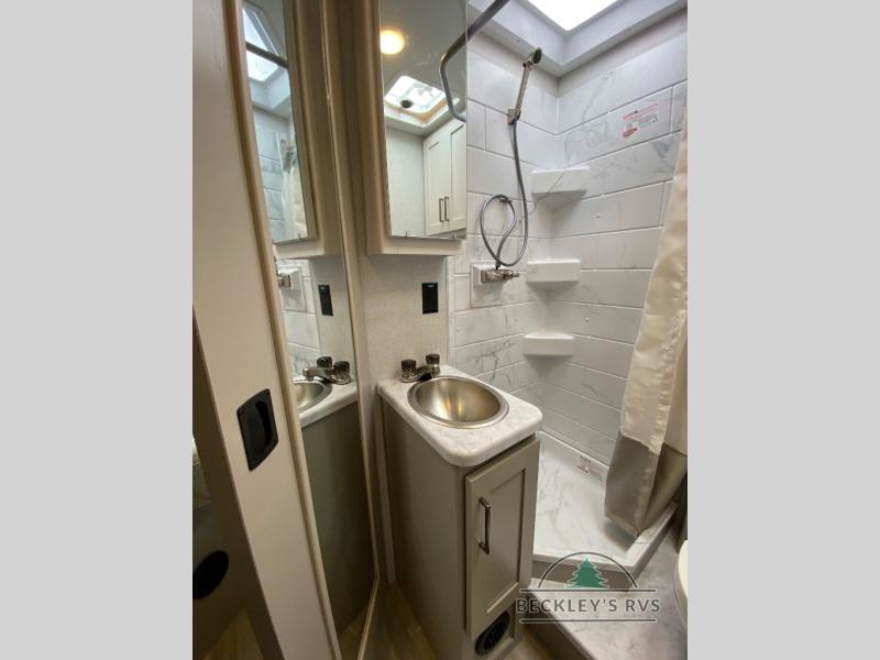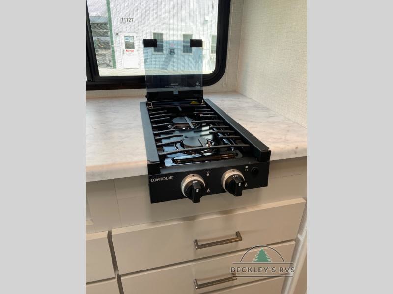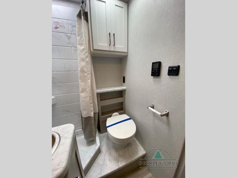 It won't be hard to find comfort in this coach for five! You can freshen up in the mid-coach full bath once you've set up camp, then make lunch on the two burner gas cooktop or convection microwave with an air fryer. There is also a 12V refrigerator for cold items and a flip-up countertop for more space. Whether you dine at the Dream Dinette slide out or take your plate outdoors under the 17' 6" power awning, you're sure to have a great time in this motorhome. The semi-private rear bedroom includes a privacy curtain, two twin beds with a king-size bed conversion, plus TV prep if you want the option to watch shows in bed. And any guests you may have can sleep on the dinette and 52" x 96" cab-over sleeping space!