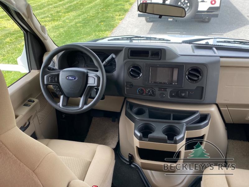 With any Four Winds ESpec Class C gas motorhome by Thor Motor Coach, you will find convenient amenities, a modern interior, and a reliable Ford E-Series chassis, with an optional Chevy chassis on select models to power your adventures. There is welded tubular aluminum roof and sidewall cage construction, a one-piece fiberglass front cap, and a one-piece domed roof membrane for added strength. Residential vinyl flooring will be easy to keep clean, and you'll love the sleek look of the Hampton Collection, two-toned cabinets. These motorhomes also include a 50 state 4.0 kW dual gas/LP generator and a 30-amp shoreline power cord to keep you going, along with a tankless water heater and 13,500 roof front A/C to ensure your comfort!
