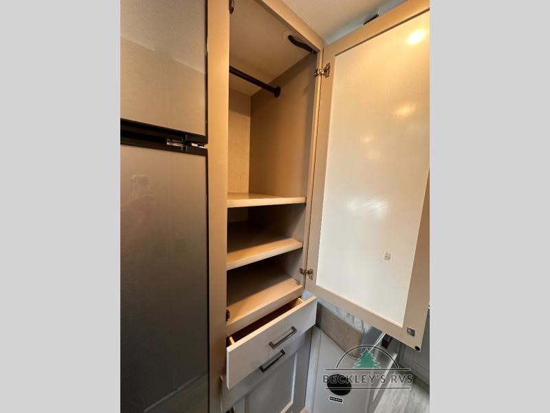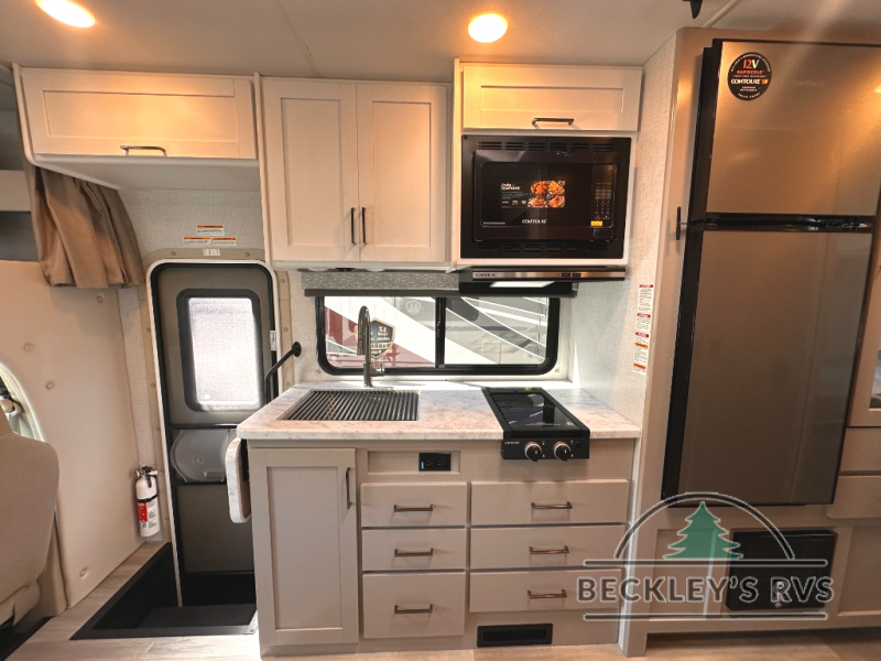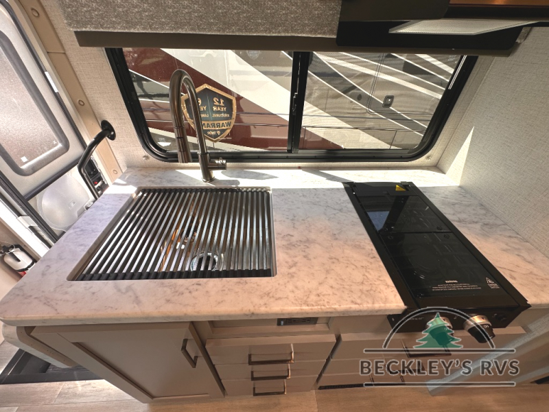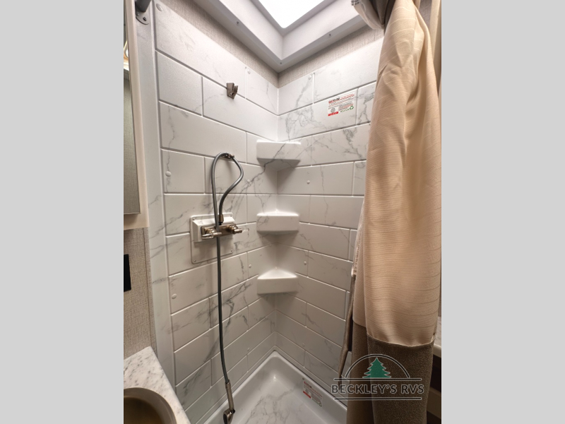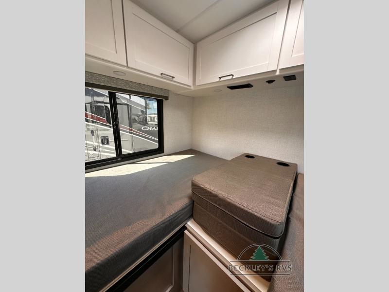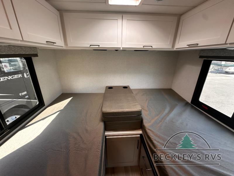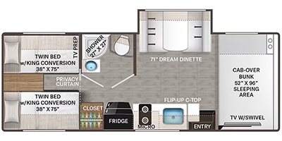 It won't be hard to find comfort in this coach for five! You can freshen up in the mid-coach full bath once you've set up camp, then make lunch on the two burner gas cooktop or convection microwave with an air fryer. There is also a 12V refrigerator for cold items and a flip-up countertop for more space. Whether you dine at the Dream Dinette slide out or take your plate outdoors under the 17' 6" power awning, you're sure to have a great time in this motorhome. The semi-private rear bedroom includes a privacy curtain, two twin beds with a king-size bed conversion, plus TV prep if you want the option to watch shows in bed. And any guests you may have can sleep on the dinette and 52" x 96" cab-over sleeping space!