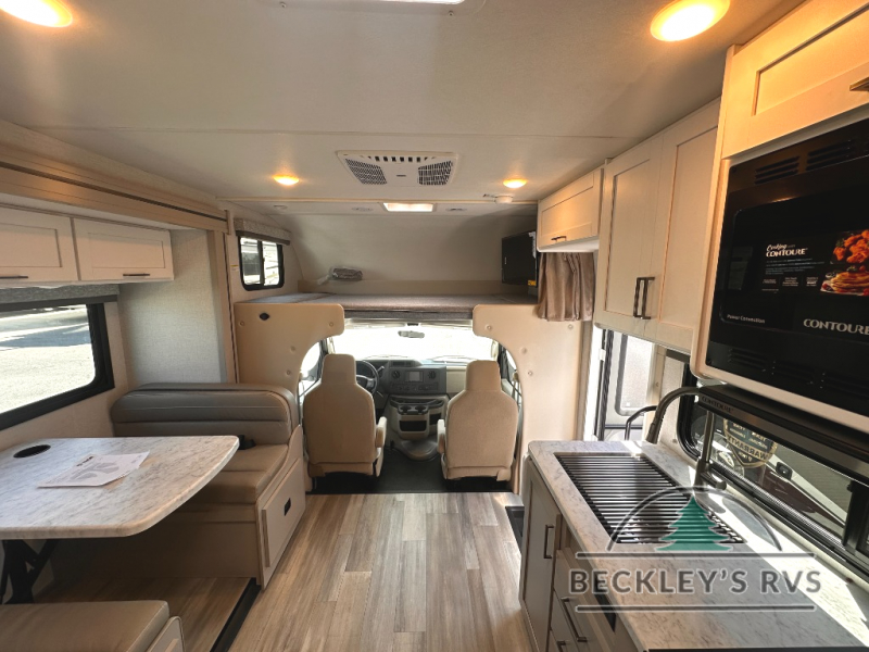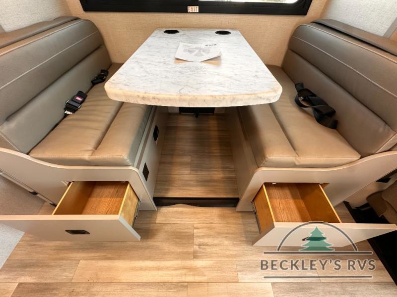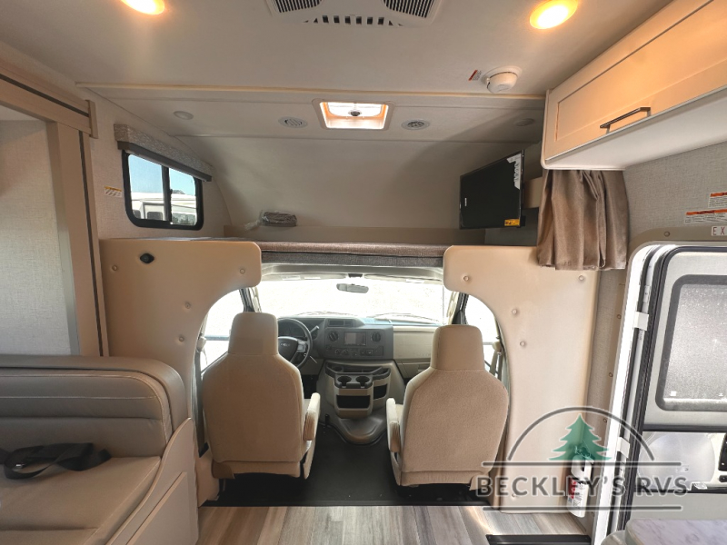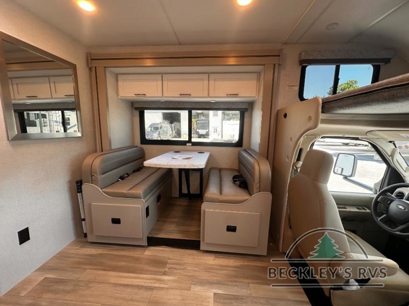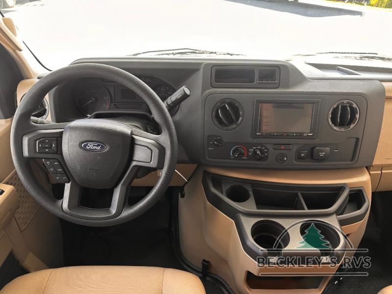 With any Four Winds ESpec Class C gas motorhome by Thor Motor Coach, you will find convenient amenities, a modern interior, and a reliable Ford E-Series chassis, with an optional Chevy chassis on select models to power your adventures. There is welded tubular aluminum roof and sidewall cage construction, a one-piece fiberglass front cap, and a one-piece domed roof membrane for added strength. Residential vinyl flooring will be easy to keep clean, and you'll love the sleek look of the Hampton Collection, two-toned cabinets. These motorhomes also include a 50 state 4.0 kW dual gas/LP generator and a 30-amp shoreline power cord to keep you going, along with a tankless water heater and 13,500 roof front A/C to ensure your comfort!