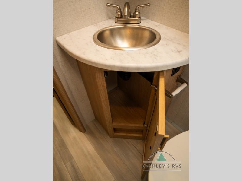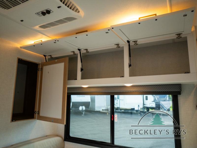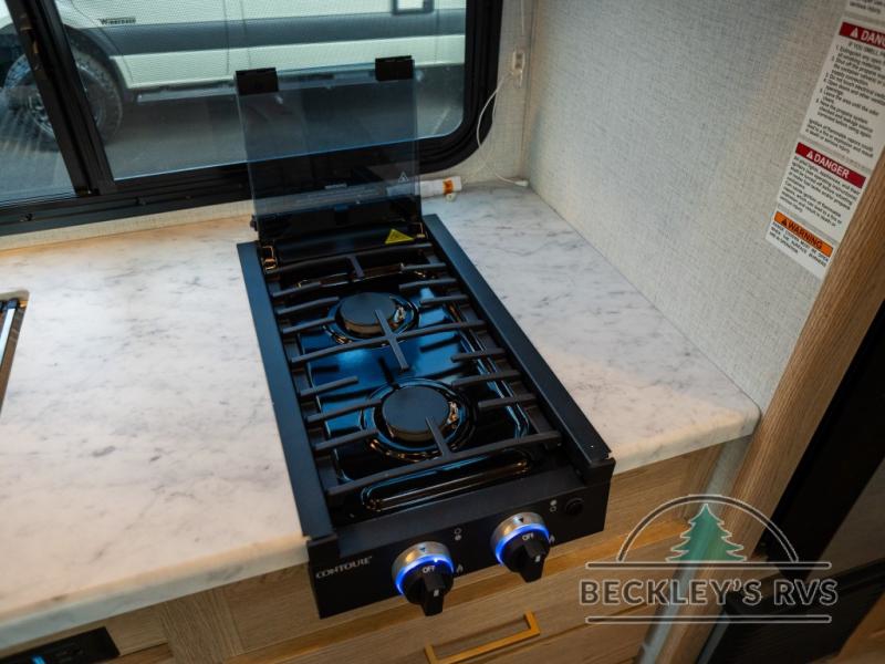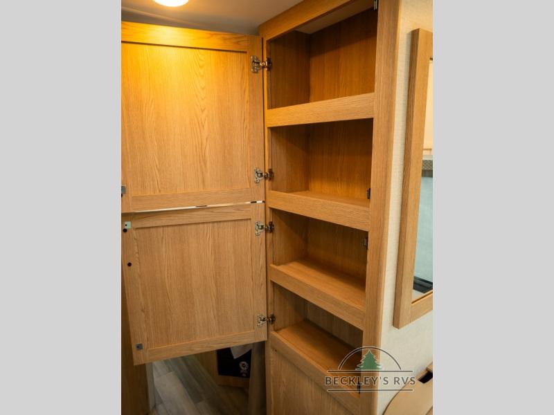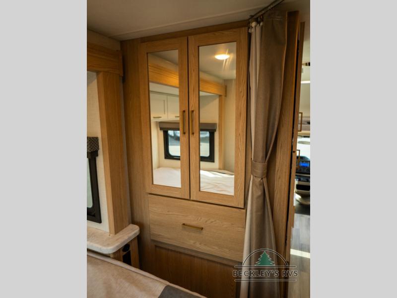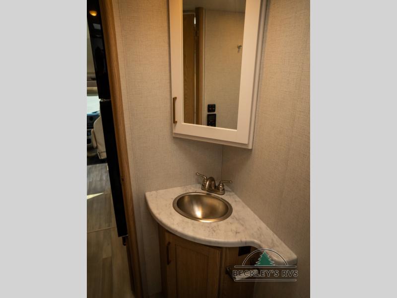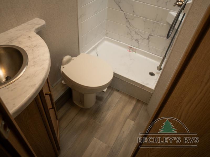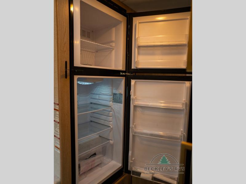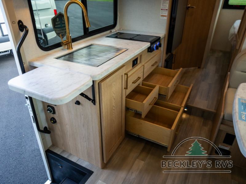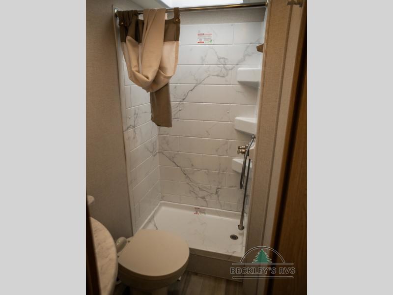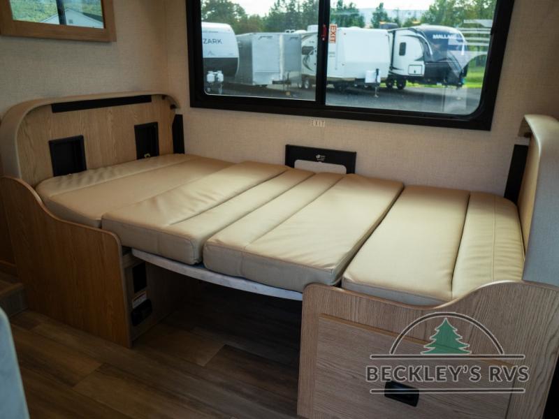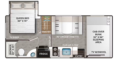 It won't be hard to find comfort in this coach for five! You can freshen up in the rear corner full bath once you've set up camp, then make lunch on the two burner gas cooktop or convection microwave with an air fryer. There is also a 12V refrigerator for cold items and a flip-up countertop for more space. Whether you dine at the Dream Dinette or take your plate outdoors under the 15' power awning, you're sure to have a great time in this motorhome. There is a semi-private bedroom with a 60" x 74" RV queen bed slide and bedroom TV prep if you want the option to watch movies in bed. And your guests can take the Dream Dinette and cab-over bunk at night!