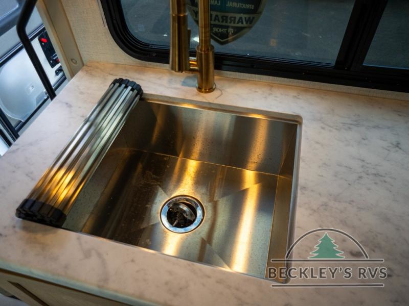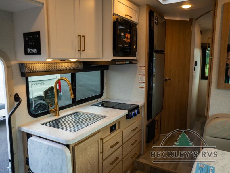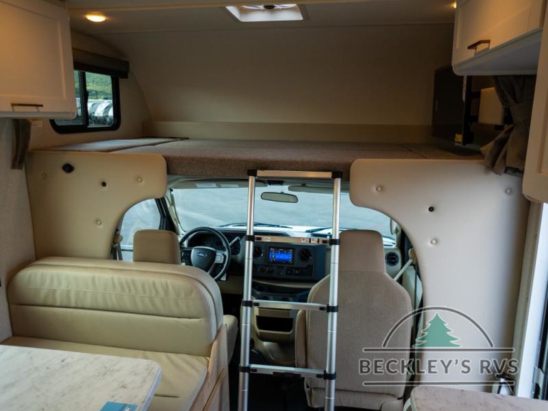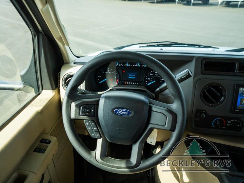 With any Four Winds ESpec Class C gas motorhome by Thor Motor Coach, you will find convenient amenities, a modern interior, and a reliable Ford E-Series chassis, with an optional Chevy chassis on select models to power your adventures. There is welded tubular aluminum roof and sidewall cage construction, a one-piece fiberglass front cap, and a one-piece domed roof membrane for added strength. Residential vinyl flooring will be easy to keep clean, and you'll love the sleek look of the Hampton Collection, two-toned cabinets. These motorhomes also include a 50 state 4.0 kW dual gas/LP generator and a 30-amp shoreline power cord to keep you going, along with a tankless water heater and 13,500 roof front A/C to ensure your comfort!
