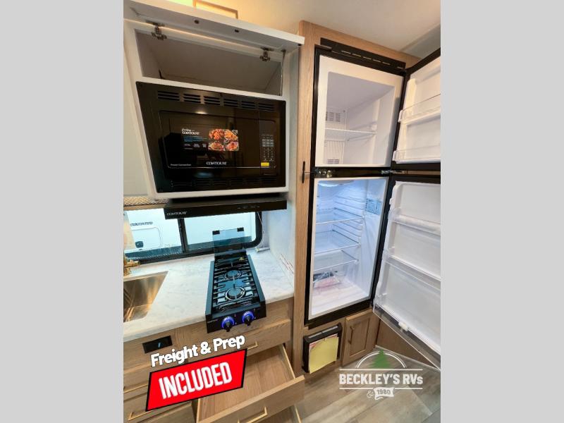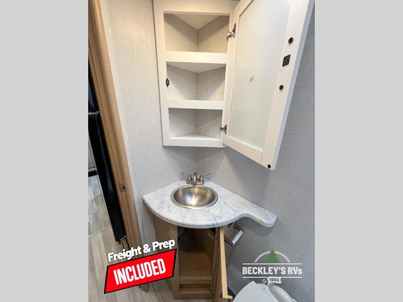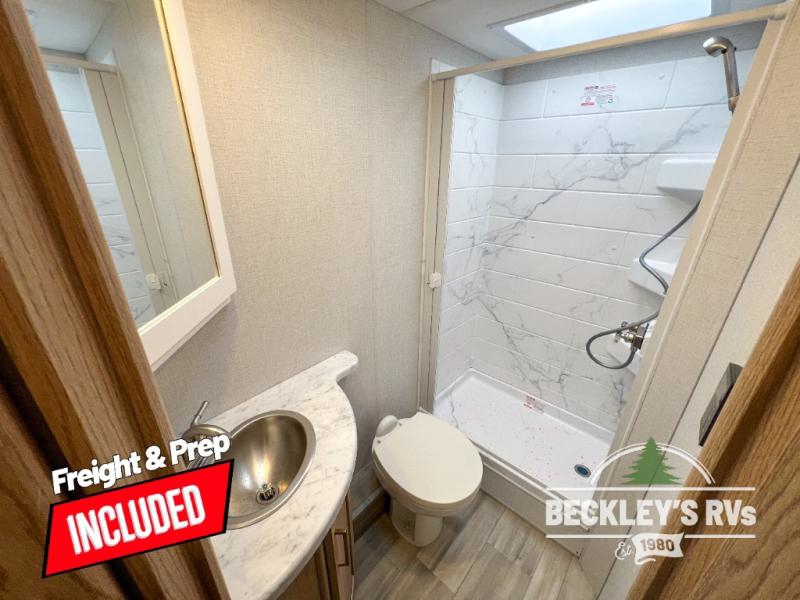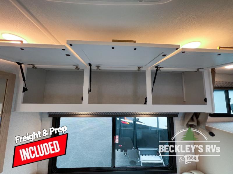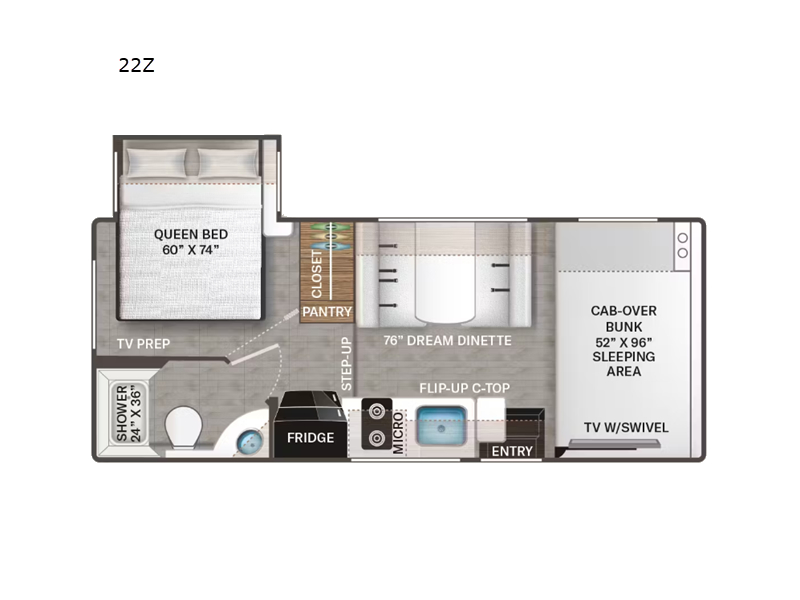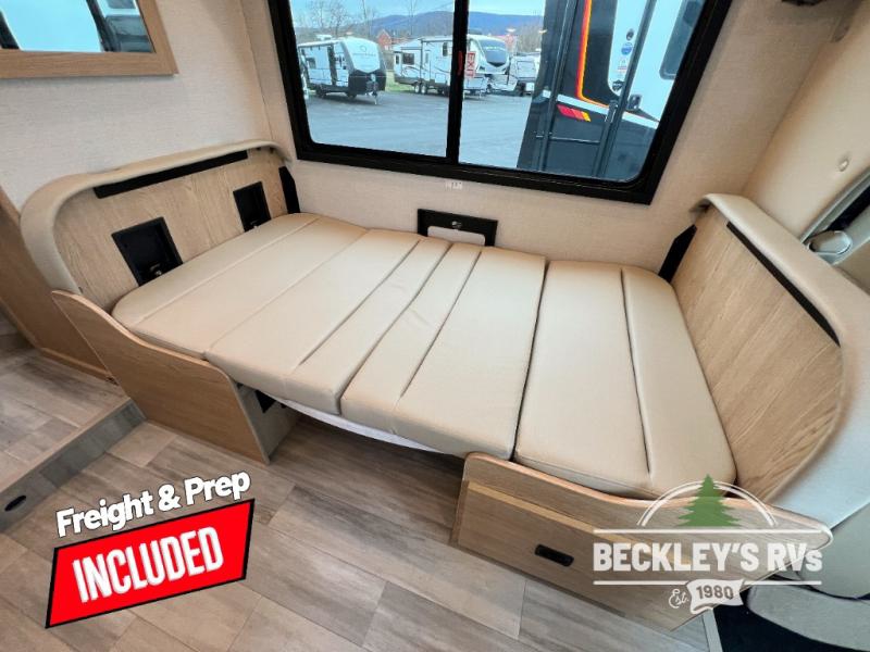 It won't be hard to find comfort in this coach for five! You can freshen up in the rear corner full bath once you've set up camp, then make lunch on the two burner gas cooktop or convection microwave with an air fryer. There is also a 12V refrigerator for cold items and a flip-up countertop for more space. Whether you dine at the Dream Dinette or take your plate outdoors under the 15' power awning, you're sure to have a great time in this motorhome. There is a semi-private bedroom with a 60" x 74" RV queen bed slide and bedroom TV prep if you want the option to watch movies in bed. And your guests can take the Dream Dinette and cab-over bunk at night!