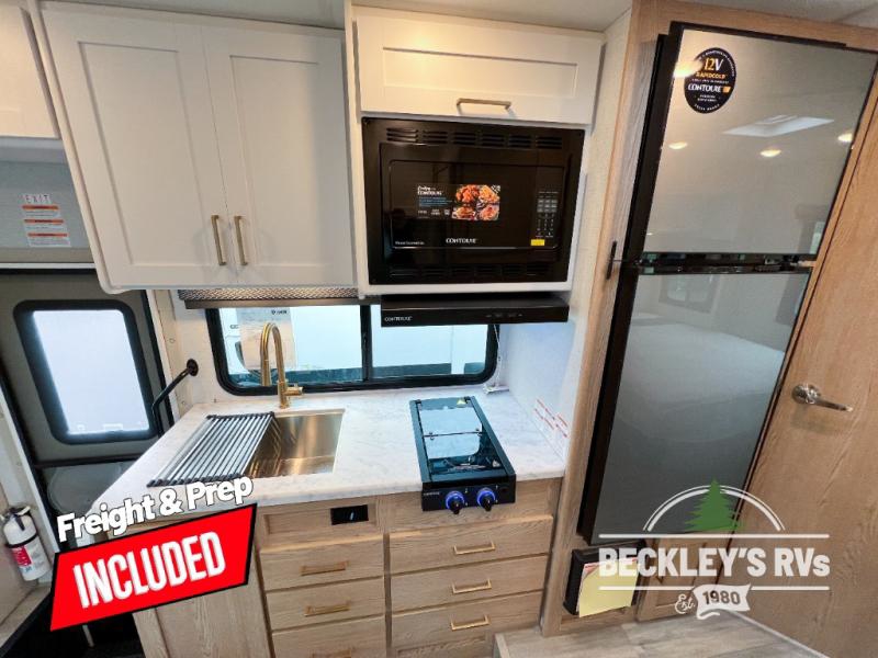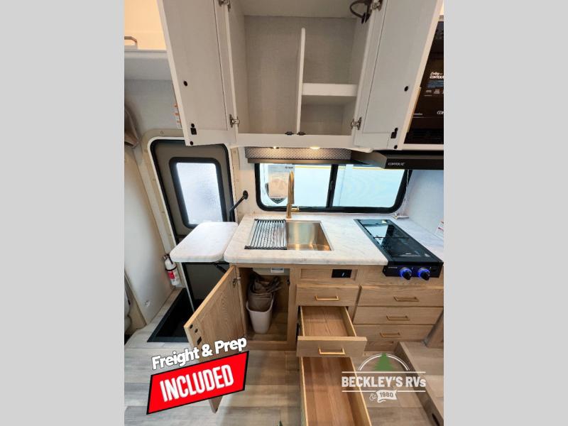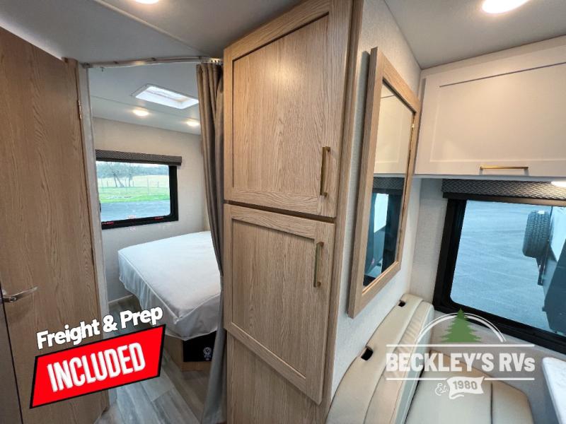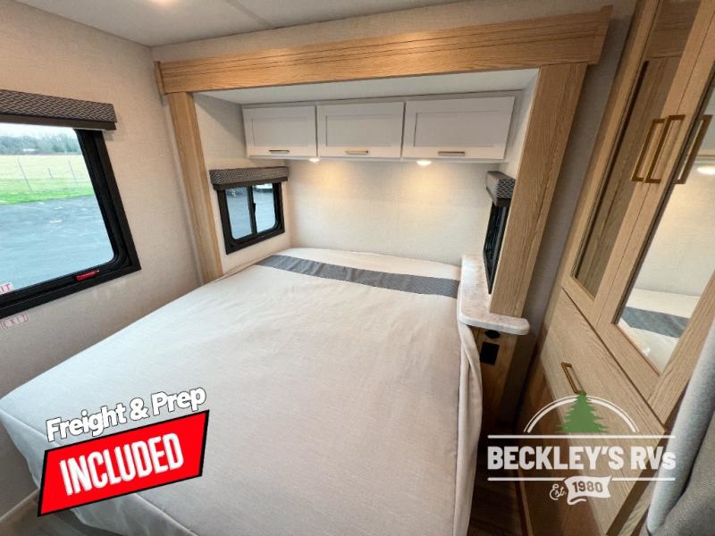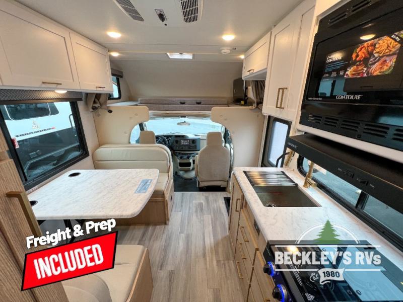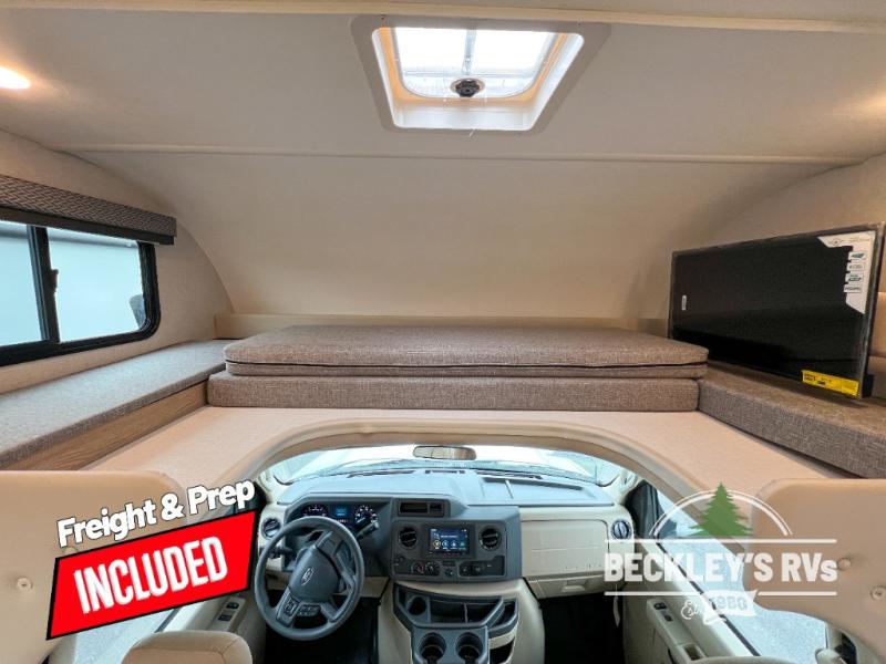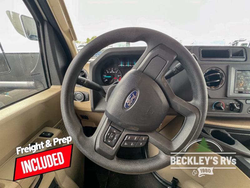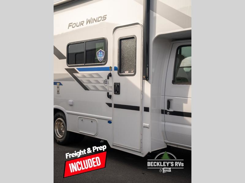 With any Four Winds ESpec Class C gas motorhome by Thor Motor Coach, you will find convenient amenities, a modern interior, and a reliable Ford E-Series chassis, with an optional Chevy chassis on select models to power your adventures. There is welded tubular aluminum roof and sidewall cage construction, a one-piece fiberglass front cap, and a one-piece domed roof membrane for added strength. Residential vinyl flooring will be easy to keep clean, and you'll love the sleek look of the Hampton Collection, two-toned cabinets. These motorhomes also include a 50 state 4.0 kW dual gas/LP generator and a 30-amp shoreline power cord to keep you going, along with a tankless water heater and 13,500 roof front A/C to ensure your comfort!