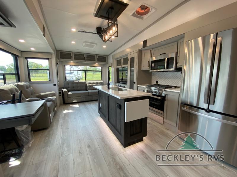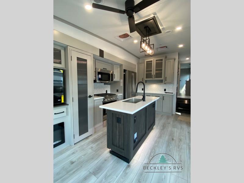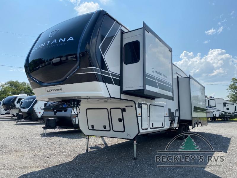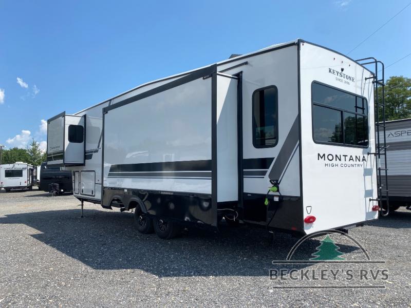 Live the high life with a Keystone Montana High Country fifth wheel! You'll have all the luxury you need with these units. They come with a MaxTurn™ front cap with KeyShield™ automotive-grade paint, a fully walkable roof with Alpha seamless TPO membrane system, and an insulated underbelly with forced hot air and electric tank heaters. The MORryde CRE3000 suspension with wet bolts helps provide a smooth tow, and the Ground Control® four-point electric auto-leveling with hitch memory will make set-up quite easy. The interior is elegantly appointed with the Thomas Payne Collection furniture, hardwood decorative slide-out fascia, Beauflor® vinyl throughout, accent crown molding, and premium solid surface kitchen countertops.