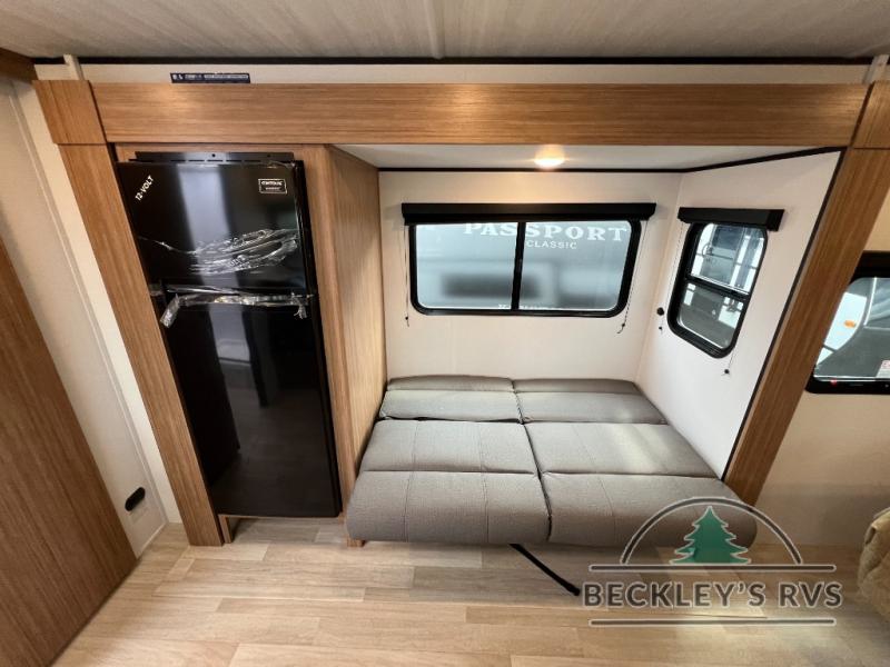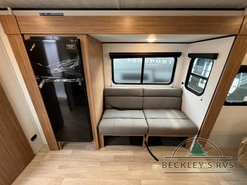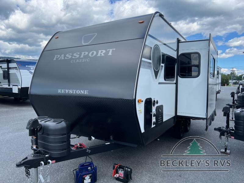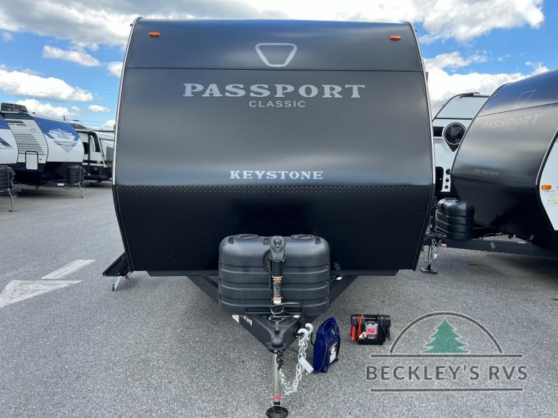 Comfort is found all throughout each one of these Keystone RV Passport Classic travel trailers! They are built with a one-piece polypropylene underbelly to protect your unit's vitals, and a seamless, laminated and gel-coated filon exterior that is sure to turn heads at the campsite. A fully walkable roof makes it easy to access when needed, and the leaf spring straight axles help provide smooth towing. The residential durable Beauflor vinyl flooring throughout and the seamless kitchen countertops will be easy to clean, and you can stay cool on a hot summer day with the A/C unit. Come find the Passport Classic that fits your needs best!