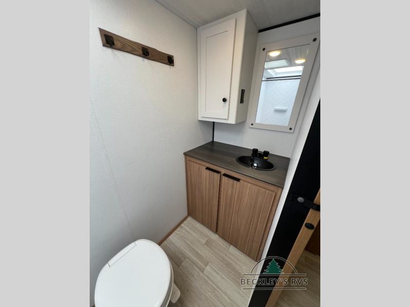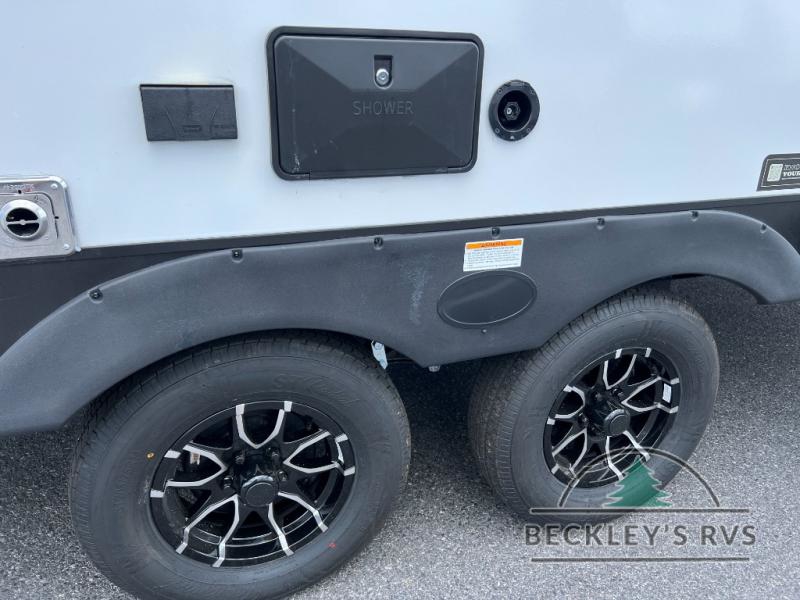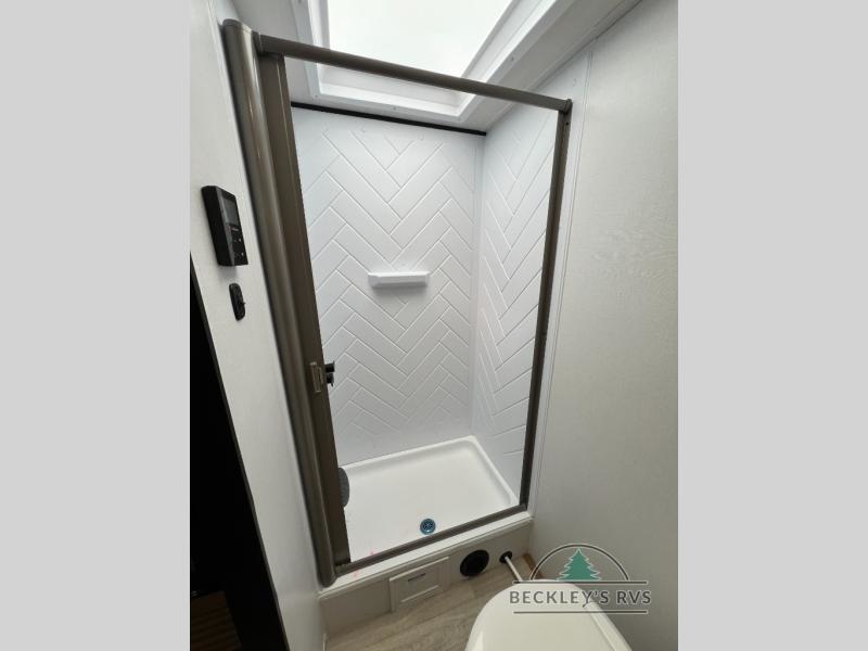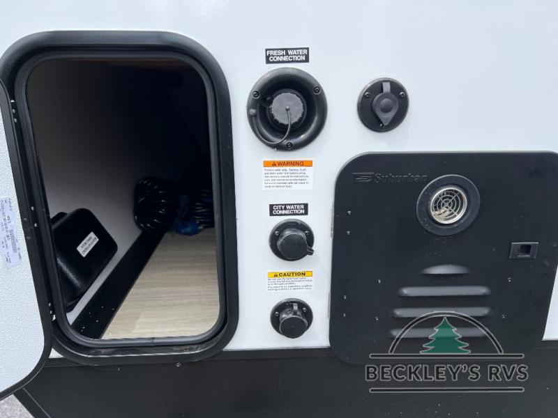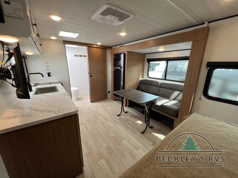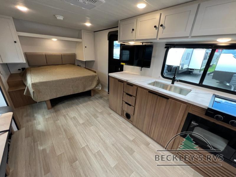 This rear bath, dual axle travel trailer will be perfect for trips to the campground. When you arrive at your site, you can unload the pass-through storage and put out the 14' awning for some shade. The two burner cooktop and microwave oven inside will let you make lunch, and there is a jack knife sofa slide where you can relax on. When it's time to call it a night, you can freshen up in the full rear bath before crashing on the front queen bed!
