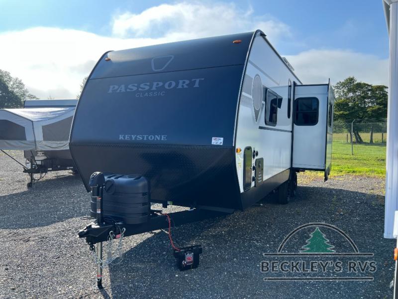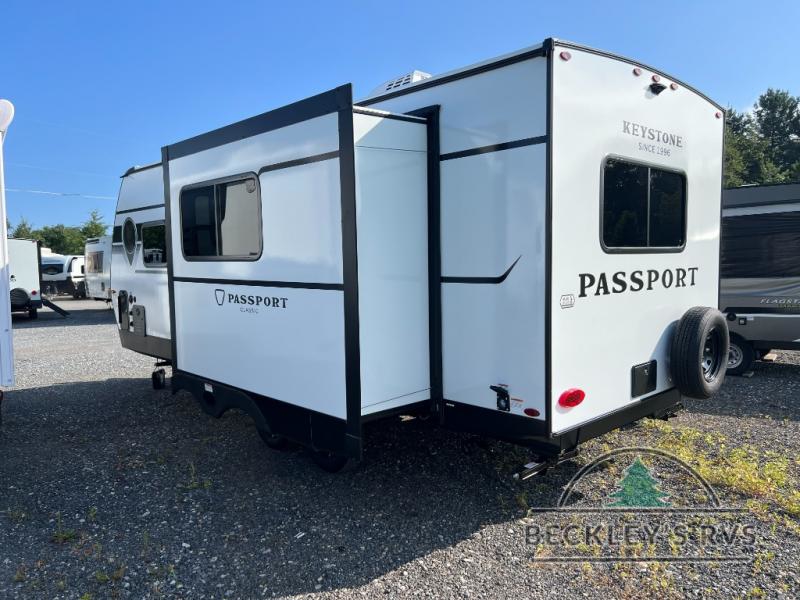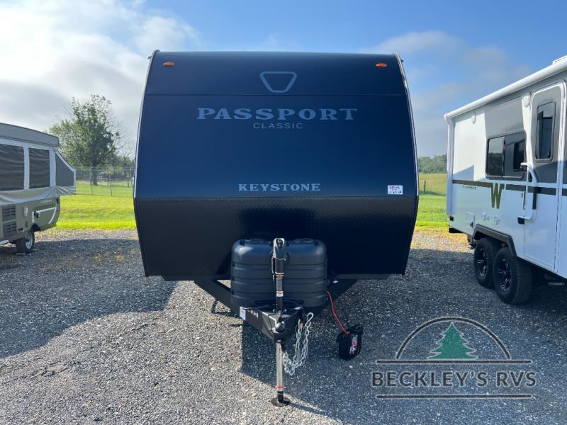 Comfort is found all throughout each one of these Keystone RV Passport Classic travel trailers! They are built with a one-piece polypropylene underbelly to protect your unit's vitals, and a seamless, laminated and gel-coated filon exterior that is sure to turn heads at the campsite. A fully walkable roof makes it easy to access when needed, and the leaf spring straight axles help provide smooth towing. The residential durable Beauflor vinyl flooring throughout and the seamless kitchen countertops will be easy to clean, and you can stay cool on a hot summer day with the A/C unit. Come find the Passport Classic that fits your needs best!