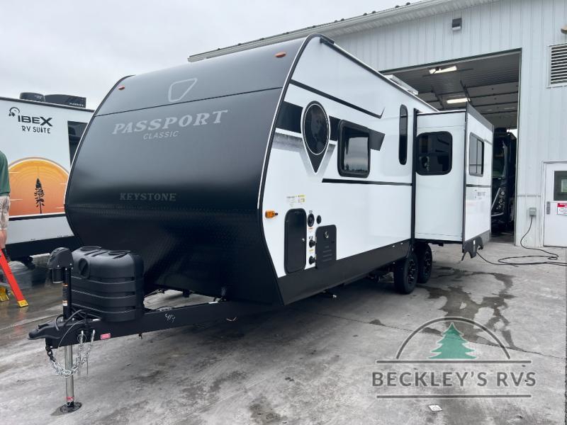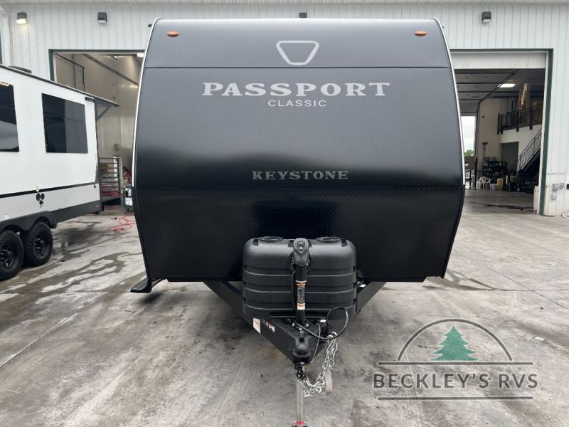 Comfort is found all throughout each one of these Keystone RV Passport Classic travel trailers! They are built with a one-piece polypropylene underbelly to protect your unit's vitals, and a seamless, laminated and gel-coated filon exterior that is sure to turn heads at the campsite. A fully walkable roof makes it easy to access when needed, and the leaf spring straight axles help provide smooth towing. The residential durable Beauflor vinyl flooring throughout and the seamless kitchen countertops will be easy to clean, and you can stay cool on a hot summer day with the A/C unit. Come find the Passport Classic that fits your needs best!