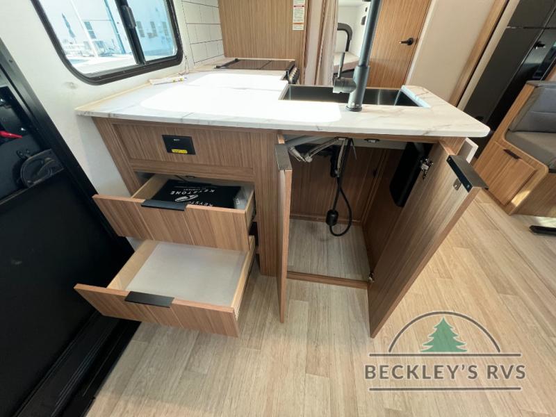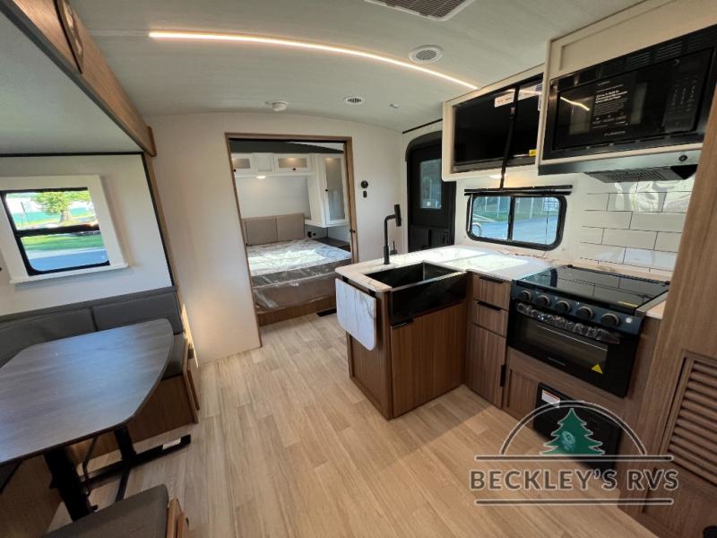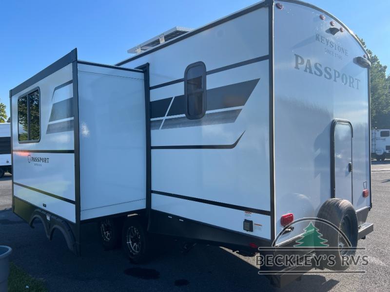 With any Keystone Passport Super Lite travel trailer you will enjoy lightweight towing and lots of interior comforts! The power tongue jack lets you hitch up at the drop of a hat, and the Dexter torsion axle rubber ride suspension will make towing easier than ever. You will appreciate having power stabilizer jacks for quick setup and an exterior convenience center to monitor tank levels. These trailers are constructed with a seamless, laminated and gel-coated filon exterior, 80% tinted safety glass windows, and a one-piece polypropylene underbelly. The interior will have you feeling right at home with residential durable Beauflor vinyl flooring, deluxe night shades, and seamless kitchen countertops to name a few comforts.