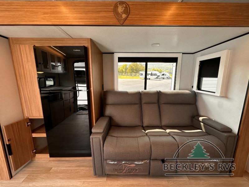 Are you looking to upgrade from a tent to a travel trailer? This dual axle unit may be the one! Since there are dual entry doors, you can enter in through the front master bedroom with a queen bed or the rear kitchen with ample counter space. Your crew can relax on the tri-fold sofa, play a game at the do-more dinette, or visit outdoors under the 19' awning. There is also an outdoor kitchen here for a sunrise breakfast! The walk-thru bath is easily accessible for everyone to use, and you'll find plenty of storage space throughout, including a large pantry, overhead compartments, and dual bedroom wardrobes and nightstands.