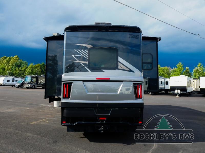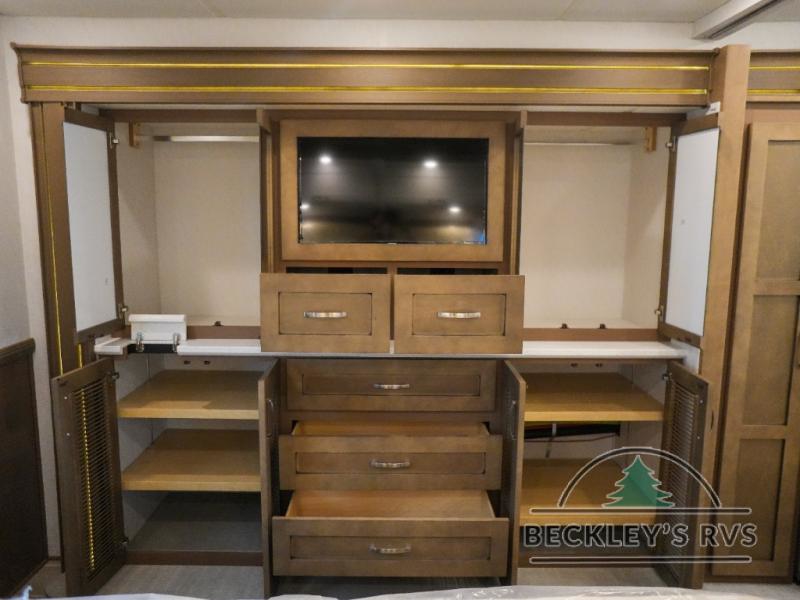 You can see the difference on these Newmar Grand Star Super C diesel motorhomes! Starting with the three striking color options in a full-paint Masterpiece Finish and three stylish interior decor options with elegant cabinet finishes. They are easy to maneuver with a Freightliner S2RV chassis, have a large 12,000 lb. towing capacity, and 360 HP to power you to your favorite destinations. An 8kw generator and lithium batteries power these units. Enjoy at-home comforts like a king bed, an exterior entertainment center with sound bar, and a Truma Comfort Plus continuous-flow water heater. There is also a Carefree Travel-R power side awning with lighting to light up the good times day or night. Come find your favorite model today!