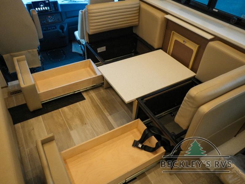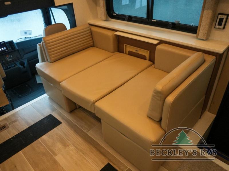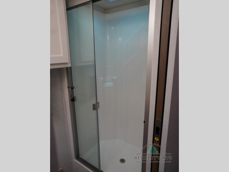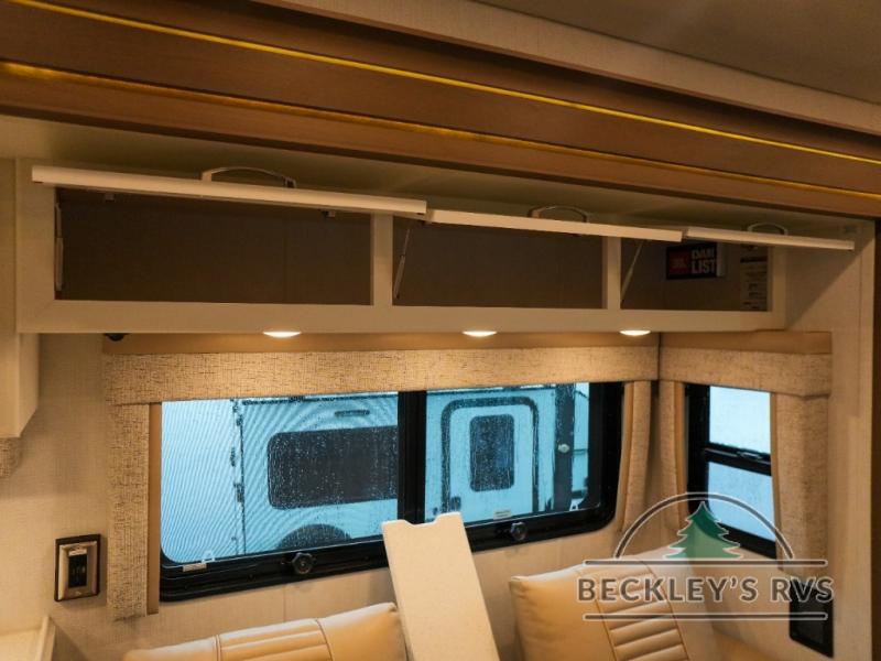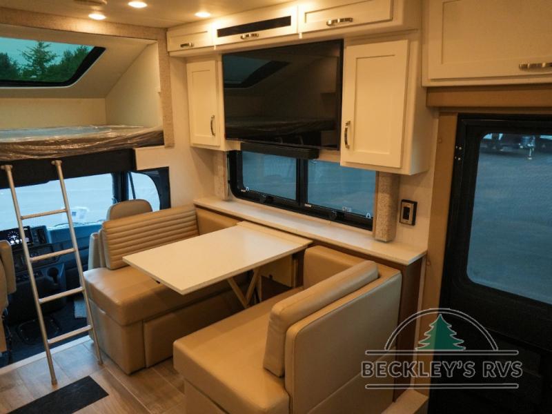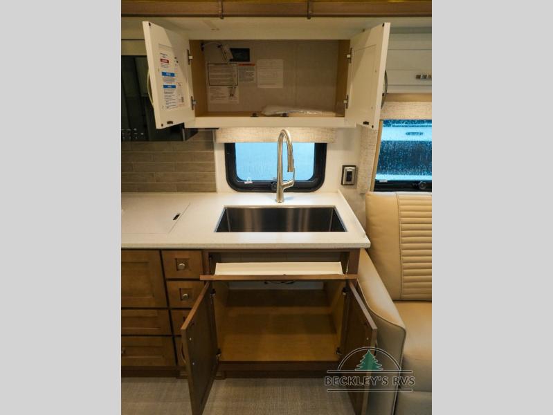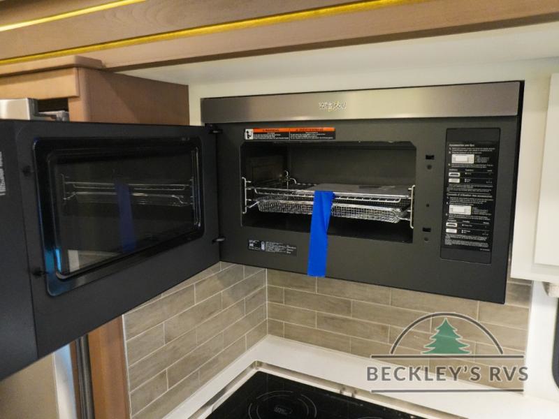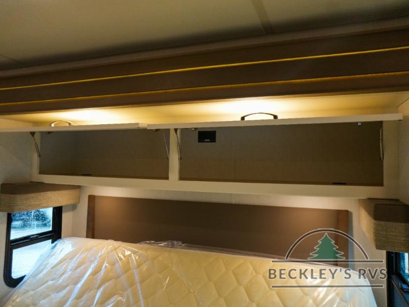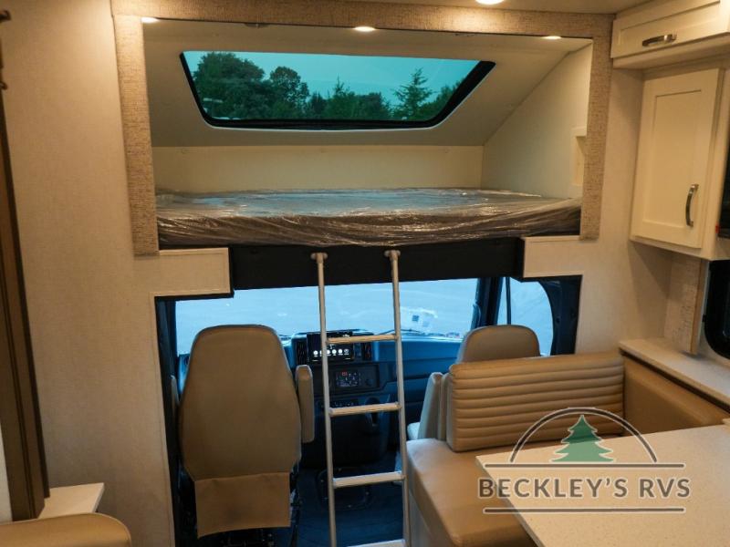 This motorhome is perfect for first time RVers who are looking for a smaller floorplan! The rear private bedroom has a retracting king bed slide across from shirt wardrobes and dresser with an optional washer and dryer below it. If you need more sleeping space then you can utilize the bunk over cab, transform the booth dinette, or lay on the 68" sofa comfort lounge. The chef can prepare their best home cooked meals with the microwave convection oven with air fryer and 18 cu. ft. residential refrigerator, plus you could add the optional induction cooktop or optional dishwasher for easy cleanup. After a long day of traveling, you can easily freshen up in the full bathroom with the 40" x 30" shower and store any necessary toiletries in the overhead cabinets!