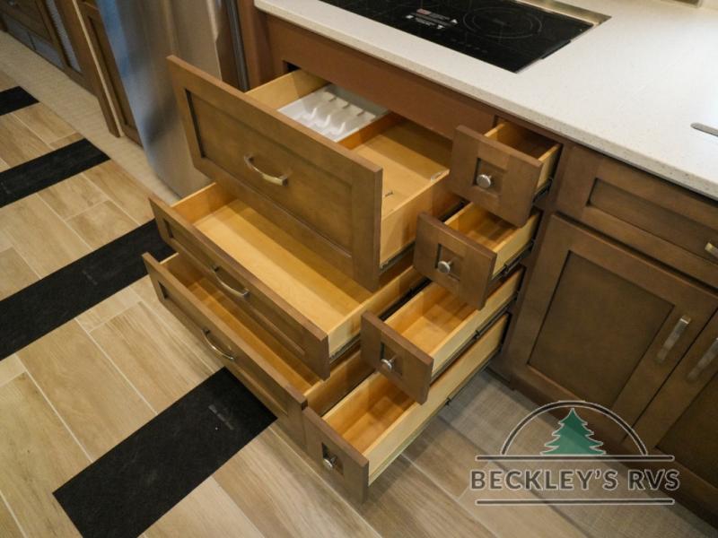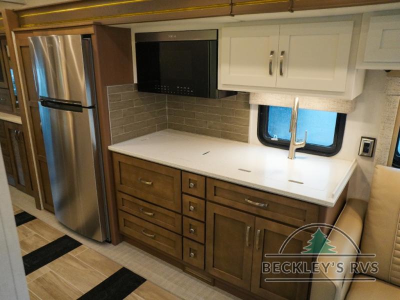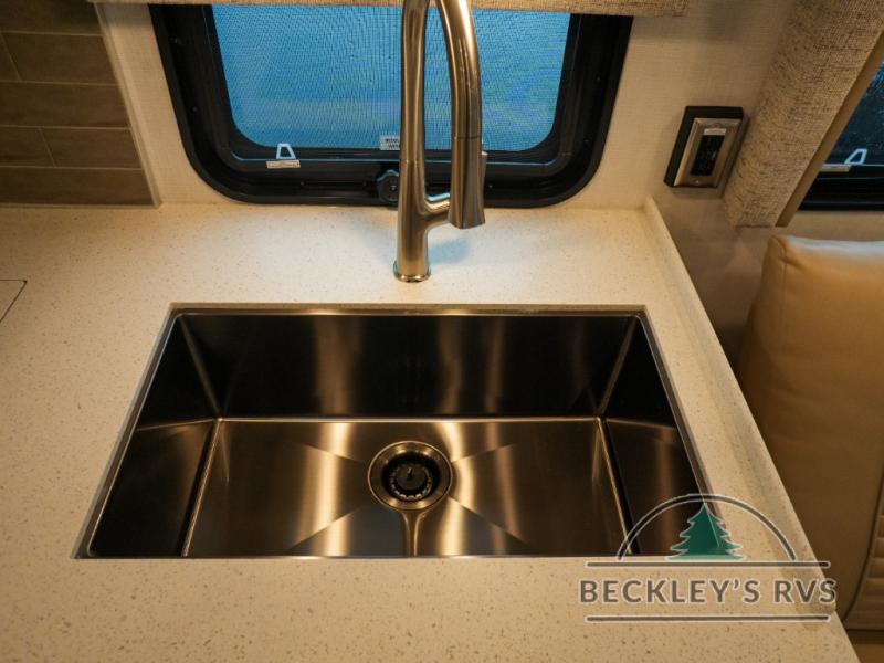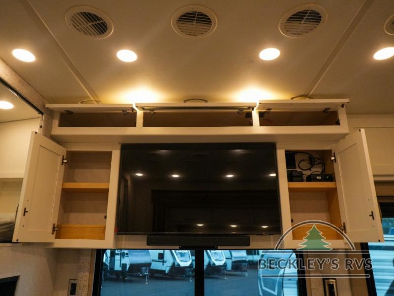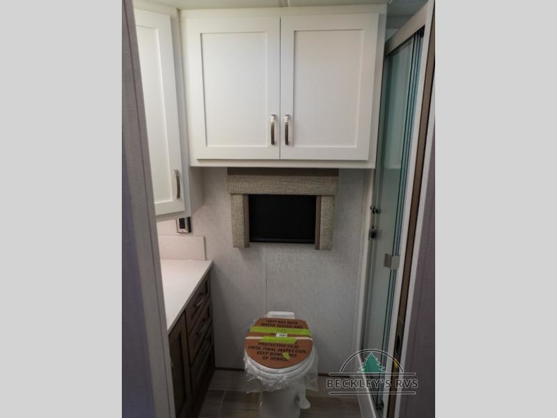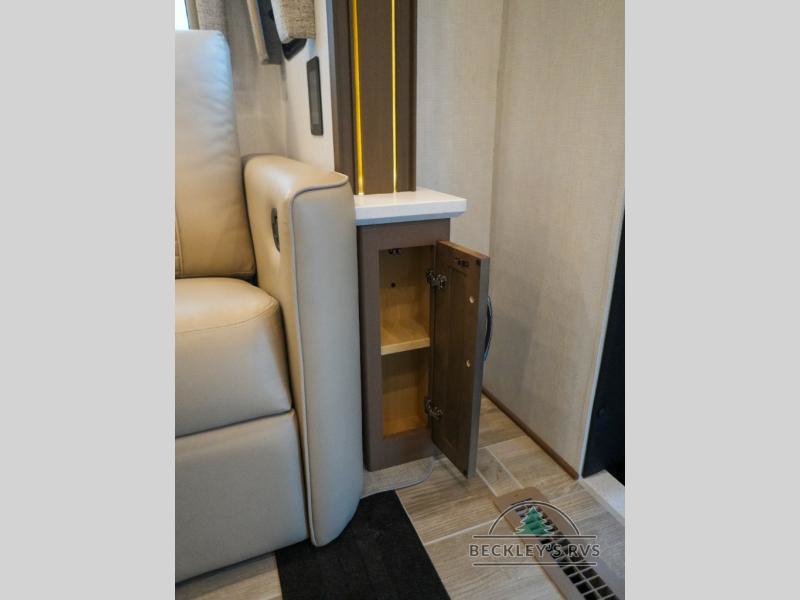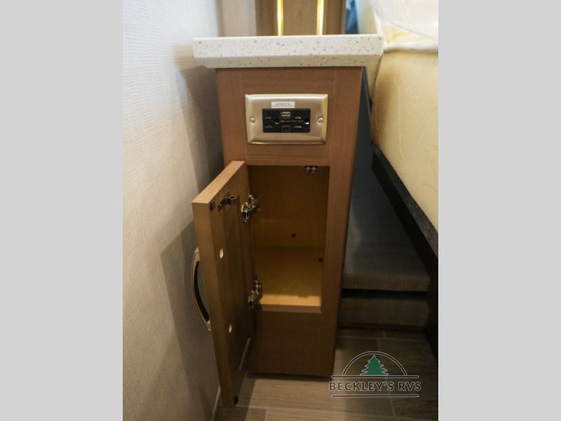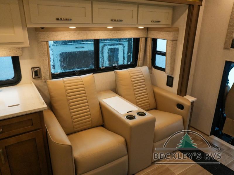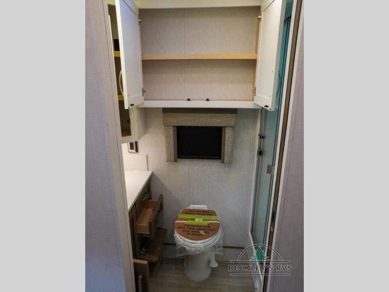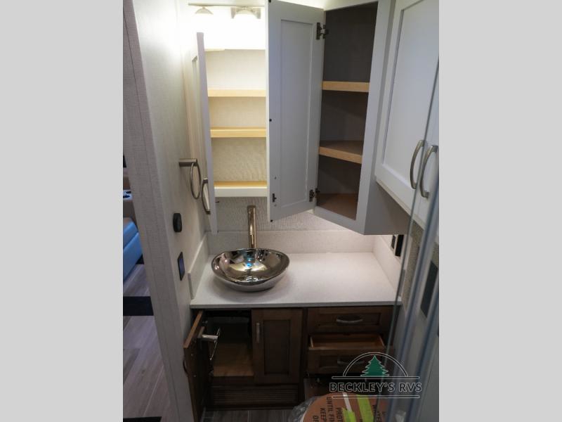 This motorhome is perfect for first time RVers who are looking for a smaller floorplan! The rear private bedroom has a retracting king bed slide across from shirt wardrobes and dresser with an optional washer and dryer below it. If you need more sleeping space then you can utilize the bunk over cab, transform the booth dinette, or lay on the 68" sofa comfort lounge. The chef can prepare their best home cooked meals with the microwave convection oven with air fryer and 18 cu. ft. residential refrigerator, plus you could add the optional induction cooktop or optional dishwasher for easy cleanup. After a long day of traveling, you can easily freshen up in the full bathroom with the 40" x 30" shower and store any necessary toiletries in the overhead cabinets!