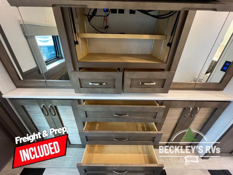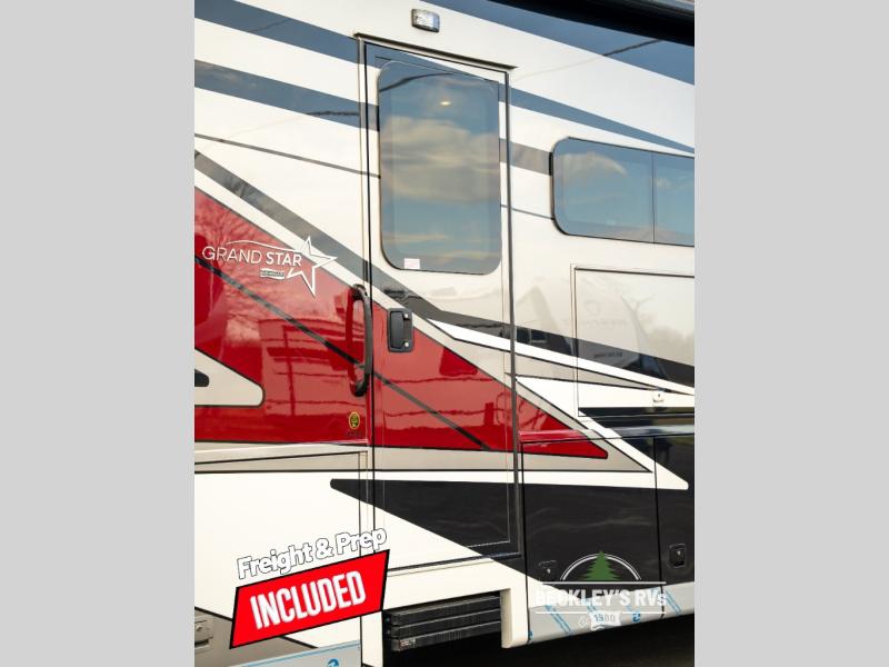 You can see the difference on these Newmar Grand Star Super C diesel motorhomes! Starting with the three striking color options in a full-paint Masterpiece Finish and three stylish interior decor options with elegant cabinet finishes. They are easy to maneuver with a Freightliner S2RV chassis, have a large 12,000 lb. towing capacity, and 360 HP to power you to your favorite destinations. An 8kw generator and lithium batteries power these units. Enjoy at-home comforts like a king bed, an exterior entertainment center with sound bar, and a Truma Comfort Plus continuous-flow water heater. There is also a Carefree Travel-R power side awning with lighting to light up the good times day or night. Come find your favorite model today!
