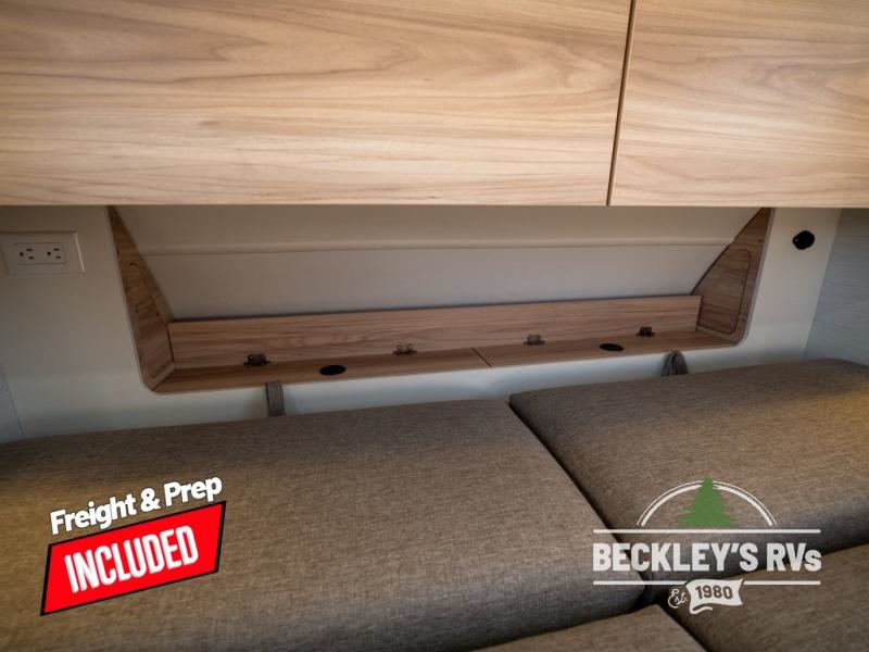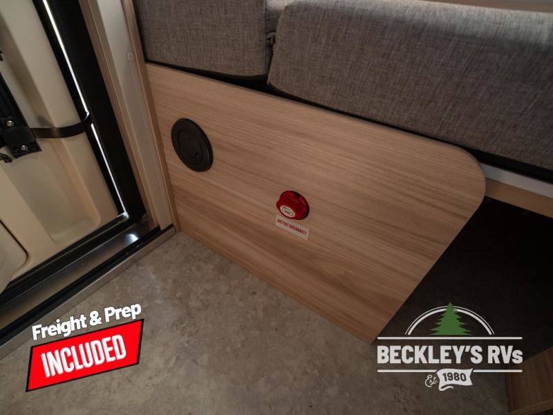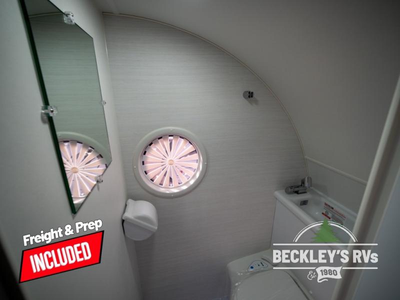 With any TAB 320 teardrop trailer by nuCamp RV, the interior offers premium soft-close cabinetry, a front window, plus a wet bath with a cassette toilet and a molded sink. They are also built with composite flooring and a molded underbelly shield for protection against rock and debris during your journeys. The iconic teardrop design offers an easy-to-tow unit with amenities found in much bigger trailers. Some other highlights include the Alde heating/hot water system, the central air conditioner, 180-watt solar panel, and the Nautilus water system with an external shower.