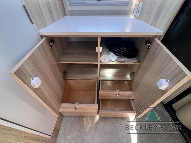 The TAB 360 CS teardrop trailer by nuCamp RV lets you take comfort with you wherever you roam! Since the kitchen has been moved outdoors with a hatch door, you'll enjoy a more spacious interior, while still experiencing an easy tow. Outside, there are aggressive off-road tires, a Nautilus water system with an external shower, plus a diamond plate storage tub. You'll love the look of the premium soft-close cabinetry, and the composite flooring will be easy to keep clean. There is also an Alde heating/hot water system, dual stargazer windows, and a power roof fan to name a few more conveniences. The Convenience Package includes a 190-watt solar panel and an external solar port, plus a 100Ah 12V lithium battery, an intelligent battery detection converter and a Bluetooth Smartshunt battery monitor. The optional Battle Born Lithium Battery Upgrade can be added that includes a 270Ah 12V lithium battery bank with internal heat and a 3,000-watt MultiPlus inverter/charger for even more power options!