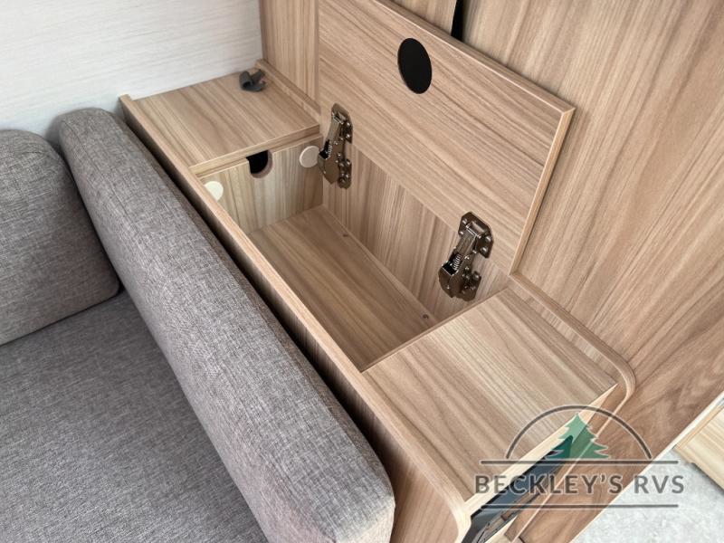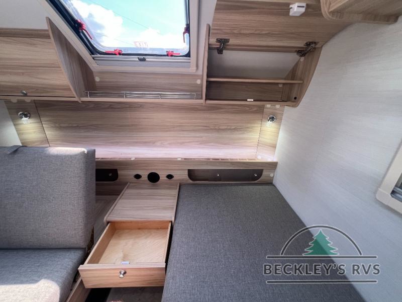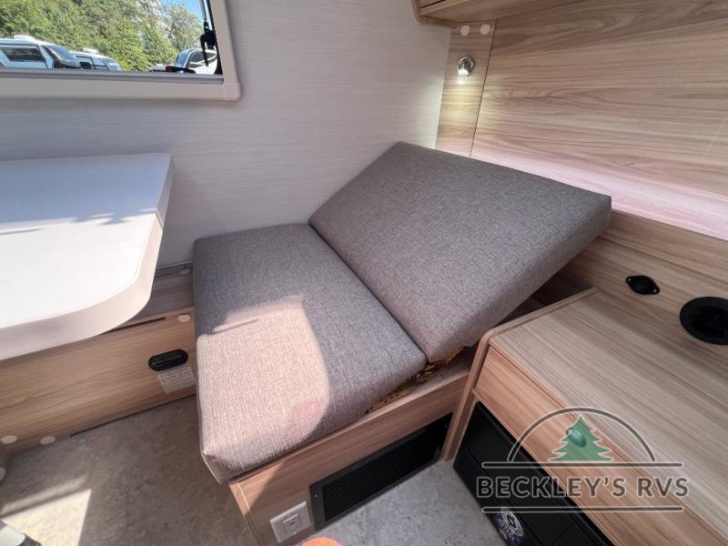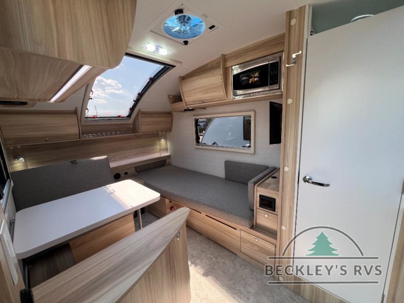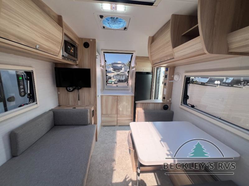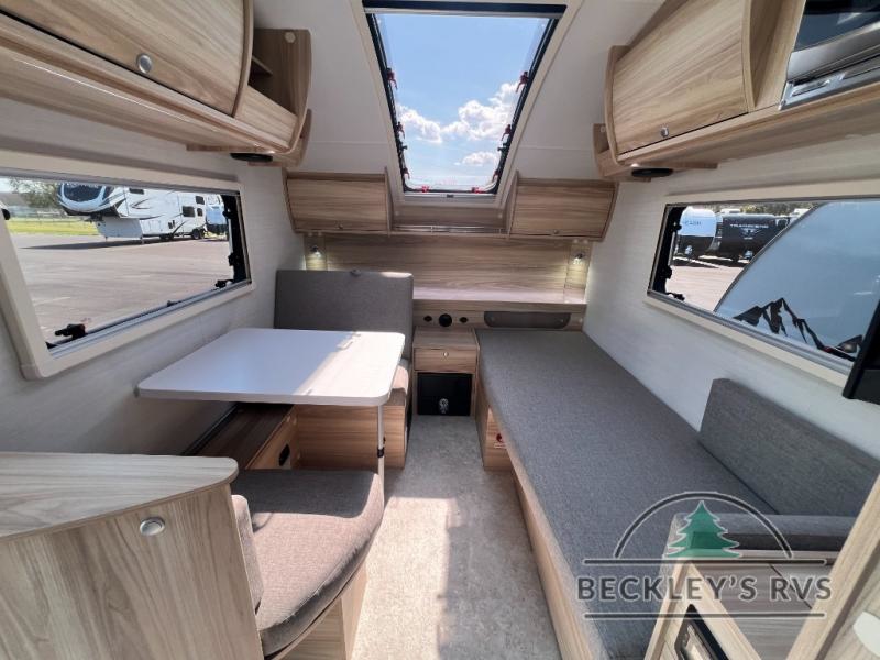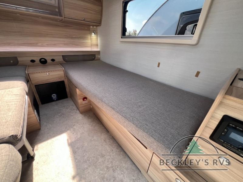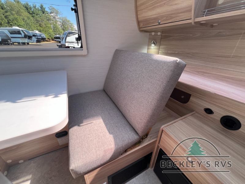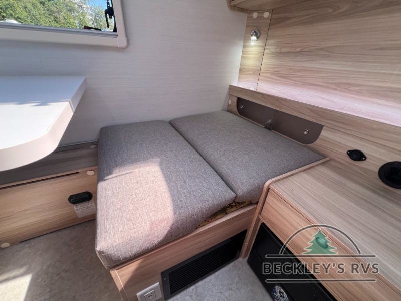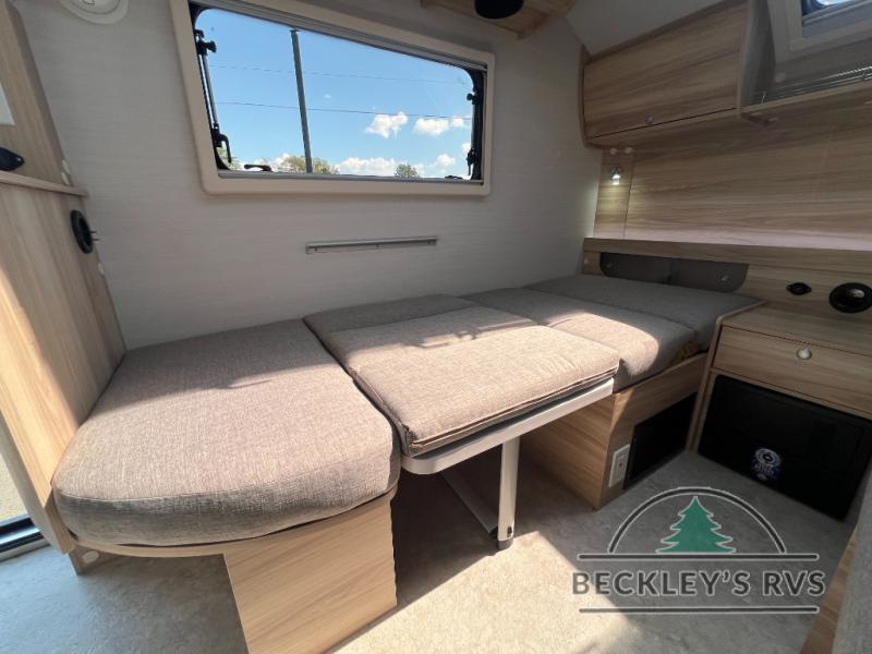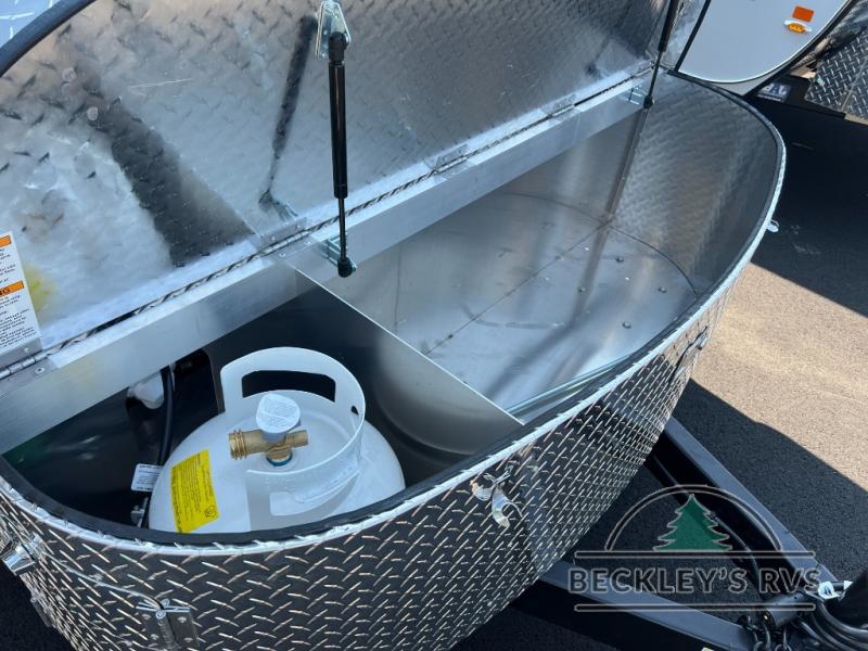 You're going to love camping in this teardrop clamshell trailer! Once you arrive at the campground, you can make lunch on the exterior rear hatch kitchen. There is a two-burner glass-top stove and a 30L 12-volt cooler here to quickly make lunch and grab a cold drink. The interior 5 cu. ft. 12-volt compressor refrigerator will provide more food storage, and an optional microwave can be added inside for the option to heat up quick meals indoors. You're sure to get a great night's rest on the twin-size bed, and the booth dinette can convert to a second twin-size bed so you can sleep two comfortably. The optional Black Canyon Upgrade can be added that includes a solar upgrade to dual 190W panels, holding tank heaters and underglow lights.