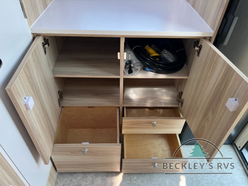 The TAB 360 CS teardrop trailer by nuCamp RV lets you take comfort with you wherever you roam! Since the kitchen has been moved outdoors with a hatch door, you'll enjoy a more spacious interior, while still experiencing an easy tow. Outside, there are aggressive off-road tires, a Nautilus water system with an external shower, plus a diamond plate storage tub. You'll love the look of the premium soft-close cabinetry, and the composite flooring will be easy to keep clean. There is also an Alde heating/hot water system, dual stargazer windows, and a power roof fan to name a few more conveniences. The Convenience Package includes a 190-watt solar panel and an external solar port, plus a 100Ah 12V lithium battery, an intelligent battery detection converter and a Bluetooth Smartshunt battery monitor. The optional Battle Born Lithium Battery Upgrade can be added that includes a 270Ah 12V lithium battery bank with internal heat and a 3,000-watt MultiPlus inverter/charger for even more power options!
