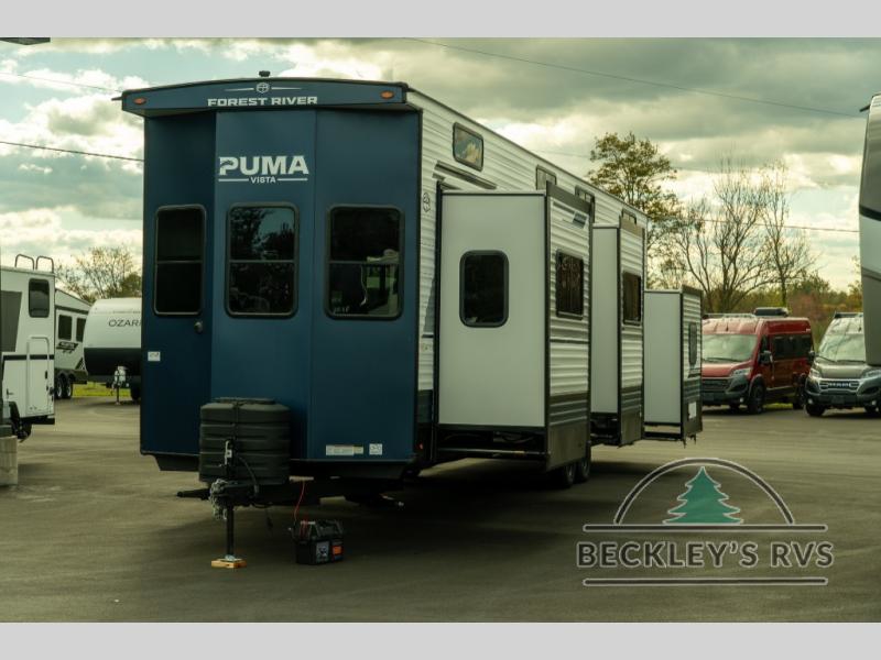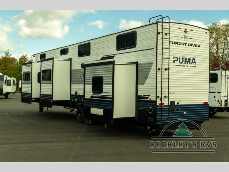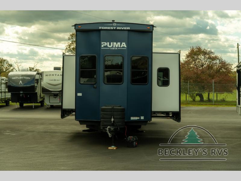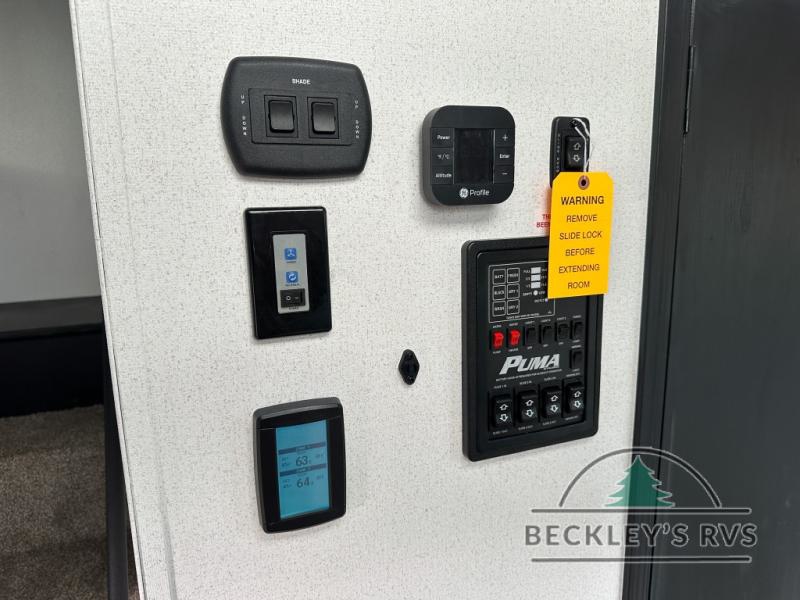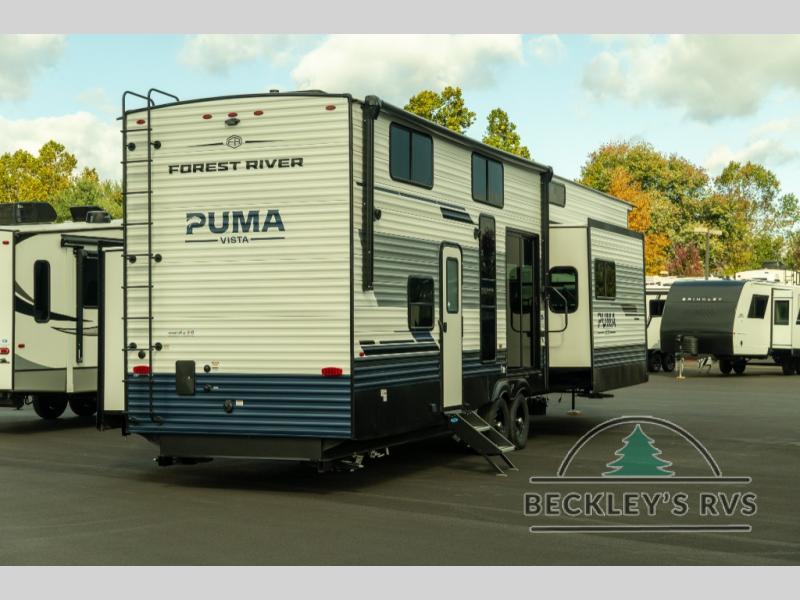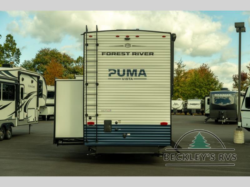 Each Puma Destination trailer by Palomino is designed to give you unforgettable getaways to the destination of your choice! The required Value Shopper Loft Package includes Congoleum designer linoleum, night roller shades, LED lighting, and a 24" stainless steel oven with a four burner stove so you can make meals just like you would at home. The tankless water heater is another feature you won't want to camp without, and there is WiFi prep, solar prep, plus optional washer and dryer prep for the option to further customize your trailer. An outside shower is included with the required Loft Package, along with two exterior speakers, solid surface countertops, four stabilizer jacks, and more!