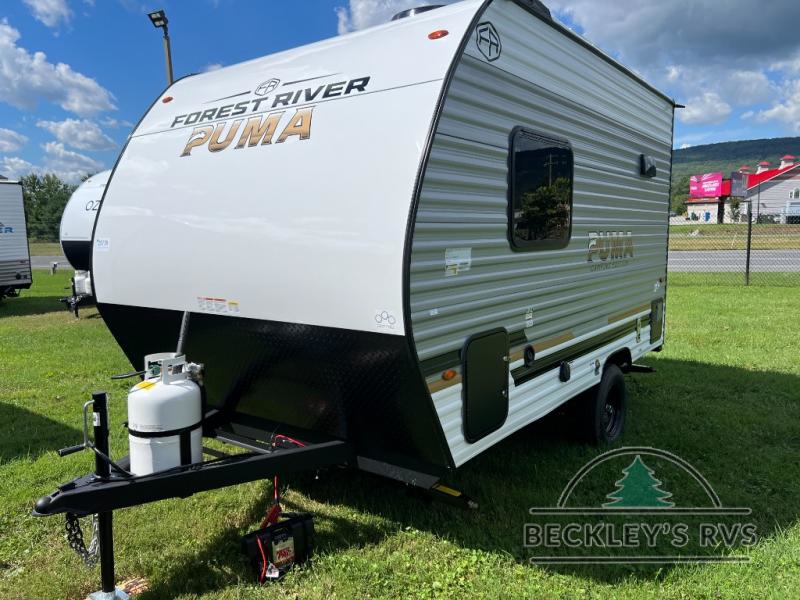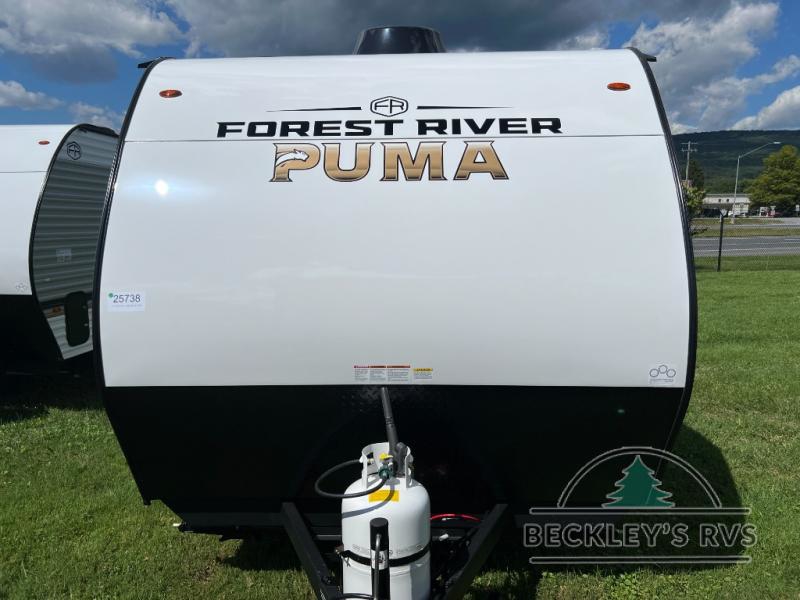 The Puma Camping Edition by Palomino offer an affordable travel trailer for rookie campers or seasoned RVers! They are built with 5/8" tongue and groove plywood flooring and a front diamond plate for added protection. There are also exterior clamp style door latches, back up camera prep, and 20 lb. LP bottles. Head inside to find Thermofoil countertops with a smooth drop edge, bedroom USB ports and outlets, and a GE appliance and kitchen package.