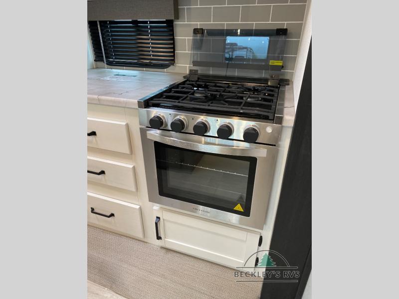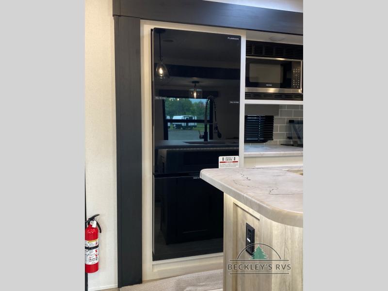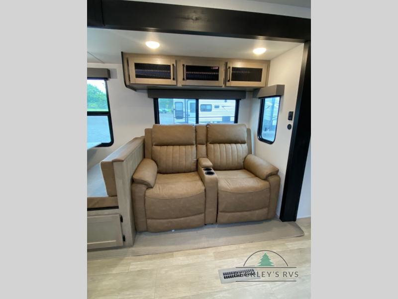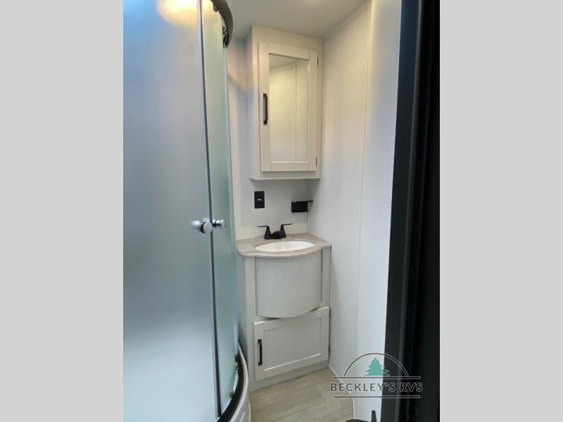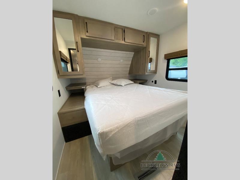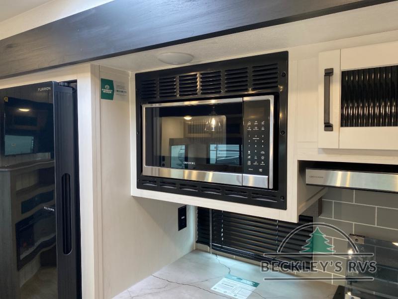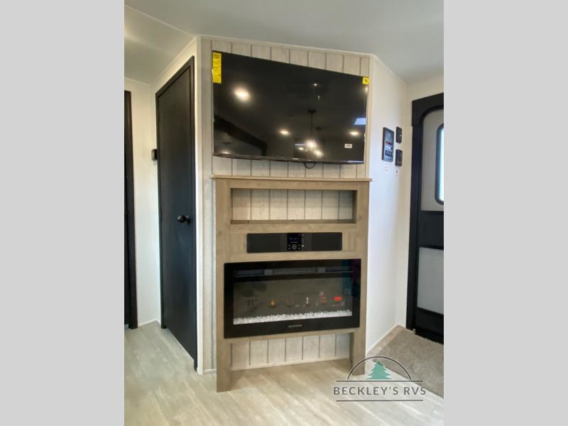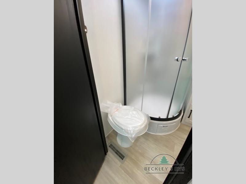 With two full bathrooms, it's a clean decision to take this travel trailer on your next family vacation! Start each morning feeling recharged after sleeping on the queen bed in the front private bedroom or in the rear private bunkhouse with an angled top bunk above a 32" x 69" double bunk bed and a 32" x 69" bunk above a 68" sofa slide. The bunkhouse also has a full bathroom with a 24" x 40" tub and one of the dual entry doors to the unit. You can relax on the sofa while enjoying the entertainment center and eat your meals prepared with the kitchen island at the booth dinette.
