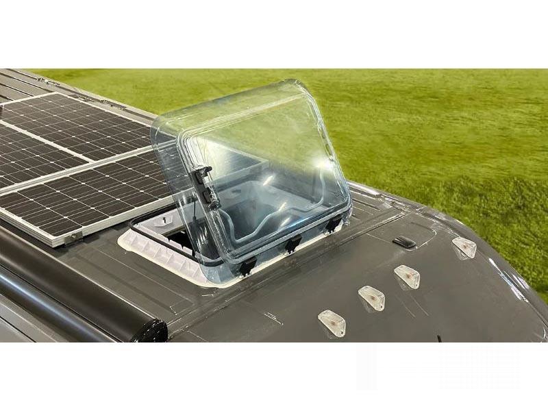 The Roadtrek Westfalia Wave Skylight is ready for any adventure! With room to sleep up to 4 people, you are all set for camping fun. Tons of storage space includes 17 different cabinets and drawers, with room for larger items like a bike or paddleboard. The kitchen has everything you might need, including a microwave, 2-burner cooktop, and 3.2 cubic foot refrigerator. The wet bath with sink, shower, and cassette toilet means you won't have to rely on campground facilities - you are truly independent in this one! The rear sleeping area can be configured with a king or queen size mattreess, while the front combination bench/bed provides additional sleeping area. Dine at the adjustable swivel table with its bench/bed which can be converted for additional sleep space. An oversized 17" x 25" skylight provides the perfect view.