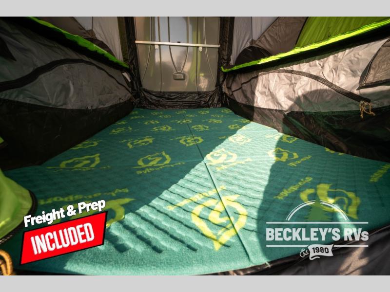 This rugged and off-road camper is perfect for all your outdoor adventures. You are sure to love the easy to tow design and added durability thanks to the 6000 series aluminum custom extrusions. The dry weight for this model is 1,200 lbs. and the overall carrying capacity is 950 lbs., meaning you have the option to bring along more camp gear. The tent awning and two Cloud Layer mattresses will add to your comfort each day, and you'll appreciate the table/bench seat panel so you can eat inside on rainy days!