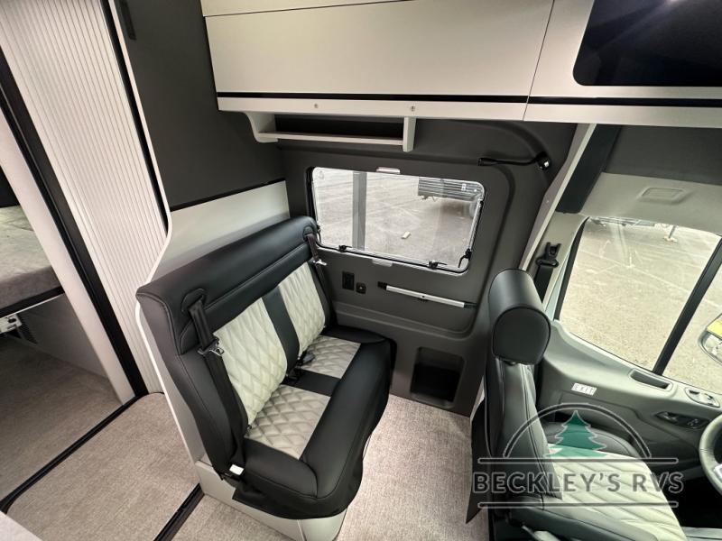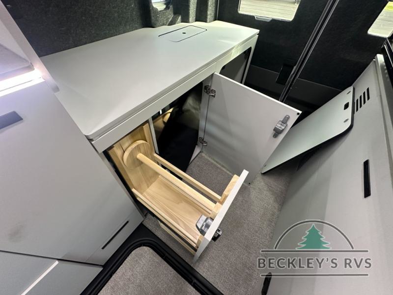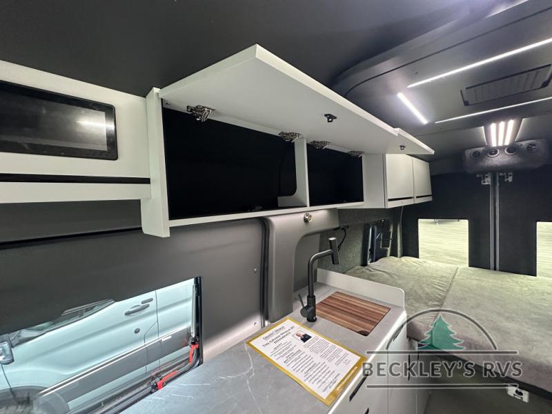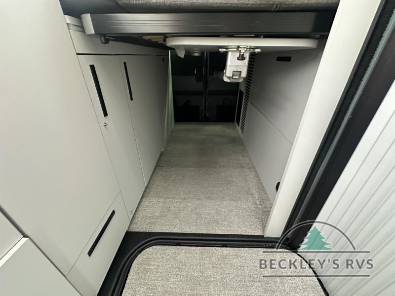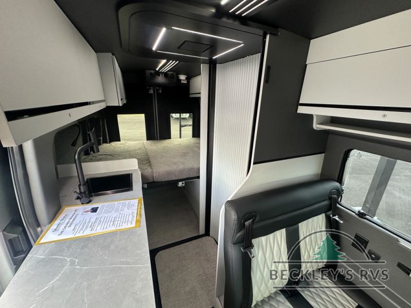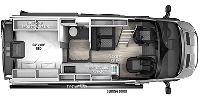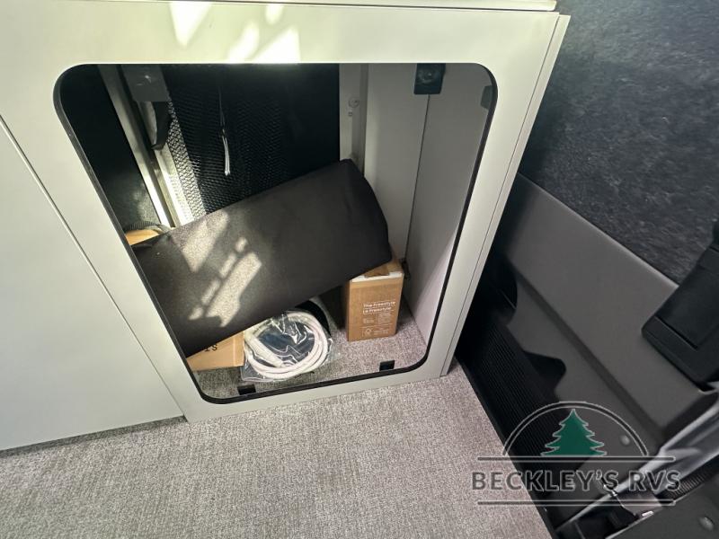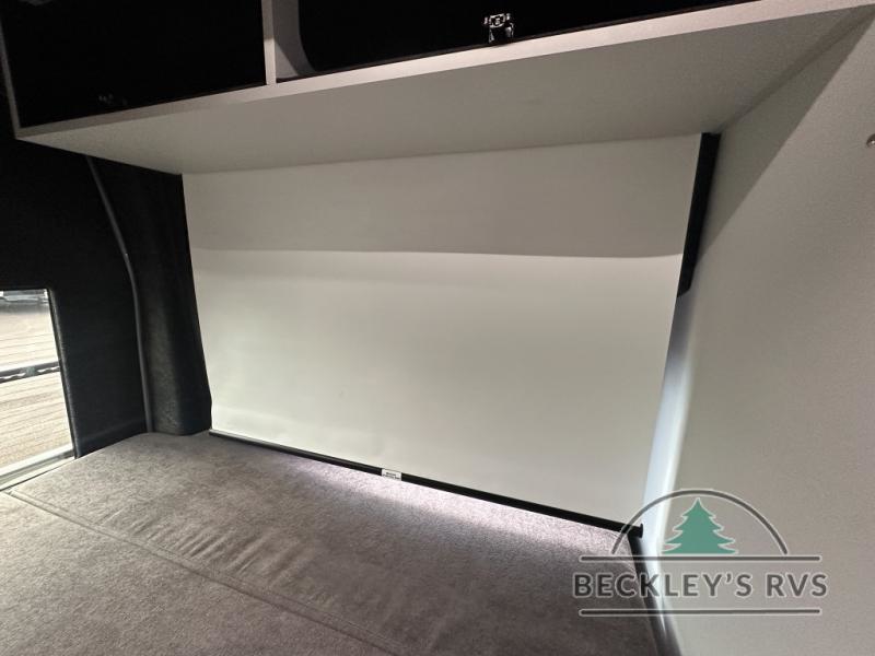 This luxury motorhome for the modern adventurer will be your favorite! The flip-up bed provides a comfortable sleeping area, perfect for restful nights on the road. The entertainment spot is provided in the motorized projector screen, which is ideal for movie nights, sporting events, or presentations, making it a great way to unwind or entertain friends and family. The bathroom provides a private and convenient space for personal needs, and the kitchen features an undermount cooktop, perfect for preparing your favorite meals, 3.2 cu. ft. refrigerator for keeping perishables fresh, and a sink for easy cleanup. The exterior awning provides shade and protection from the elements, while the sliding door offers easy access and added convenience.