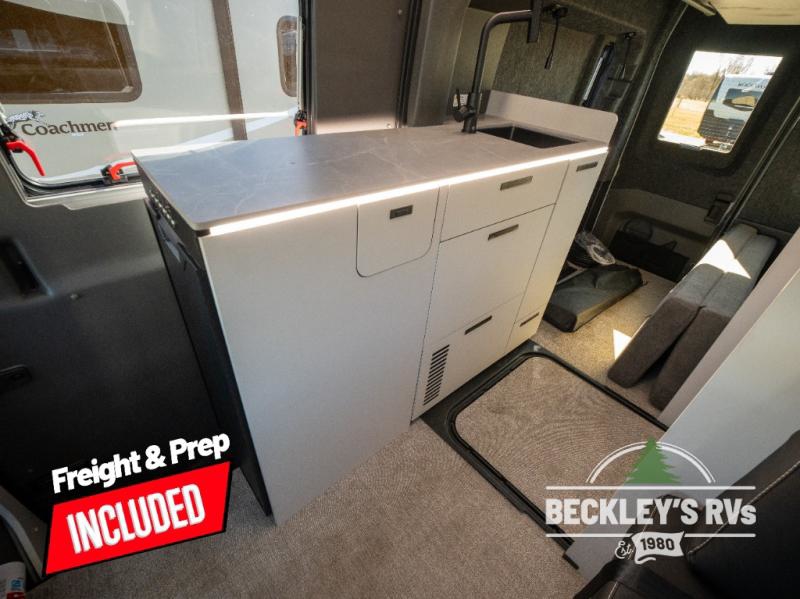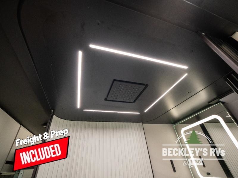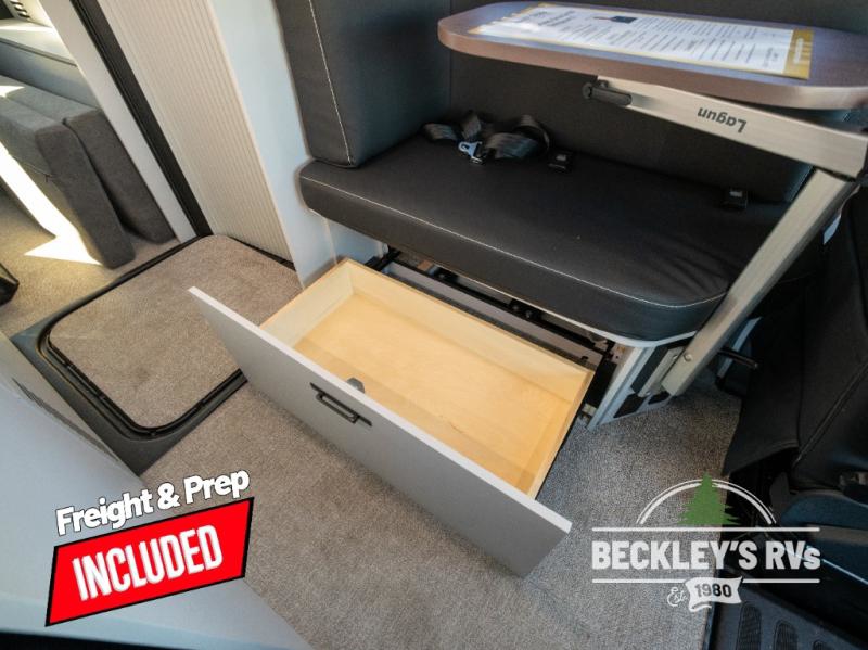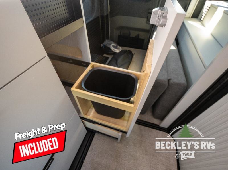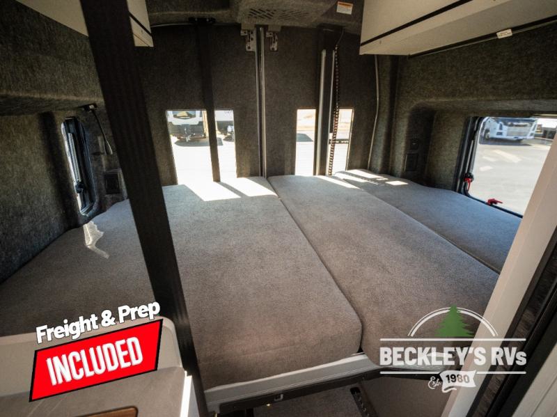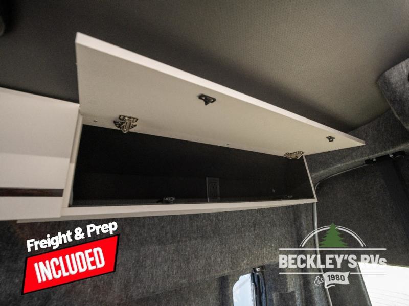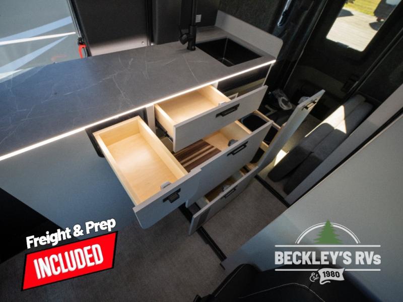 This luxury motorhome for the modern adventurer will be your favorite! The expanding Liftsuite drop-down bed provides a comfortable sleeping area, along with added storage space for your cargo. The entertainment spot is provided in the motorized projector screen, which is ideal for movie nights, sporting events, or presentations, making it a great way to unwind or entertain friends and family. The bathroom provides a private and convenient space for personal needs, and the kitchen features an undermount cooktop, perfect for preparing your favorite meals, a 12V drawer-style refrigerator for keeping perishables fresh, and a sink for easy cleanup. You will also find a side facing chaise lounge up front with a lagun table and two mounting locations for dining or working space! And an optional pop-top can be added for additional sleeping space for guests or little ones!