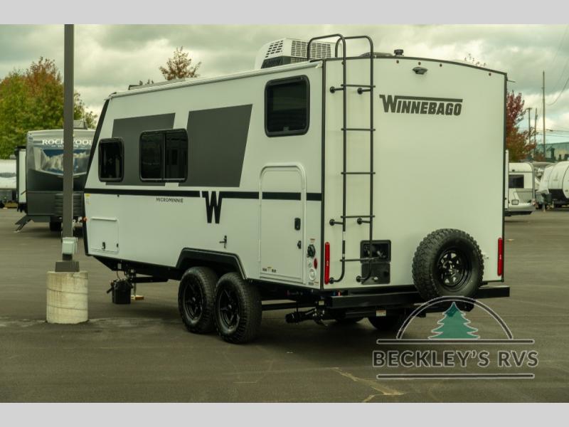 Start out on your boundless journey in one of these Winnebago Micro Minnie travel trailers! Towing is made simple with the 7' width to keep your Micro Minnie in your rear-view mirror. They don't lack in features either although they are compact in size. The spacious galley including a sink, refrigerator, a cooktop, and even a convection microwave oven allows you to cook without compromise. You will not only enjoy the entertainment found indoors with a Smart TV, a JBL premium sound system and Aura Cube high performance mechless media center, but outdoors you will also enjoy the JBL premium speakers and a power awning with LED lighting. Each model also comes with flexible exterior storage to make packing quick and easy, a 200-watt solar panel for off-grid camping, and Dexter TORFLEX torsion stub axles for smooth towing!